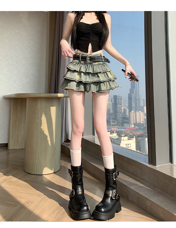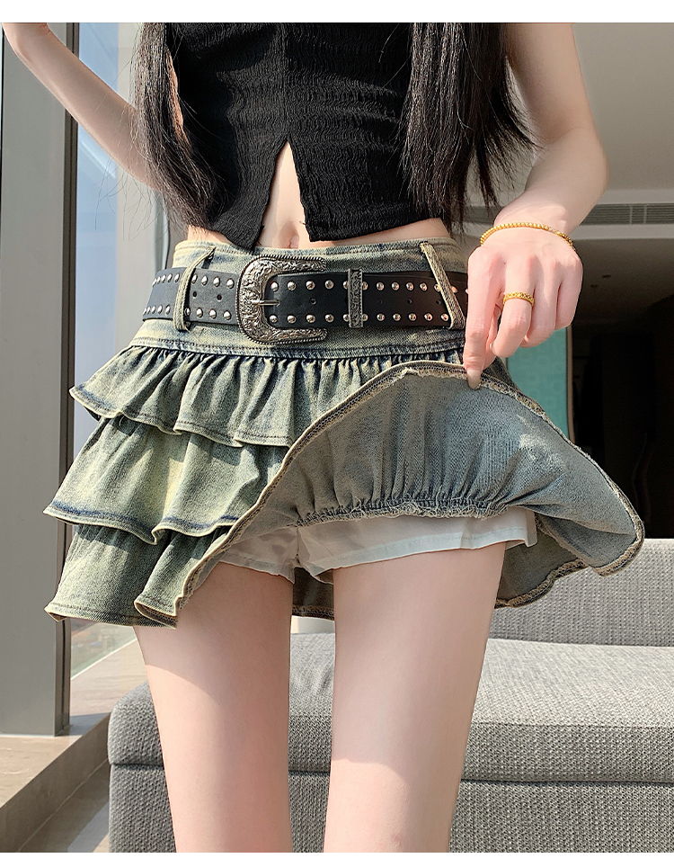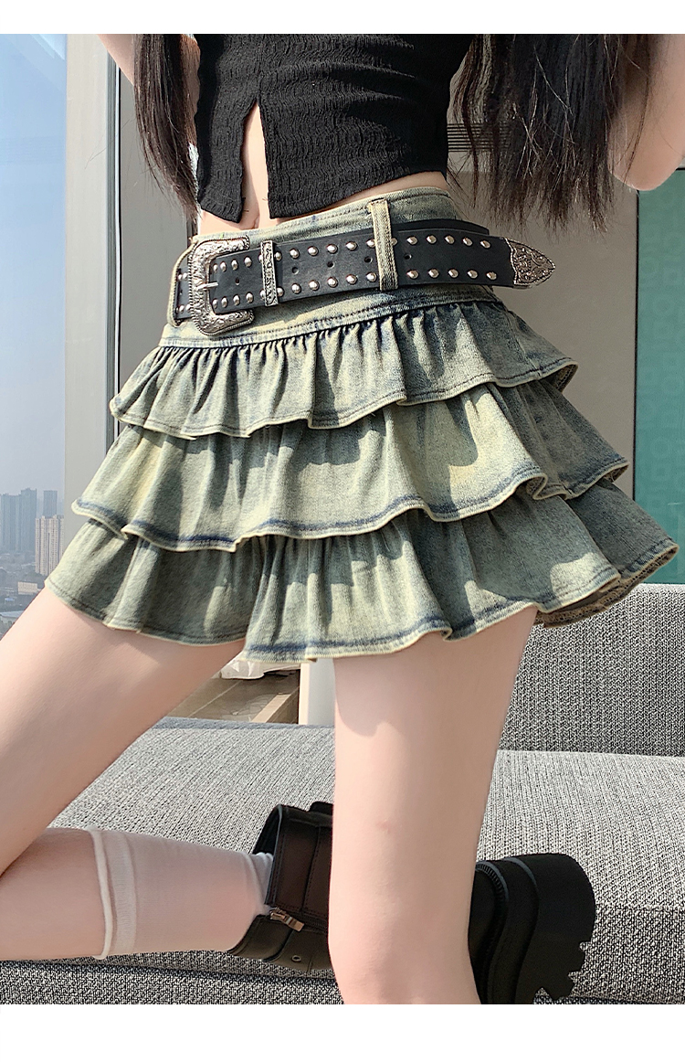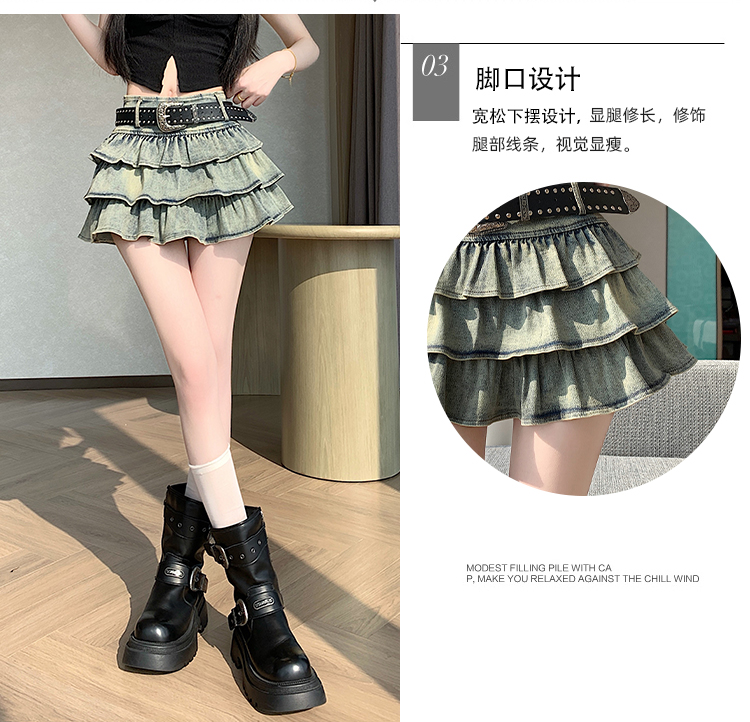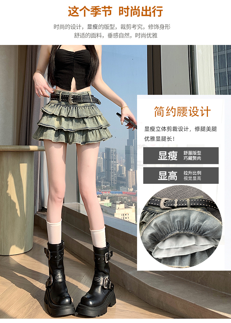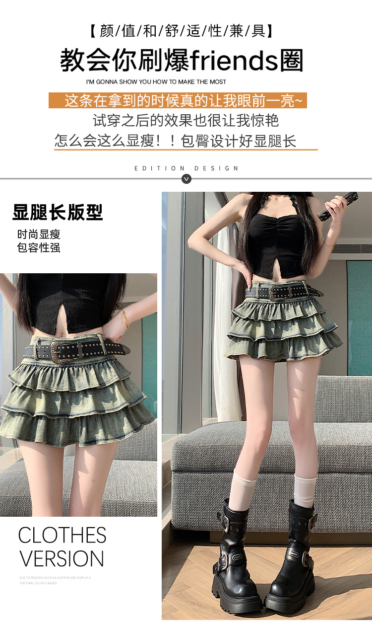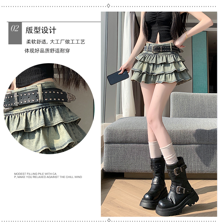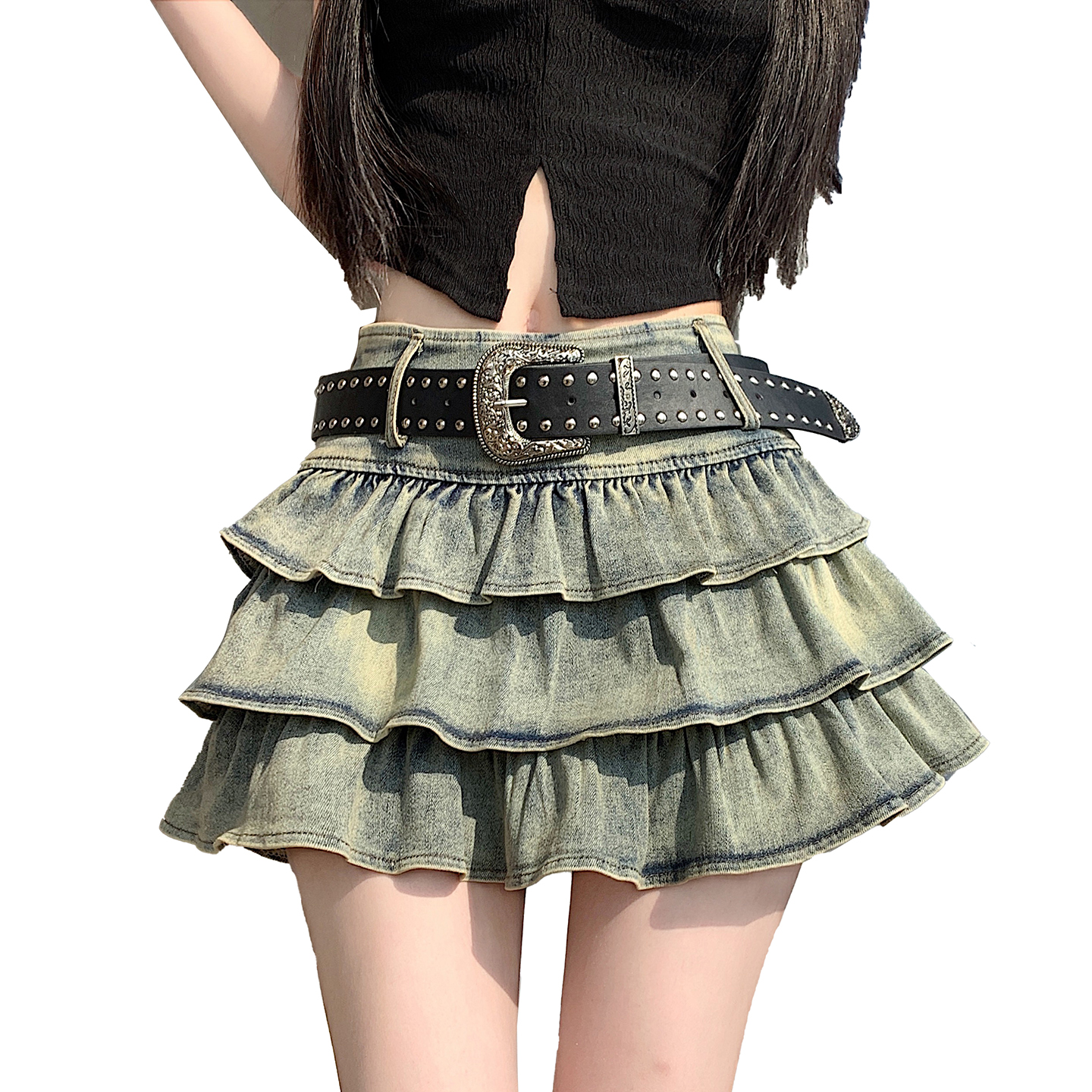 실사 2026 아메리칸 순수한 욕망 바람 핫걸 디자인 센스 신축성 데님 케이크 플리츠 반신 스커트 바지