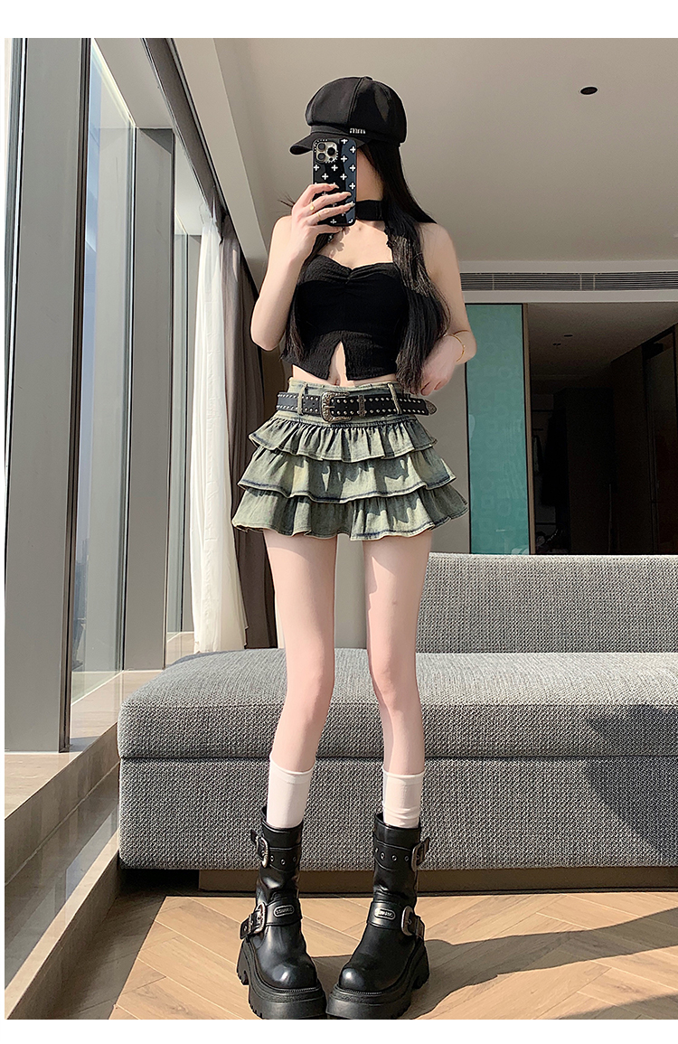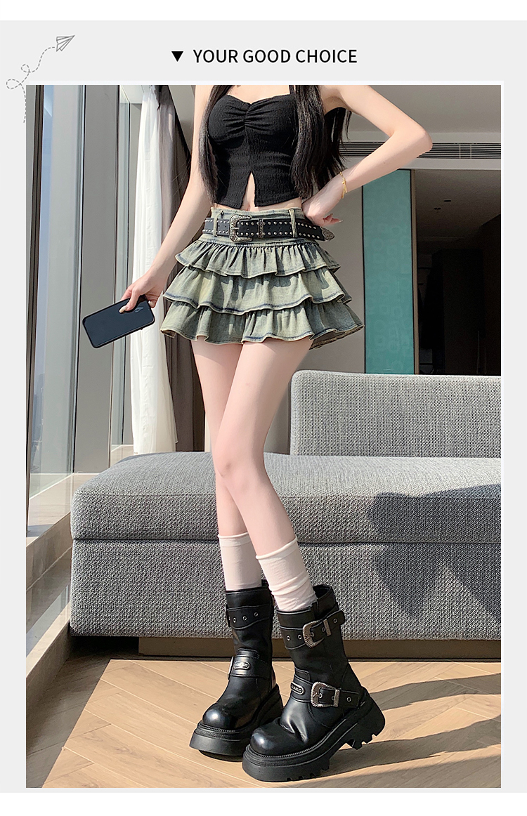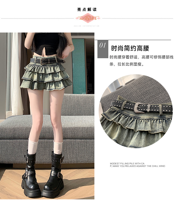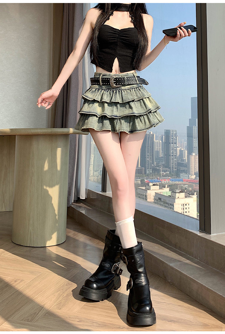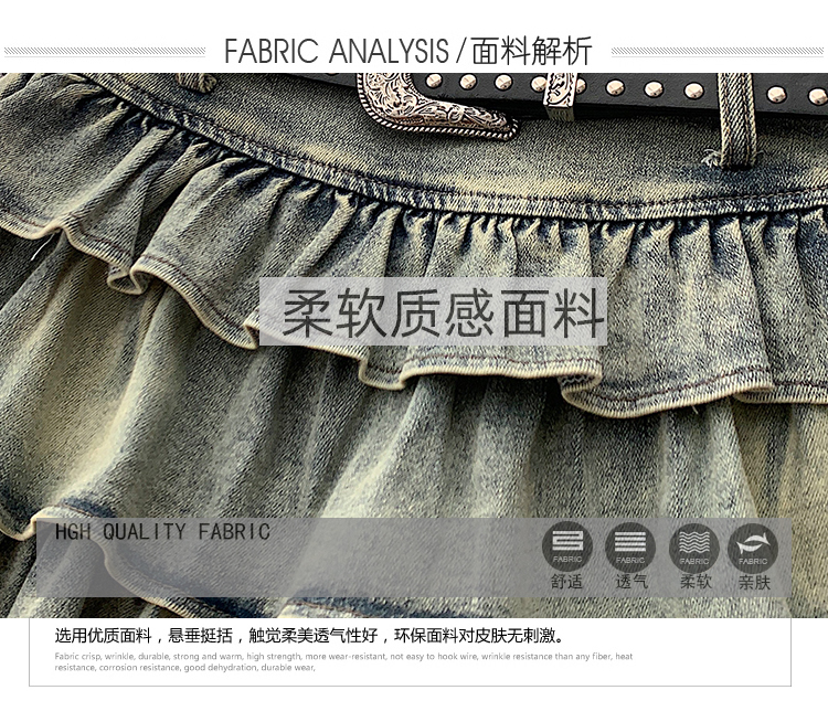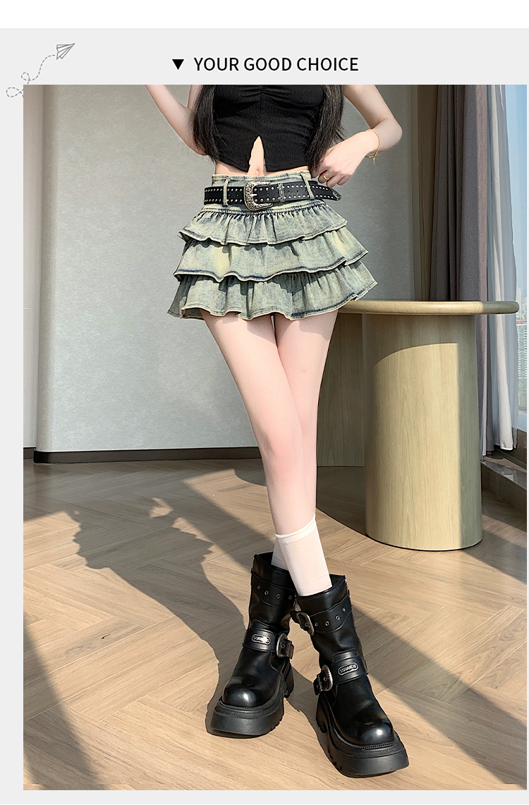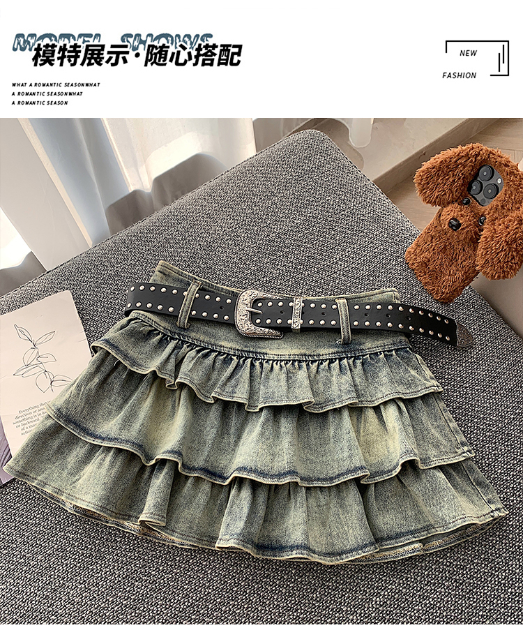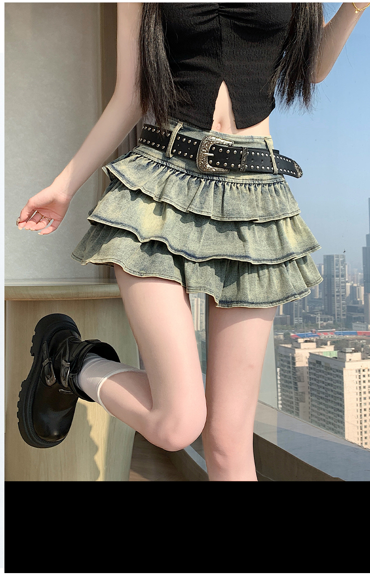 실사 2026 아메리칸 순수한 욕망 바람 핫걸 디자인 센스 신축성 데님 케이크 플리츠 반신 스커트 바지