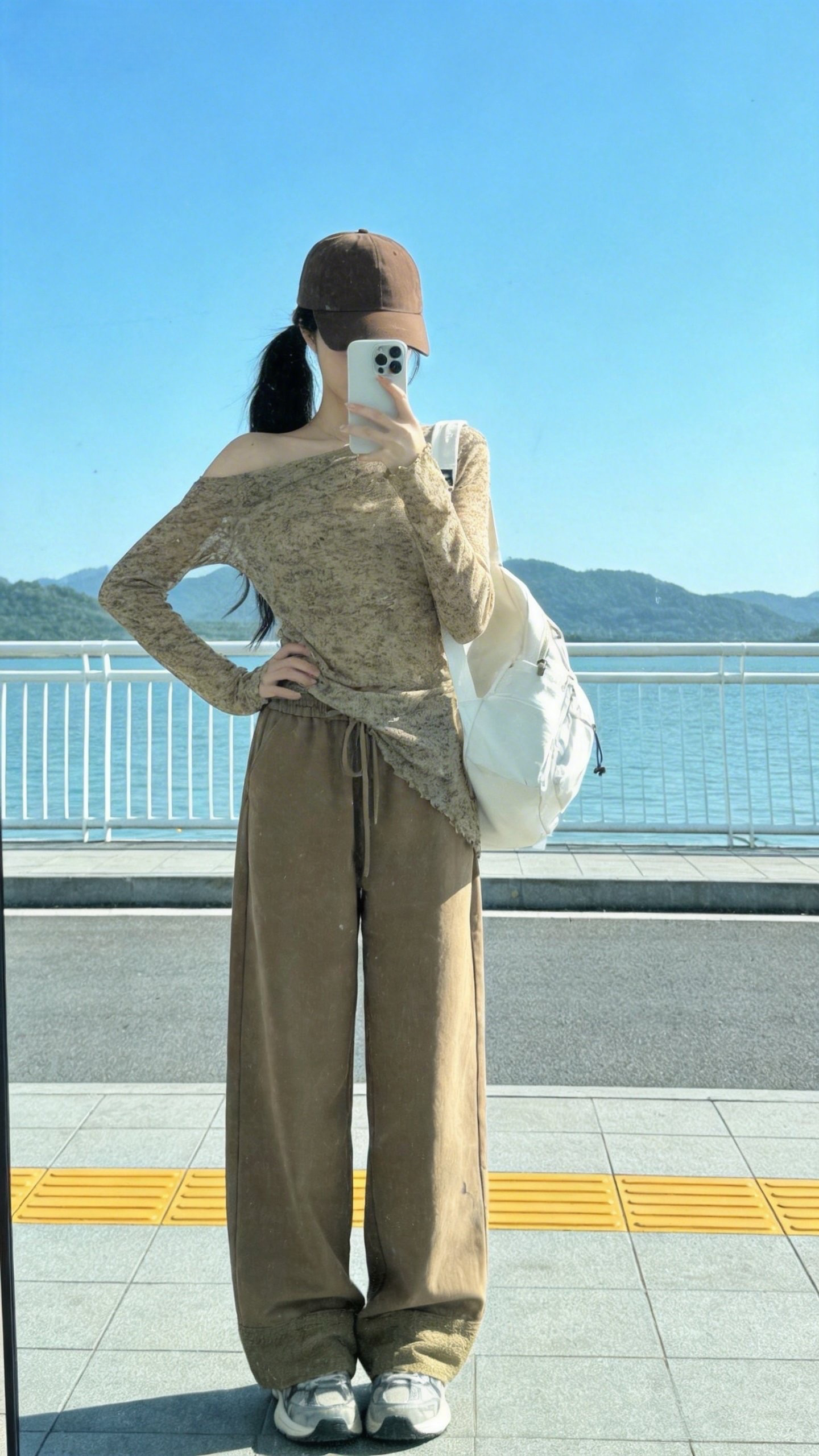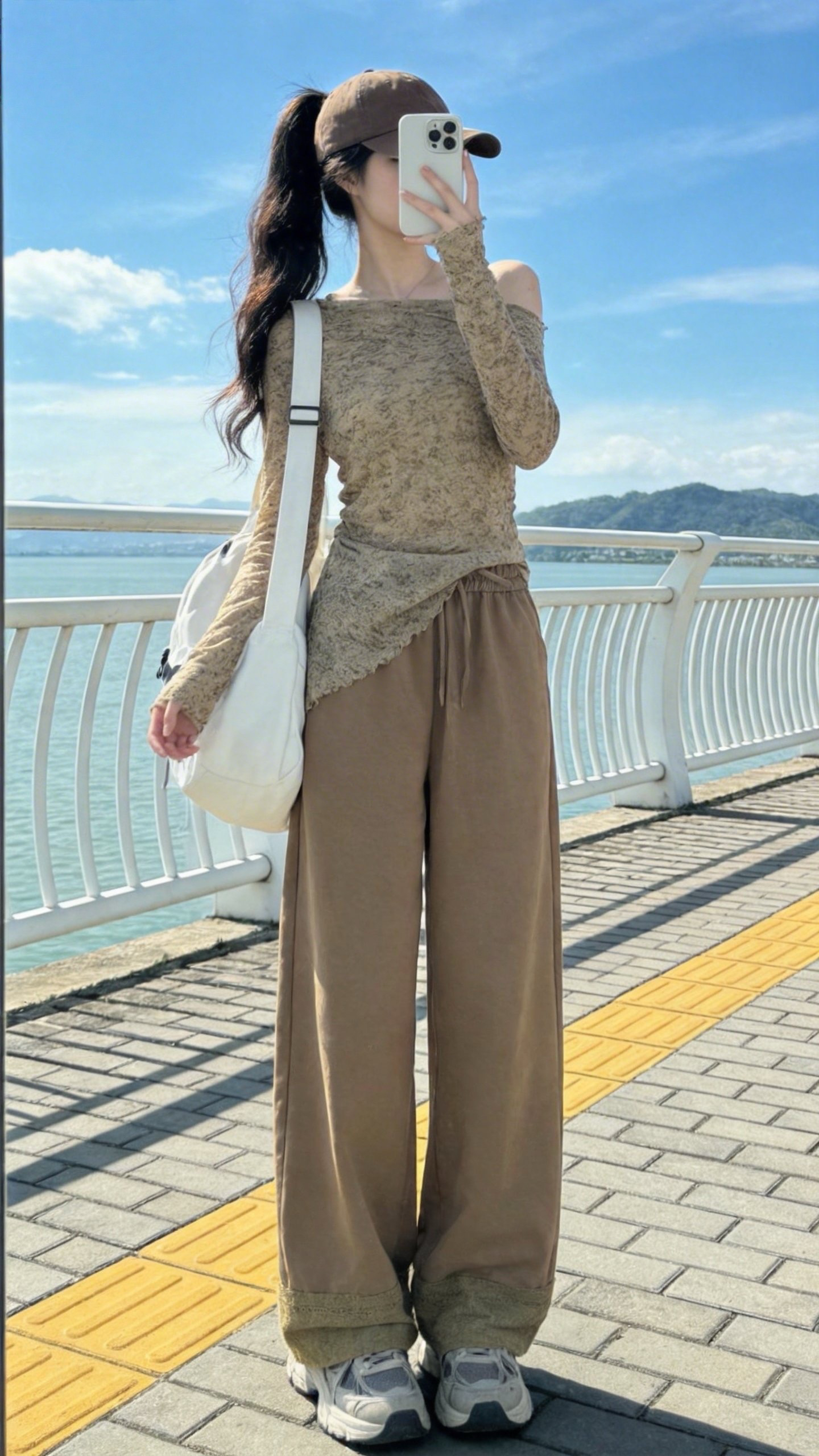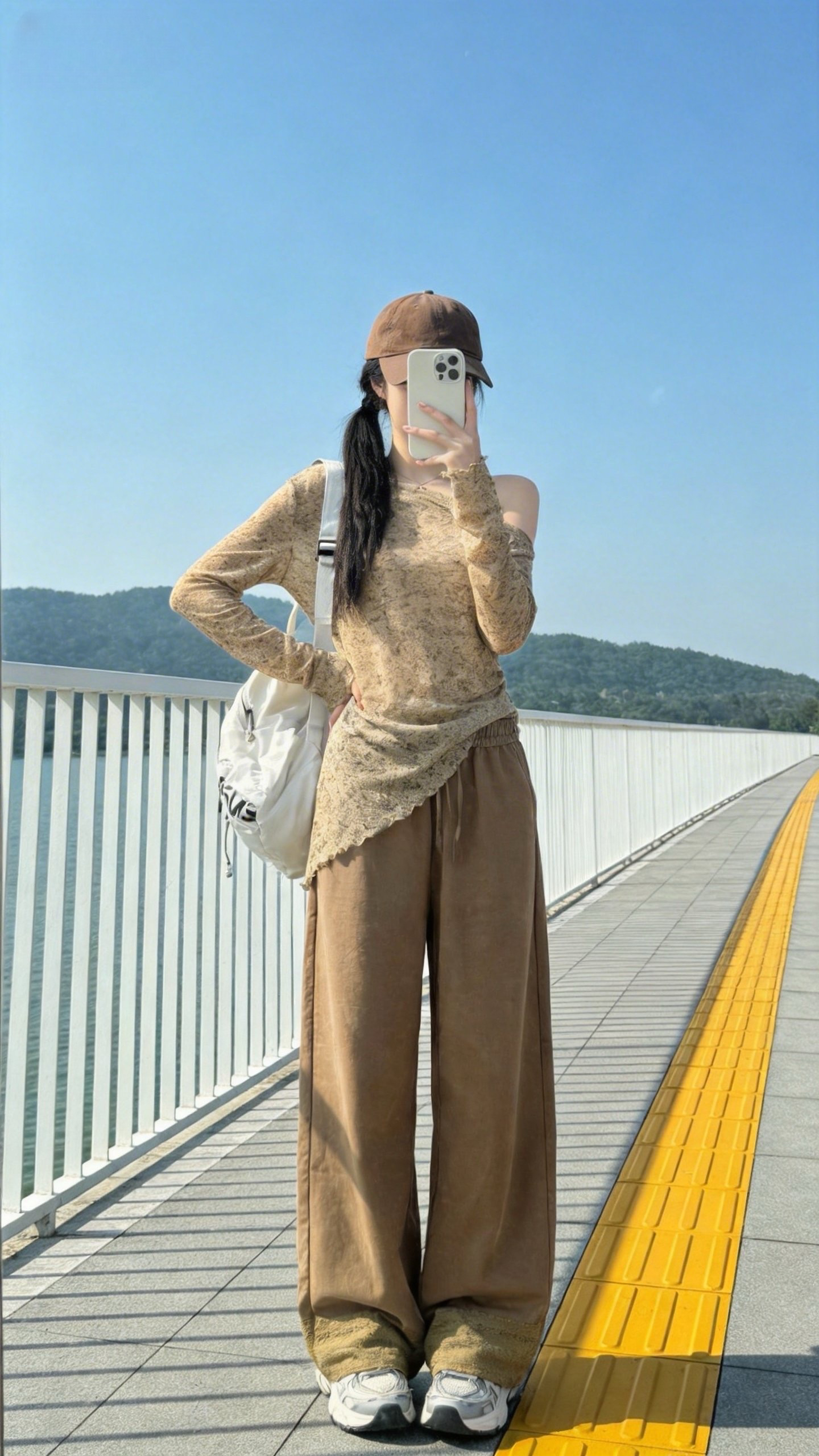 실사 정가 2026 새로운 패션 캐주얼 스포츠 슈트 여성 의류 프린트 망사 불규칙 맨위 긴 바지