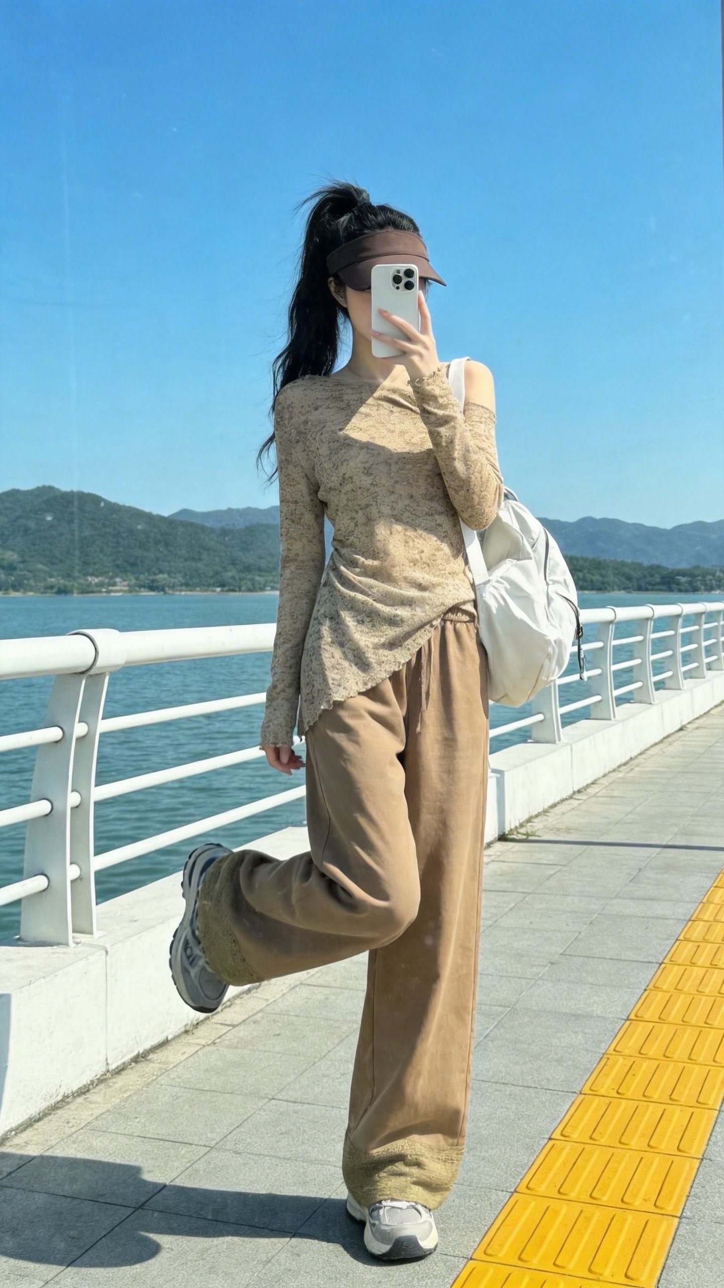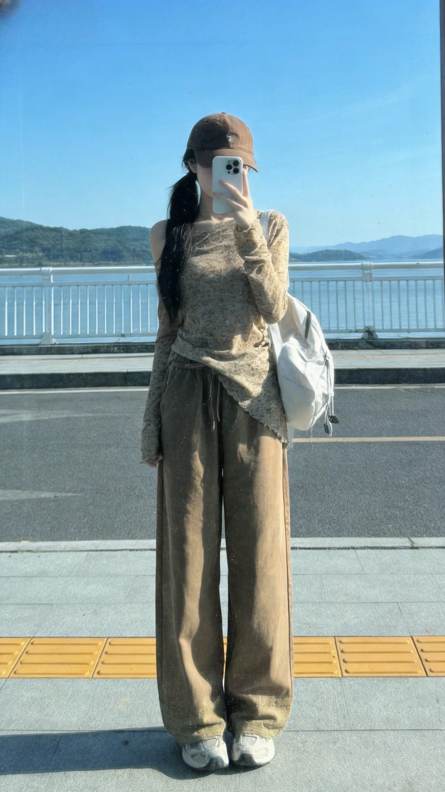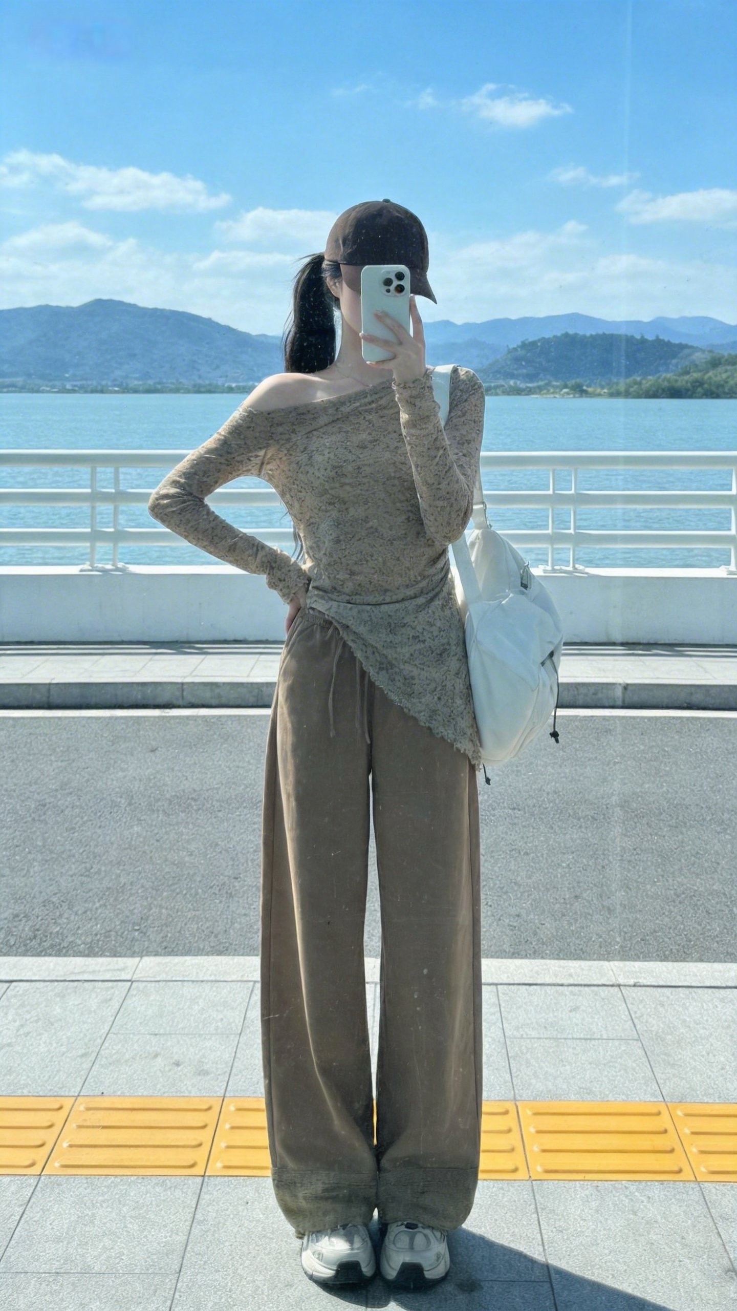 실사 정가 2026 새로운 패션 캐주얼 스포츠 슈트 여성 의류 프린트 망사 불규칙 맨위 긴 바지