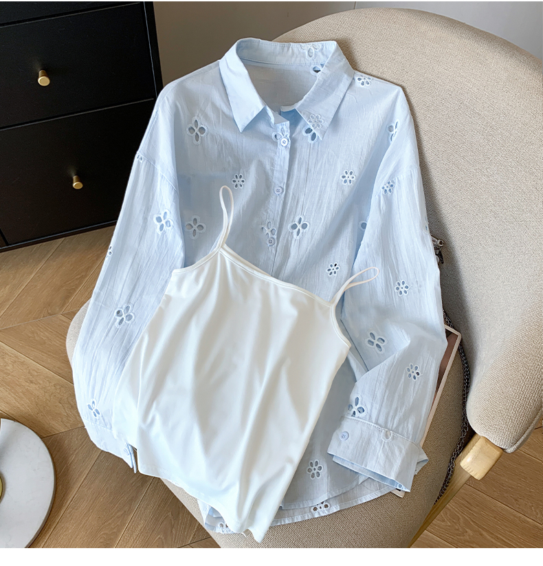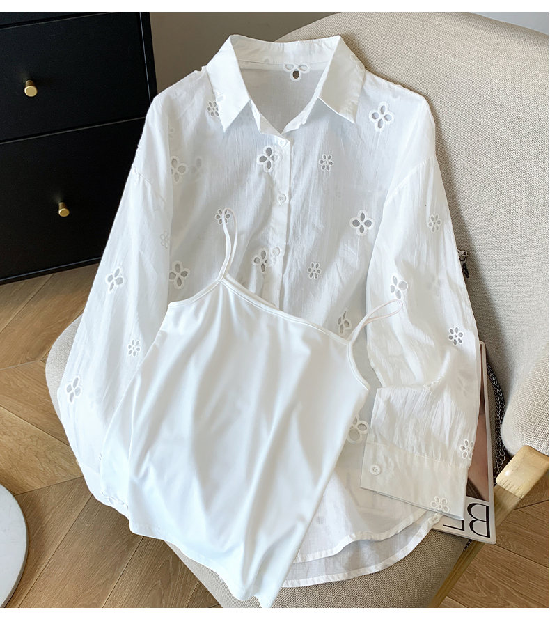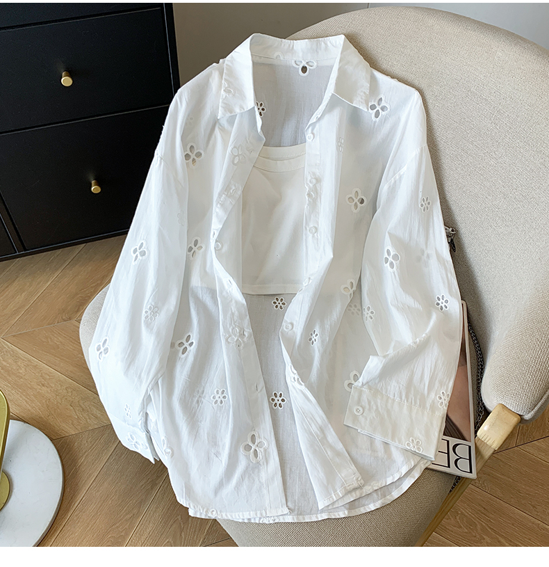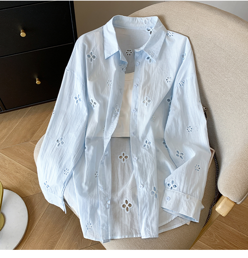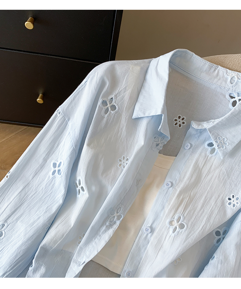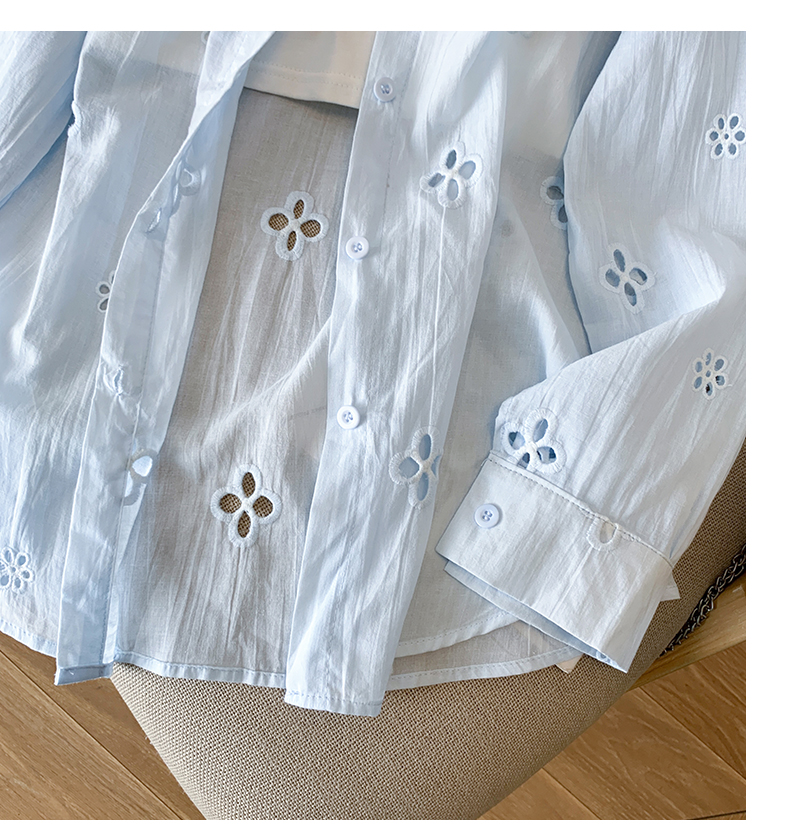 봄 아모이 레이스 자수 얇은 스타일 긴팔 자외선 차단 의류 에어컨 셔츠 맨위 루즈핏 슬림해 보이는 다용도 셔츠 짧은 외투