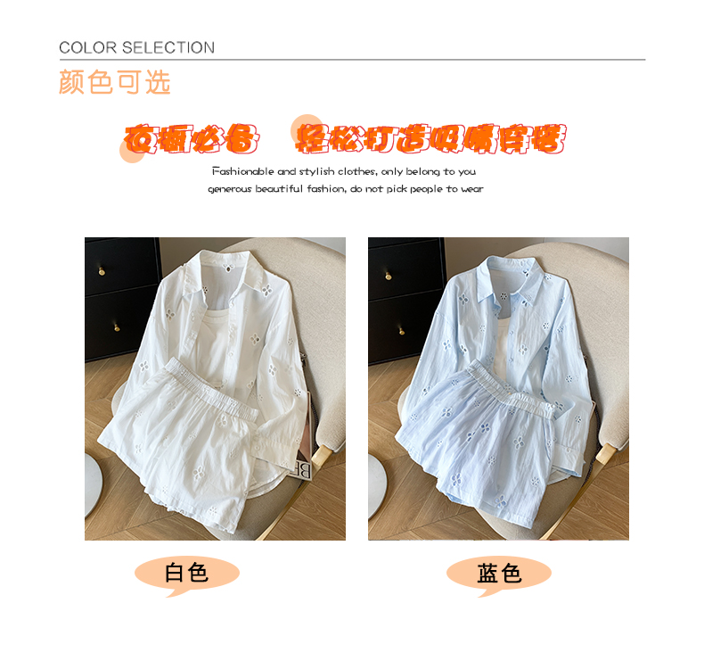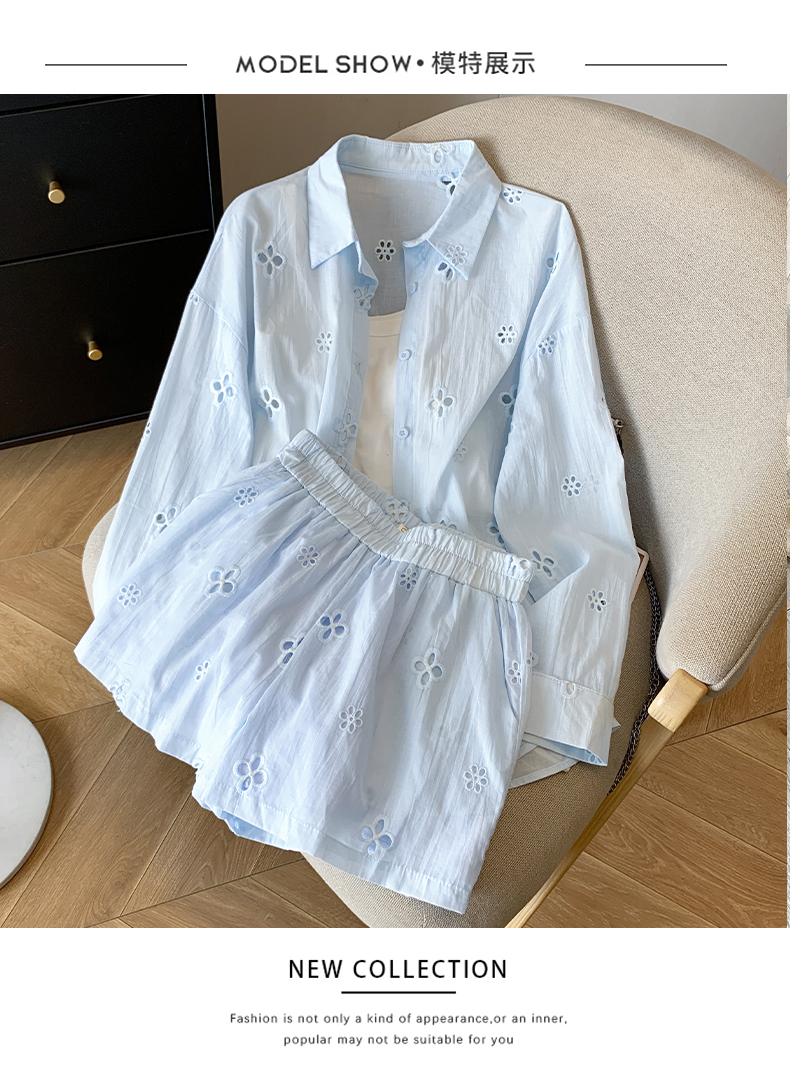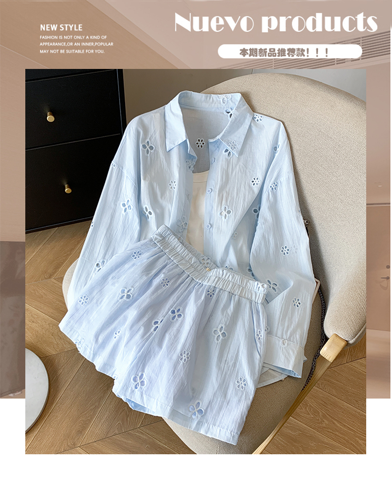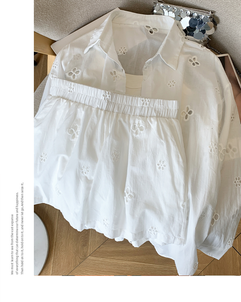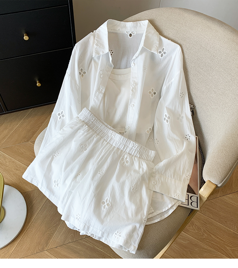 여름 미니멀리즘 출퇴근 긴팔 자외선 차단 맨위 재킷 슬립 반바지 세 조각 패션 세트 여성