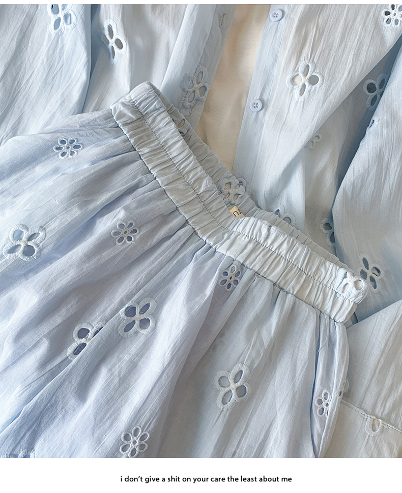 유럽 상품 비즈 박기 무거운 작업 긴팔 자외선 차단 셔츠 맨위 루즈핏 긴 바지 두 조각 패션 세트 여성 26 봄 여름 새로운