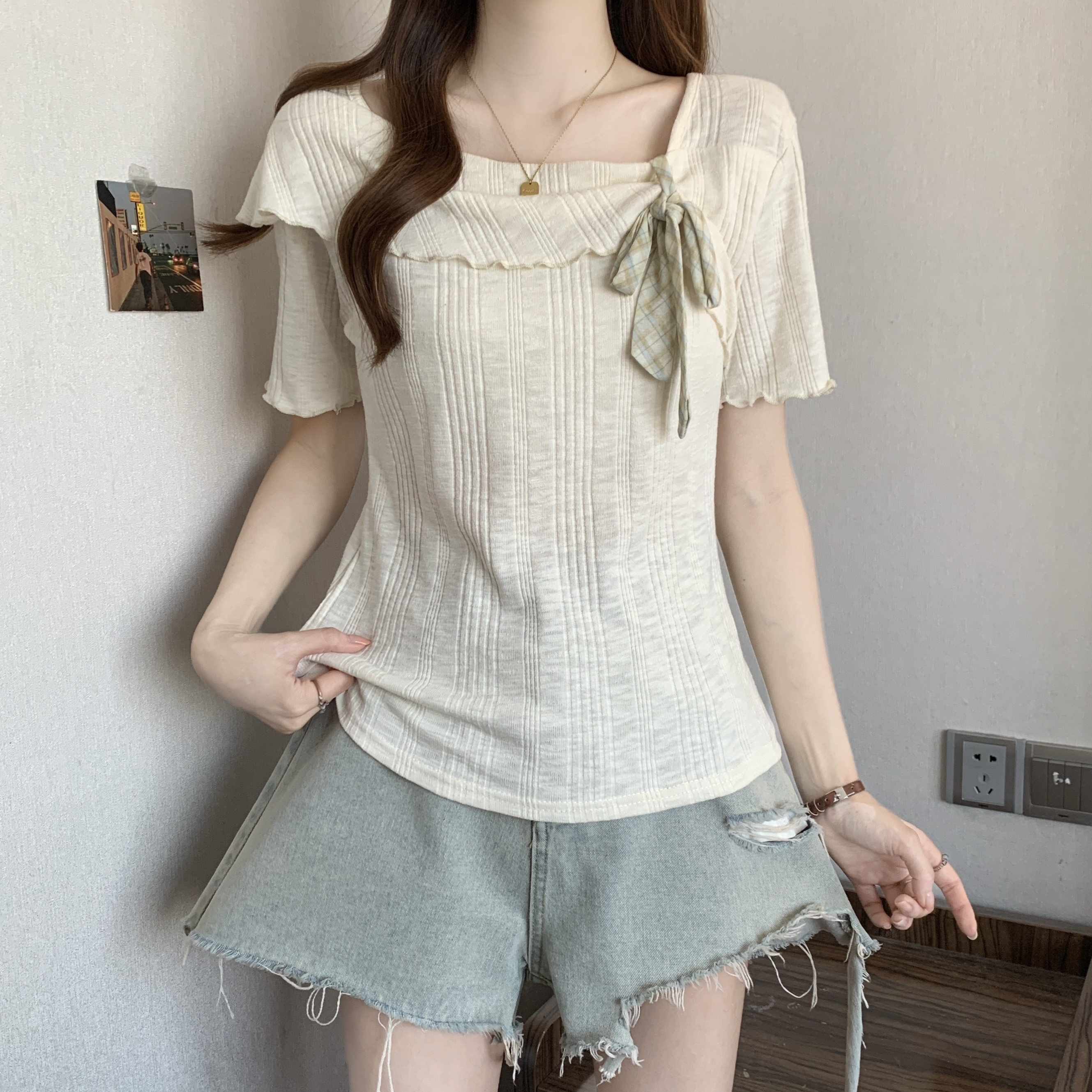 올해 인기 ~ 중 반팔 쇼트 스타일 셔츠 품격 여름 여성 의류 고유 한 슈퍼 잘 생긴 아름다운 맨위 2026 새로운
