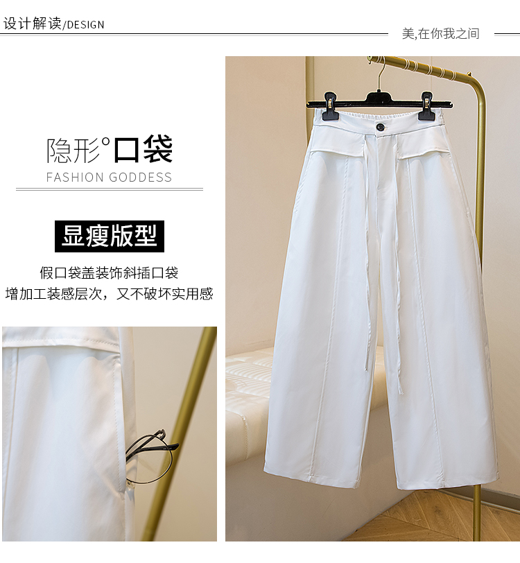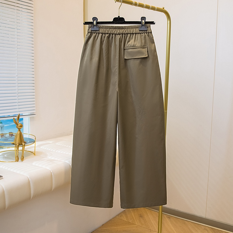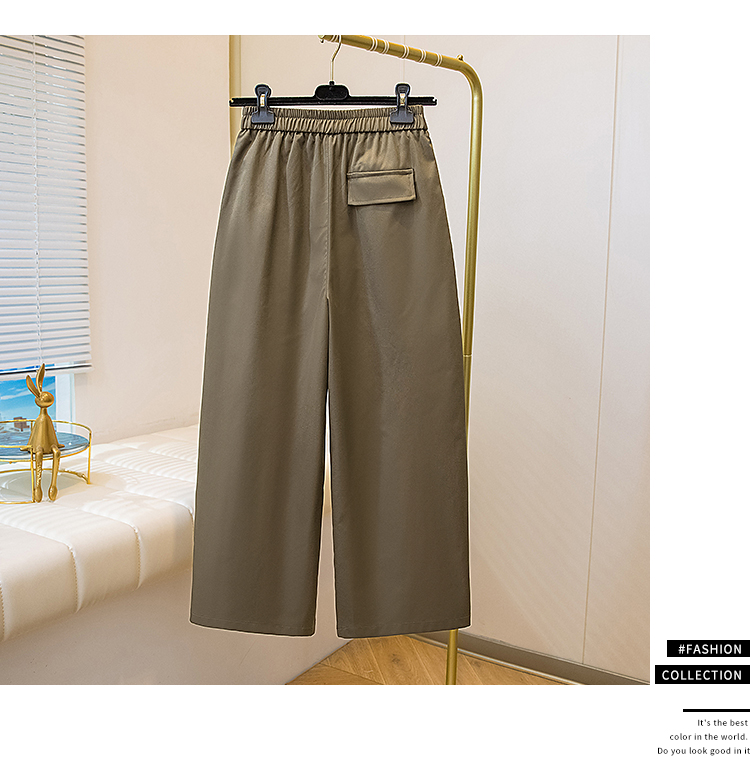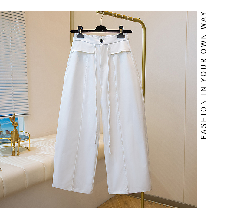 레이스 허리밴드 넓은 다리 9부 바지 여성 2026 봄 여름 새로운 빅 사이즈 루즈핏 슬림해 보이는 미니멀리즘 캐주얼 스트레이트 팬츠