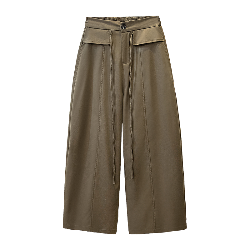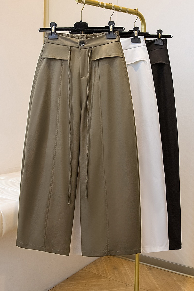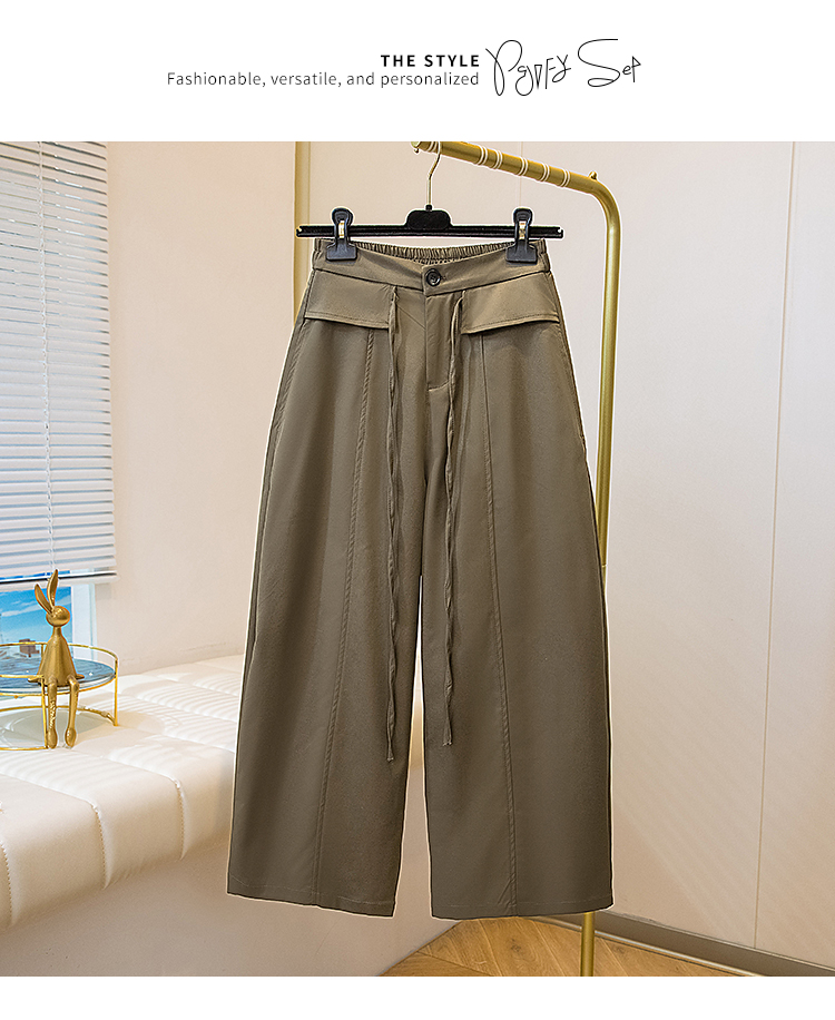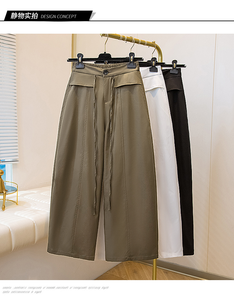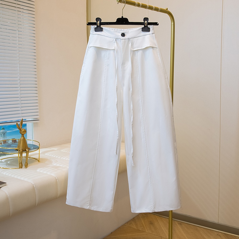 허리밴드 펌프 로프 스트랩 저항 주름 와이드 레깅스 바지 봄 여름 하이웨이스트 스트레이트 루즈핏 슬림해 보이는 프릴 방귀 커튼 바지