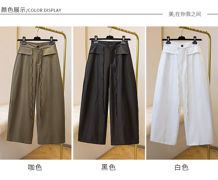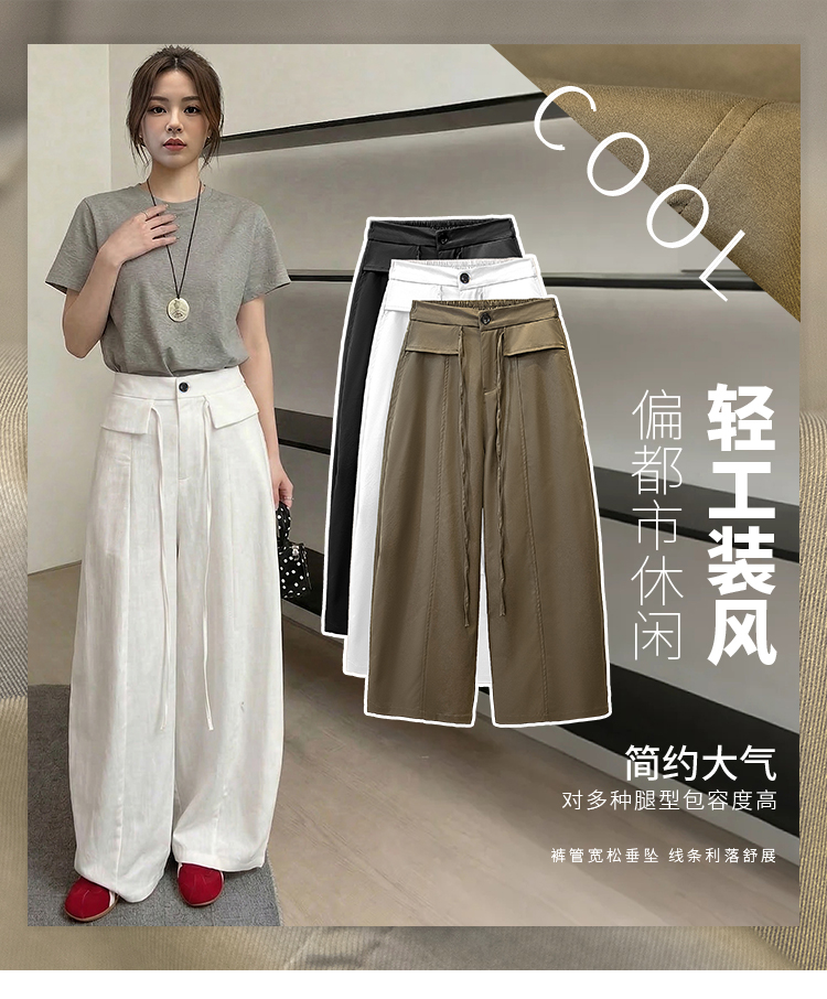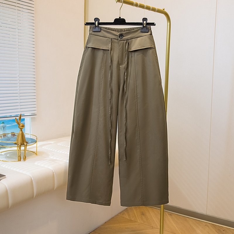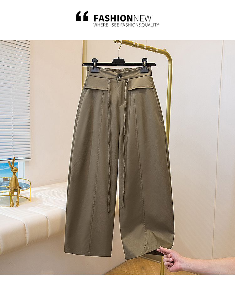 유럽 역 캐주얼 바지 여성 2026 봄 새로운 하이웨이스트 펌프 로프 루즈핏 와이드 레그 팬츠 느긋한 바람 느슨함 모통이 칼 바지