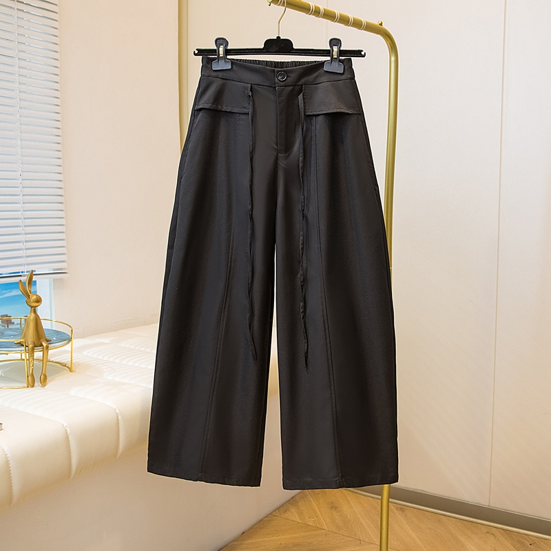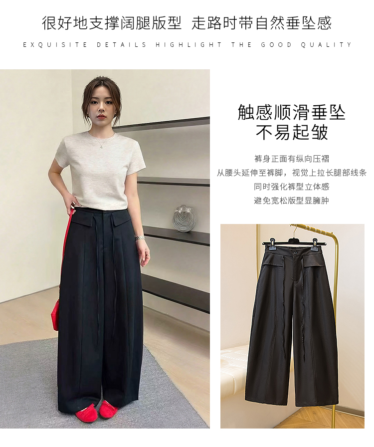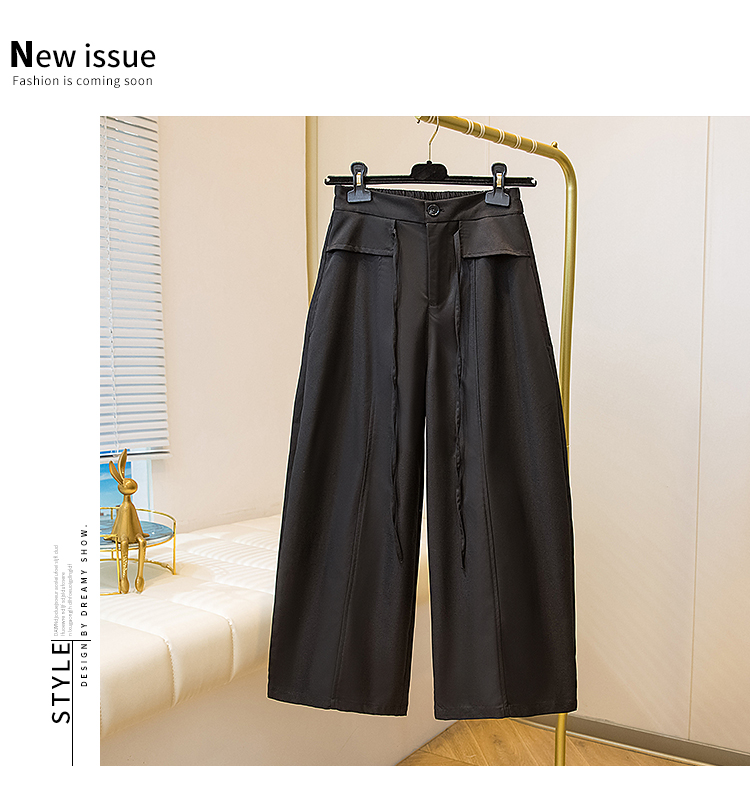 2026 봄 여름 디자인 센스 방귀 커튼 스택 조각 하이웨이스트 캐주얼 바지 여성 빅 사이즈 새로운 도루 센스 스트레이트 와이드 레그 팬츠 긴 바지