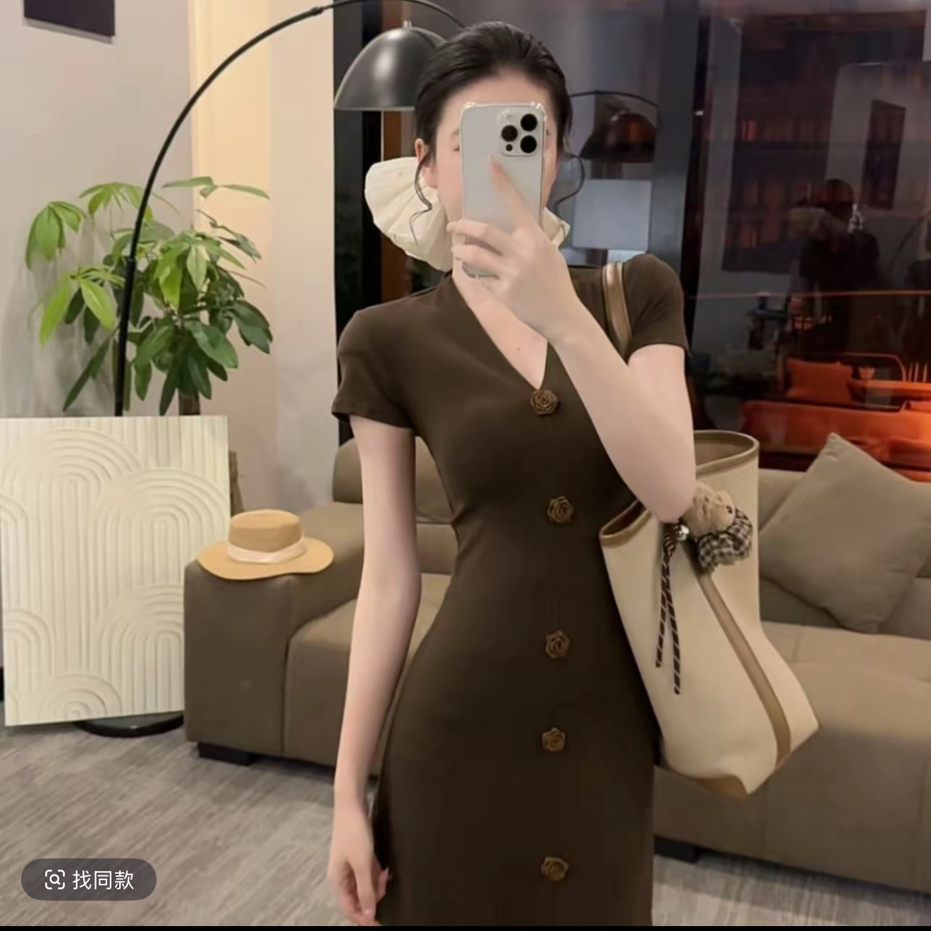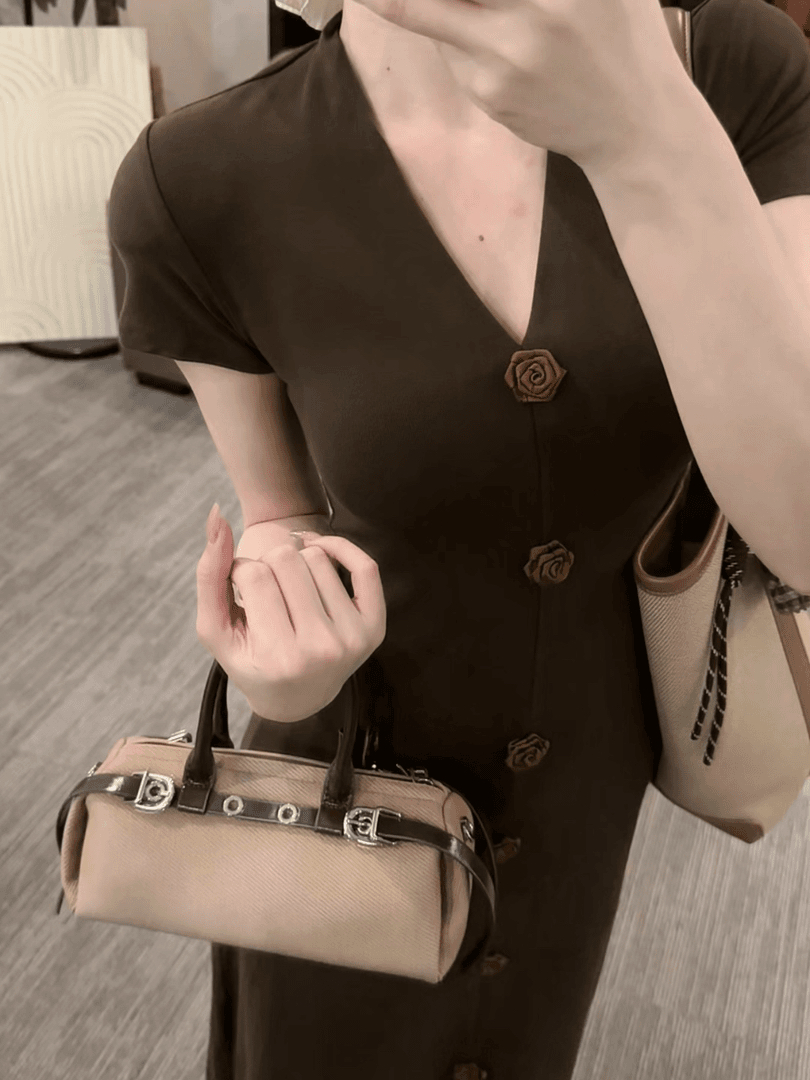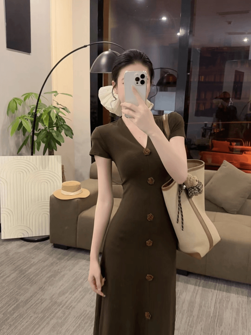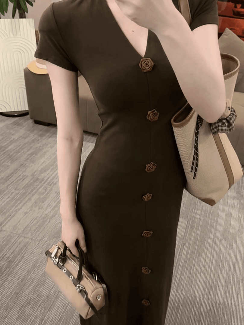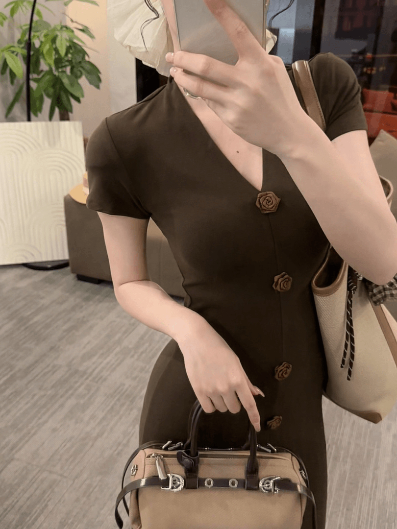 봄 여름 새로운 품격 드레스 디자인 센스 작은 꽃 패션 V넥 짧은 소매 길이