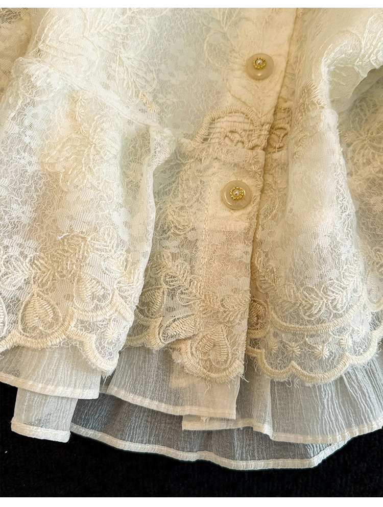 궁정 바람 무거운 작업 레이스 자수 여성 셔츠 2026 조기 봄 품격 프릴 디자인 맨위
