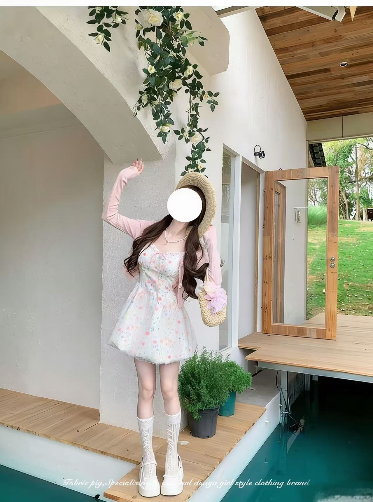 sweet 부드러운 밀가루 칭란 마이크로 지방 달콤함 소녀 특별 조정 질감 센스 자수 무거운 작업 허리 수축 긍정적 인 어깨 드레스