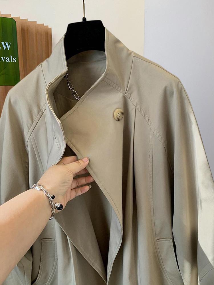 고급 센스 폴로 칼라 바람막이 여성 코트 중간 길이 2026 새로운 루즈핏 품격 슈퍼 잘 생긴 영국식 바람 코트 봄