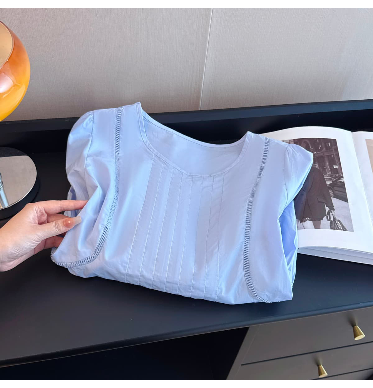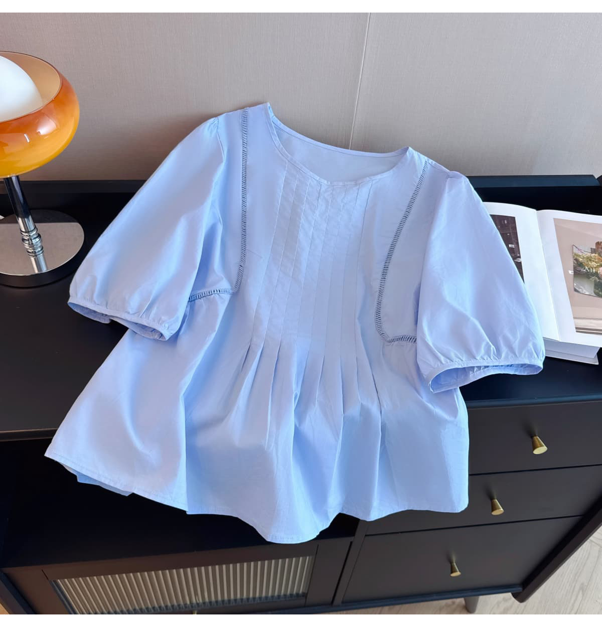 실사 2026 여름 새로운 라운드 넥 연령 감소 작은 치마 슬림해 보이는 반팔 다용도 맨위