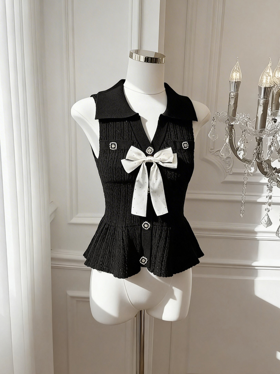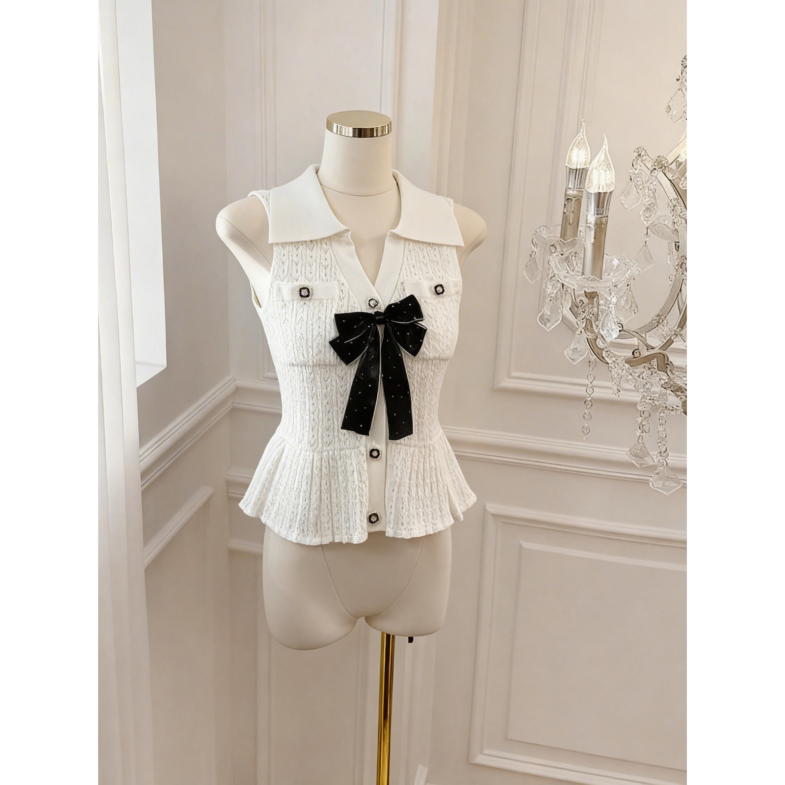 정가 있음 보호 작은 샤넬 스타일 비즈 박기 나비 매듭 조끼 여성 고급 센스 조끼 민소매 홀로우 아웃 작은 맨위