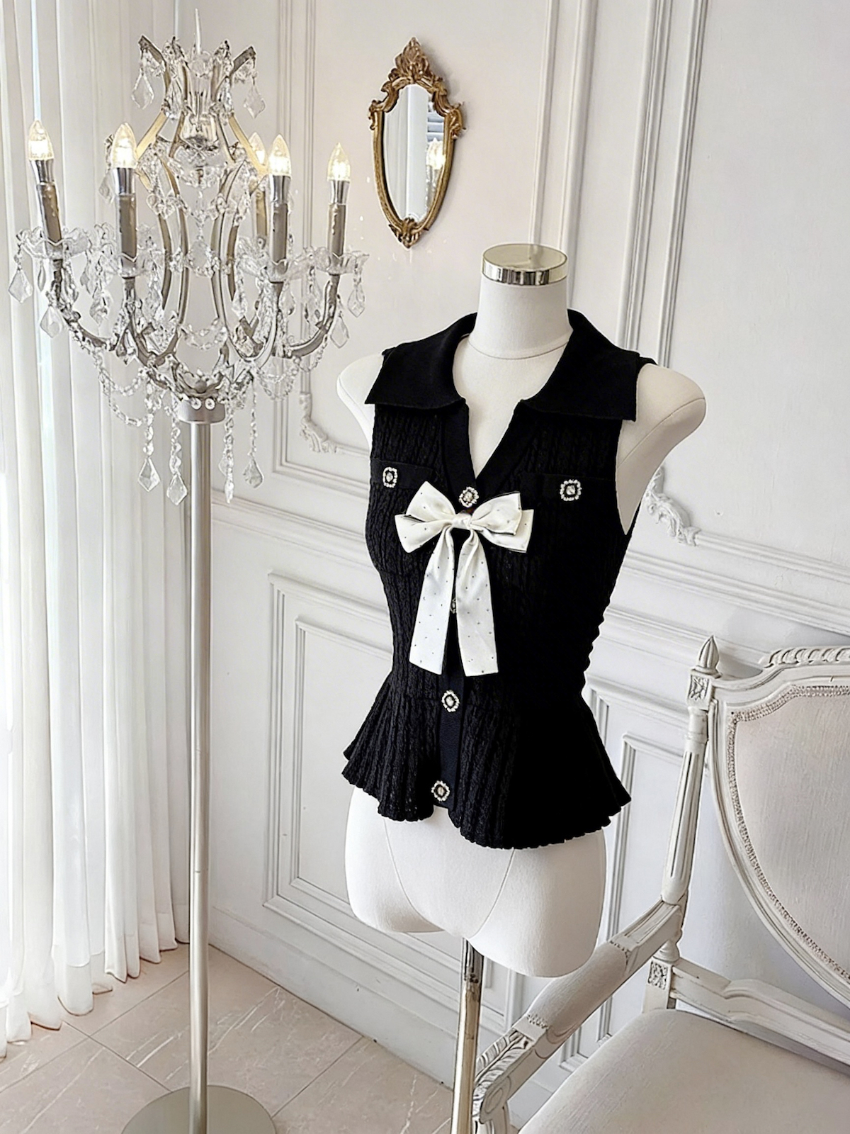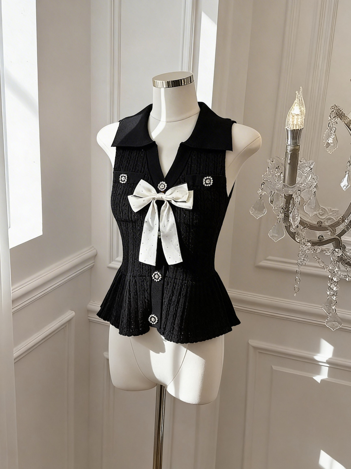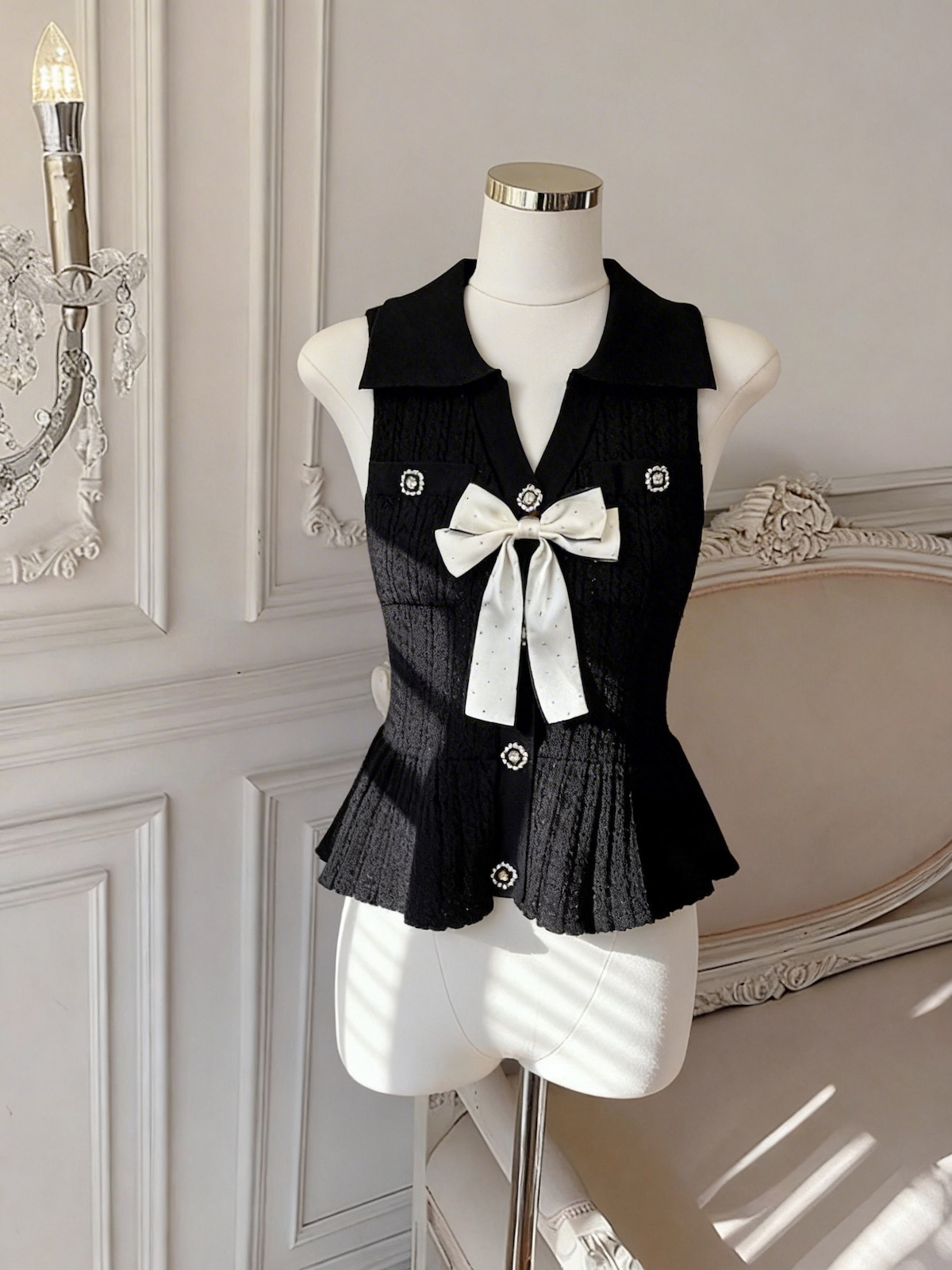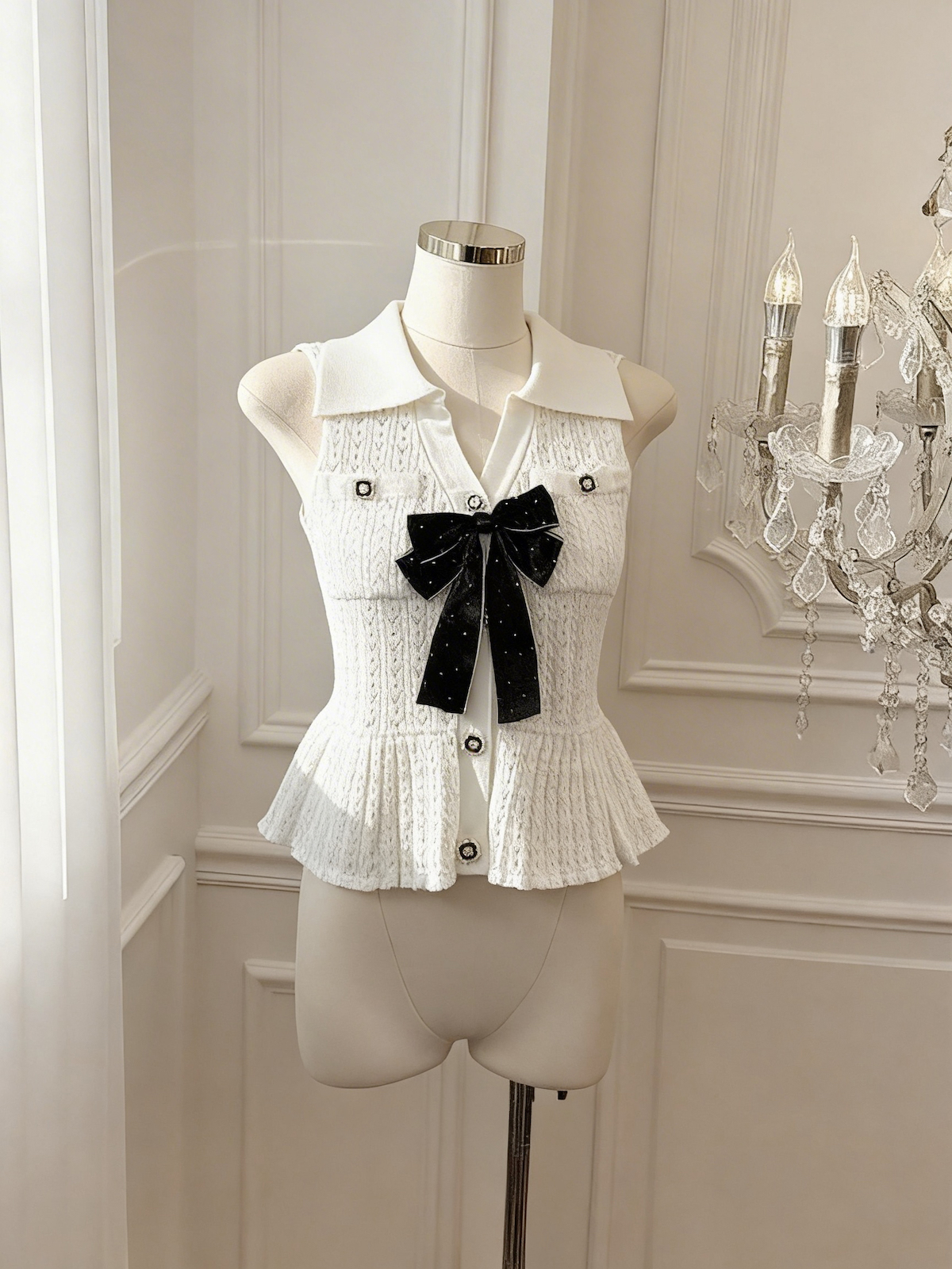 정가 있음 보호 작은 샤넬 스타일 비즈 박기 나비 매듭 조끼 여성 고급 센스 조끼 민소매 홀로우 아웃 작은 맨위