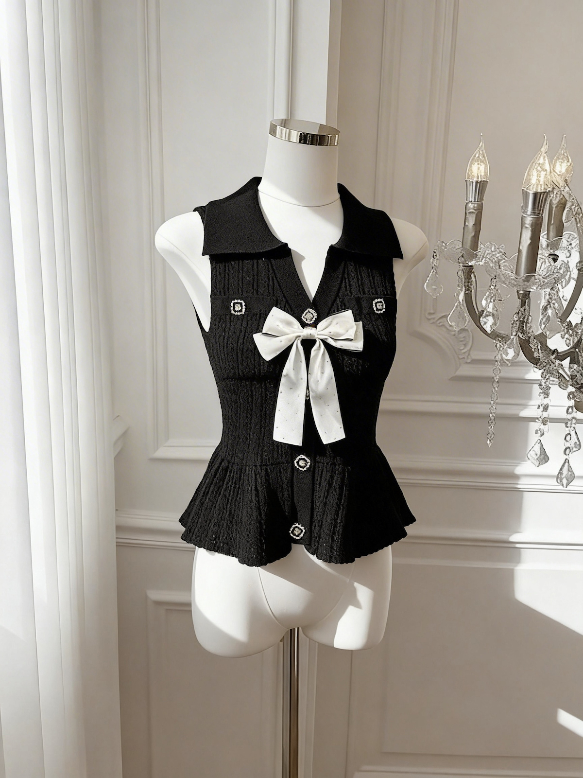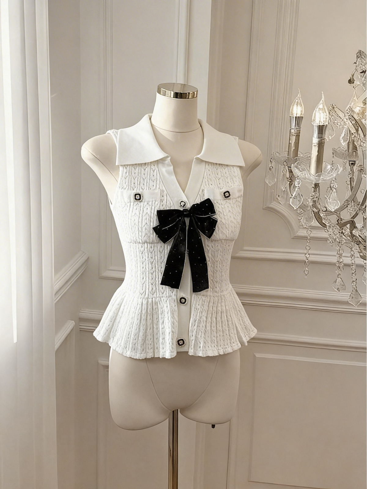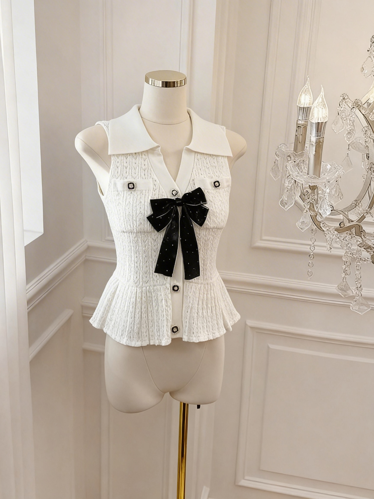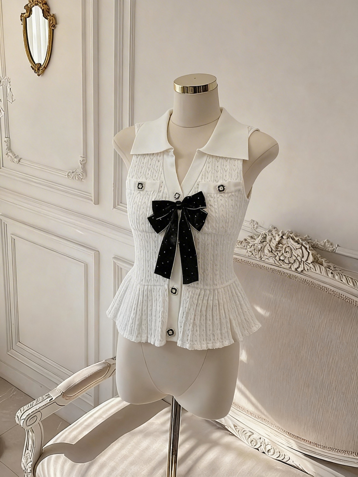 정가 있음 보호 작은 샤넬 스타일 비즈 박기 나비 매듭 조끼 여성 고급 센스 조끼 민소매 홀로우 아웃 작은 맨위