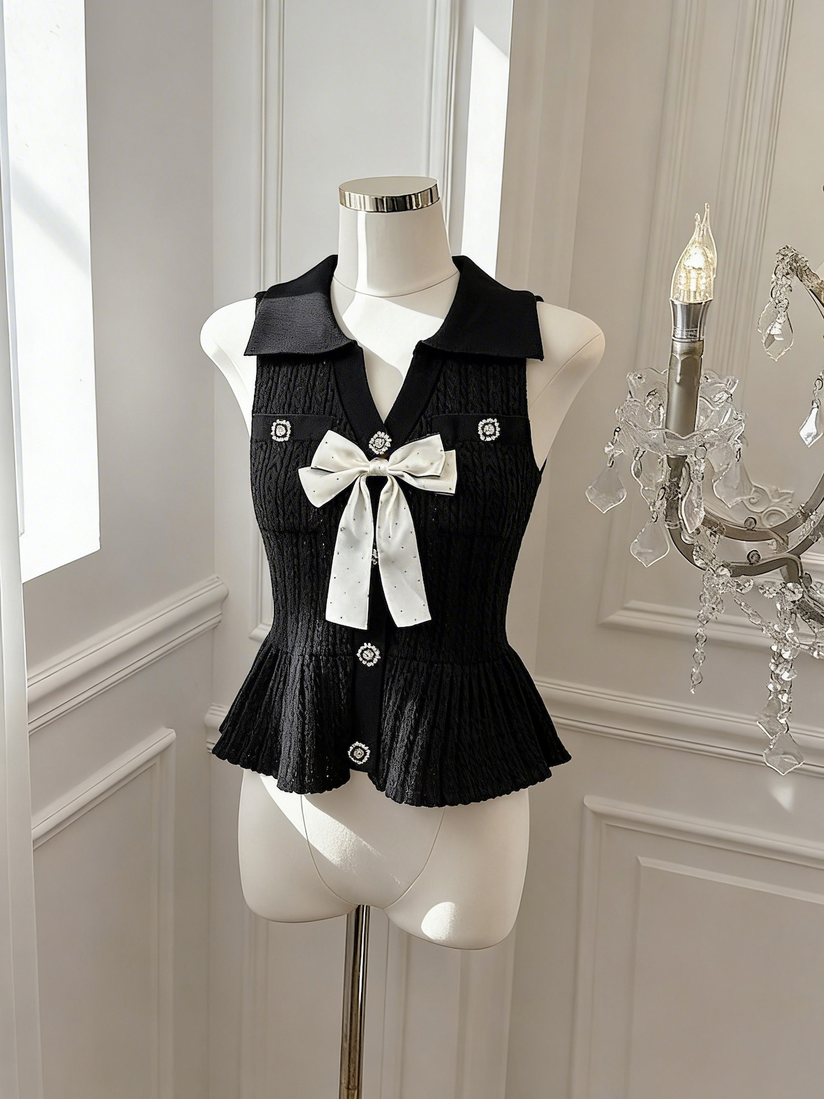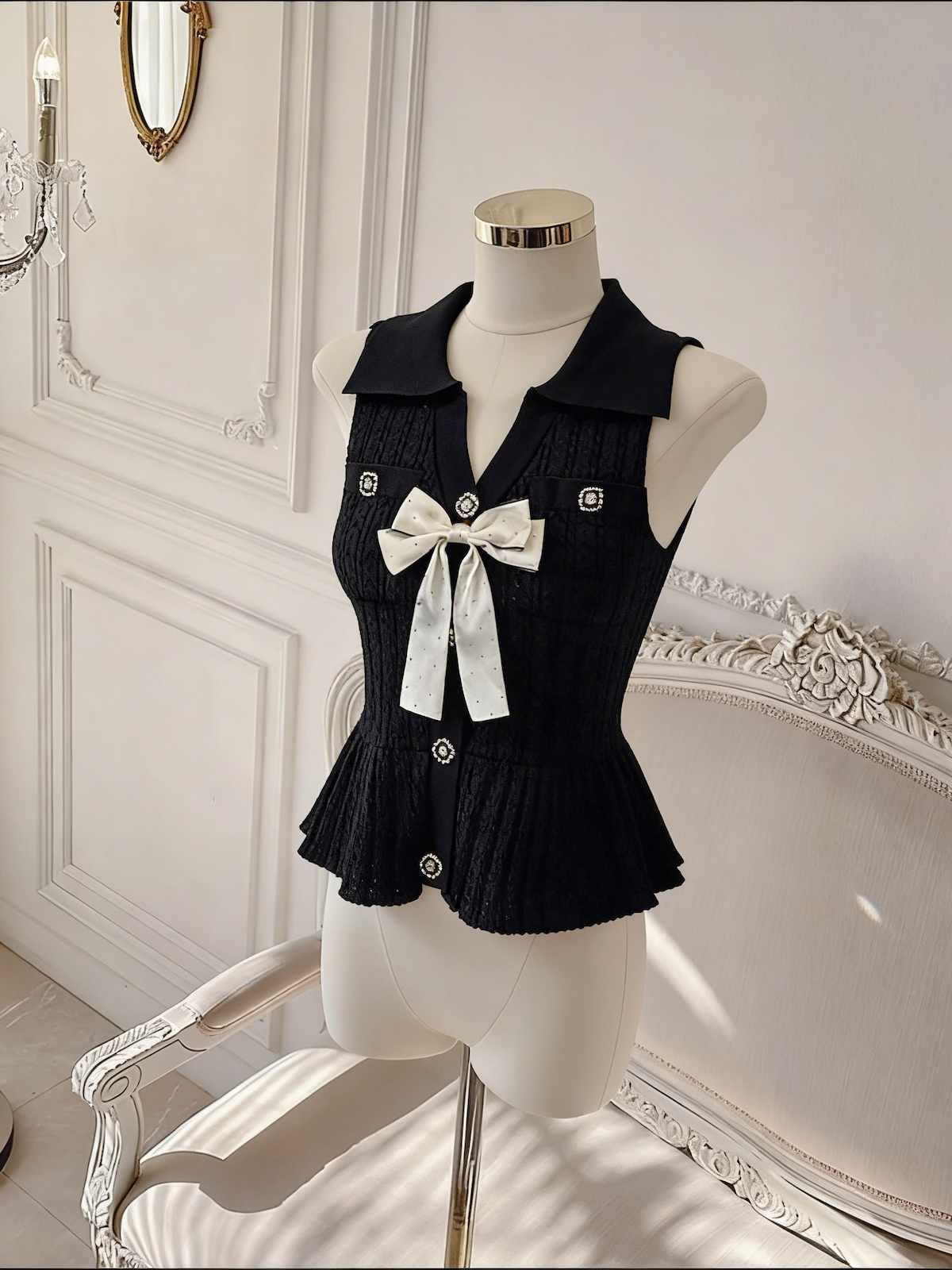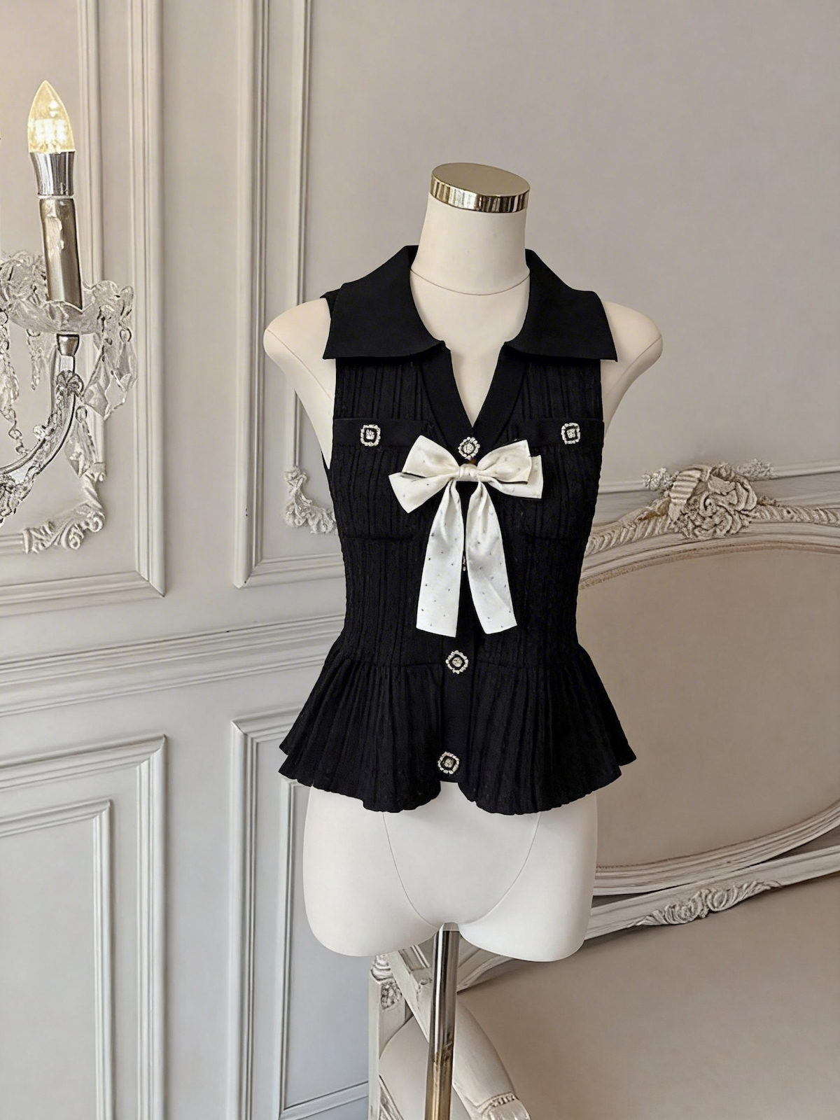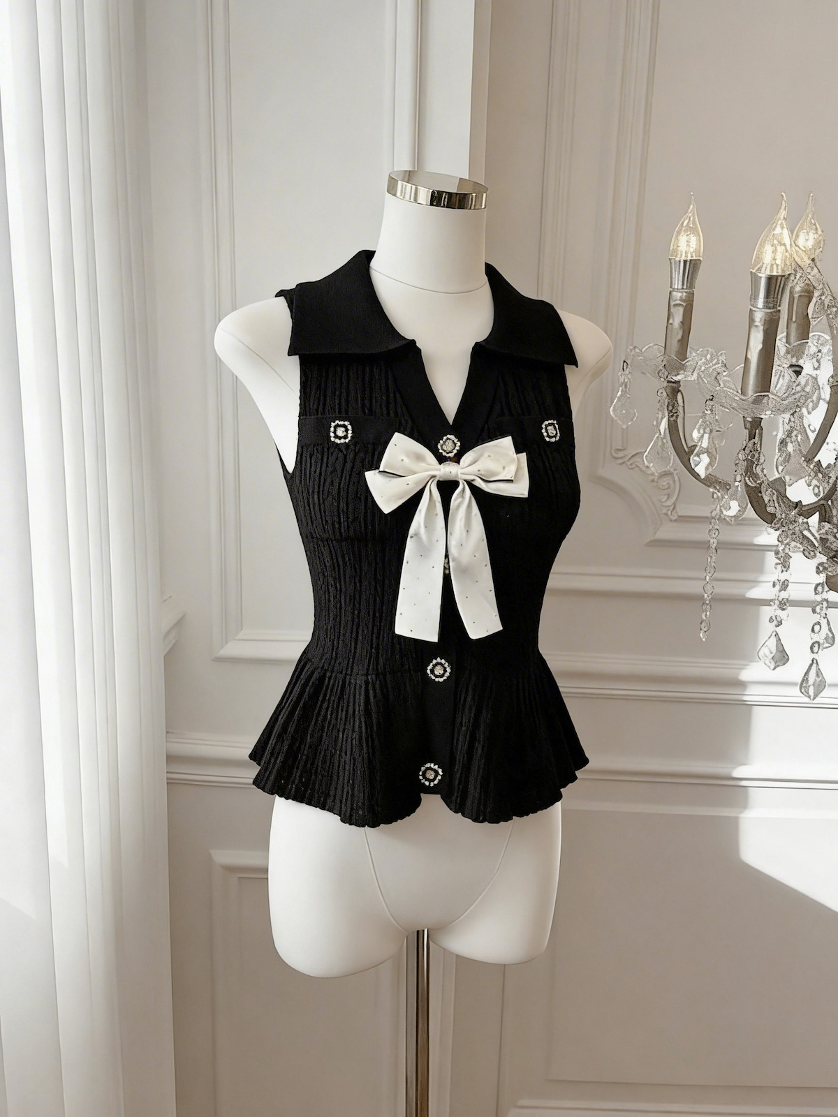 정가 있음 보호 작은 샤넬 스타일 비즈 박기 나비 매듭 조끼 여성 고급 센스 조끼 민소매 홀로우 아웃 작은 맨위