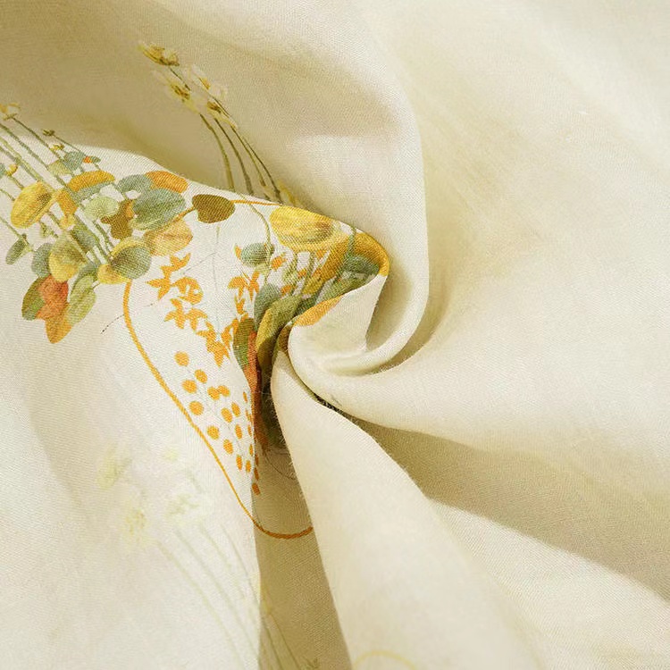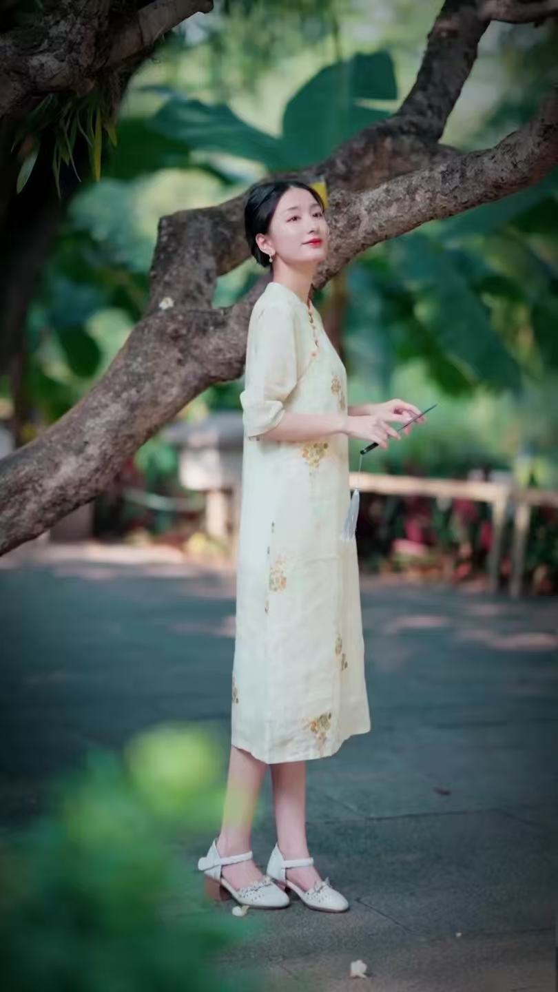 실사 개선 치파오 드레스 단추 아마 중간 길이 스커트 꽃무늬 민족 스타일 면 실크 여성 의류 드레스