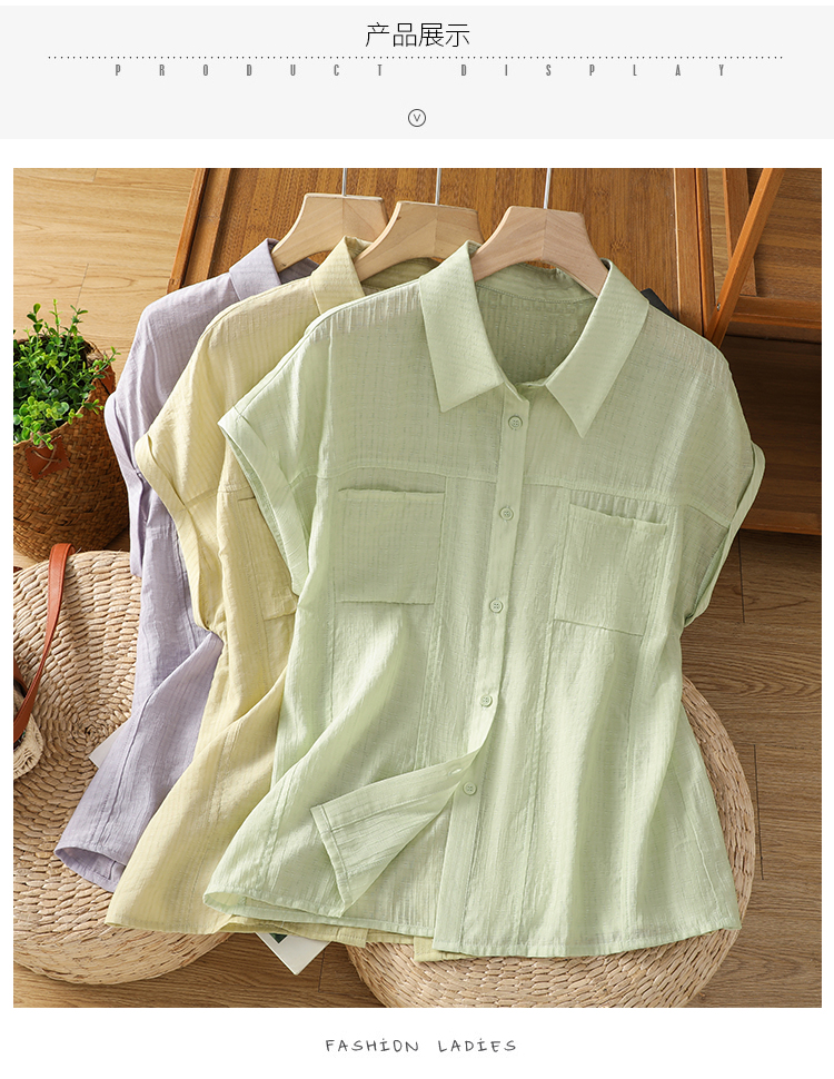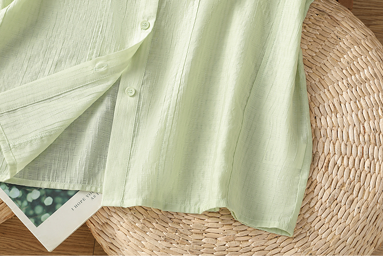 실사 2026 여름 새로운 아마 빅 사이즈 스탠드 칼라 7부 소매 루즈핏 태양 보호 셔츠 패션 연령 감소 여성 셔츠