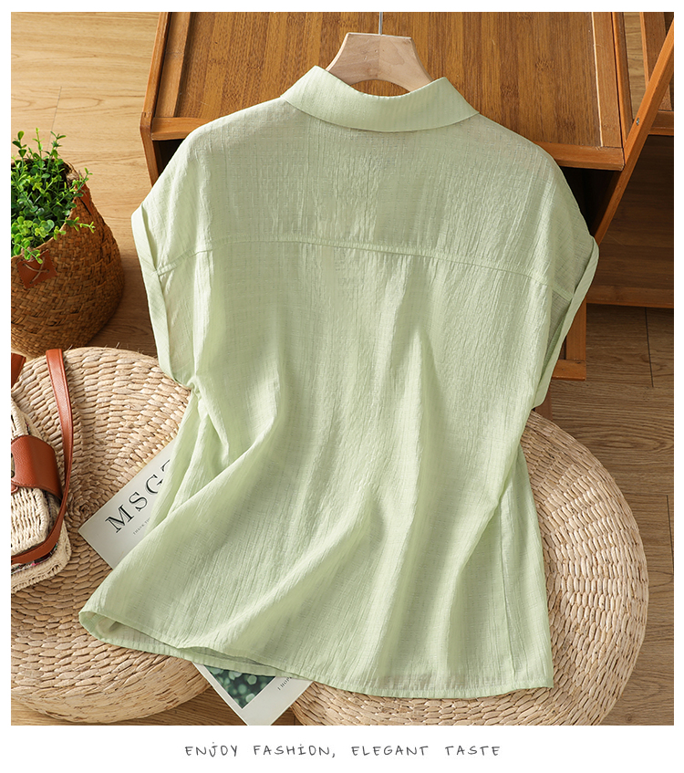 실사 2026 여름 새로운 면 린넨 레트로 풀오버 반팔 마 셔츠 루즈핏 캐주얼 단색 다용도 문예 티셔츠 여성