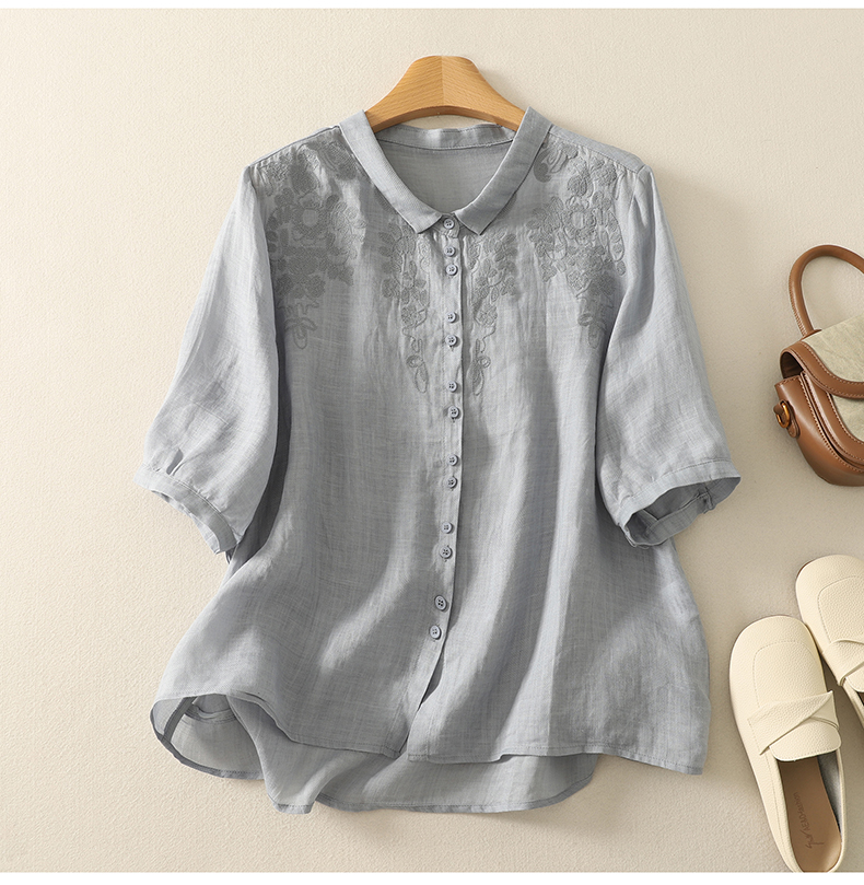 실사 2026 여름 새로운 면 나병 루즈핏 빅 사이즈 자수 맨위 어머니 드레스 패션 연령 감소 아름다운 작은 셔츠