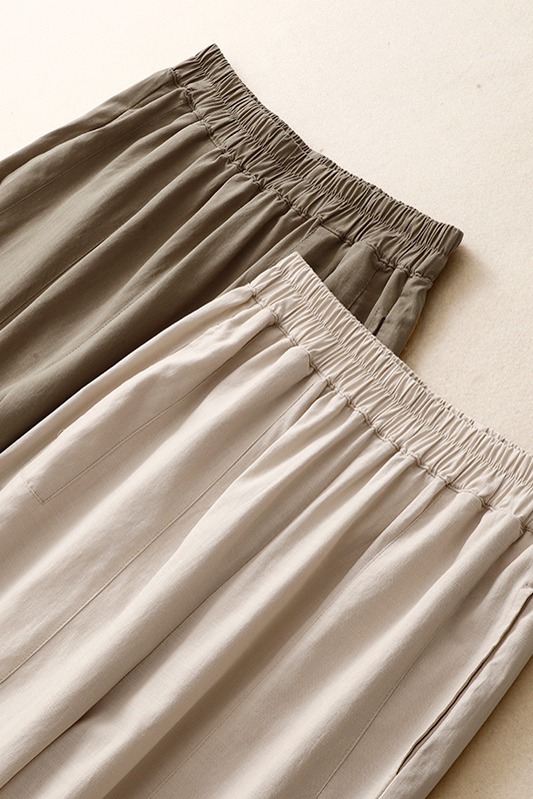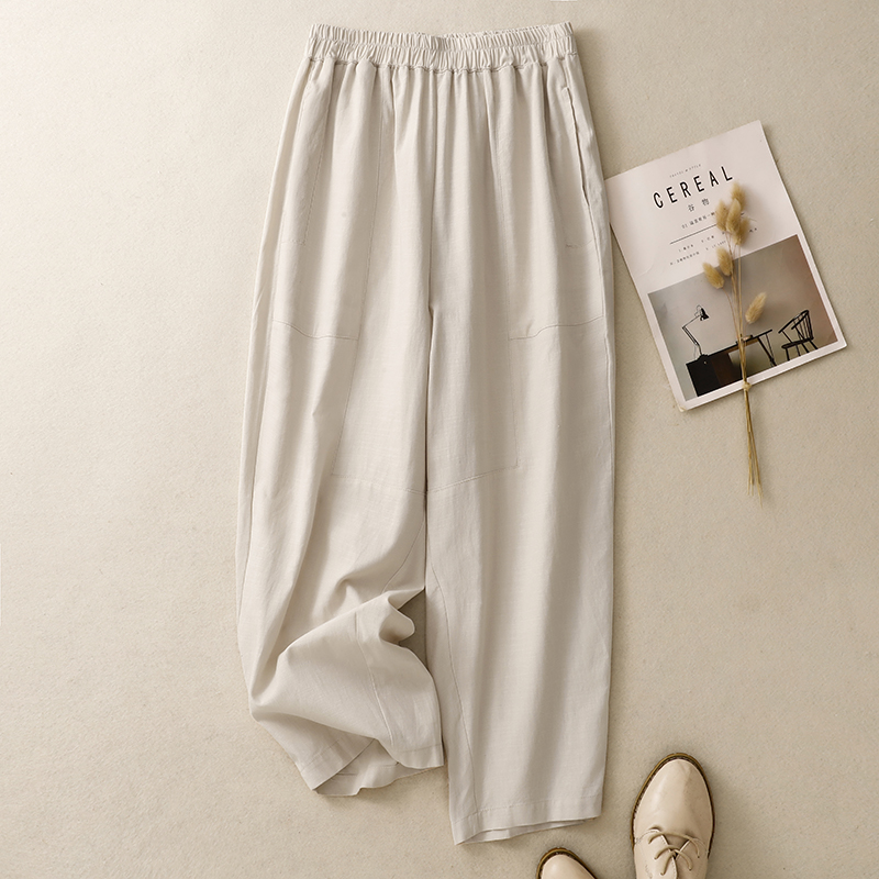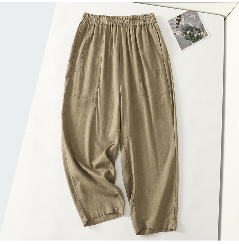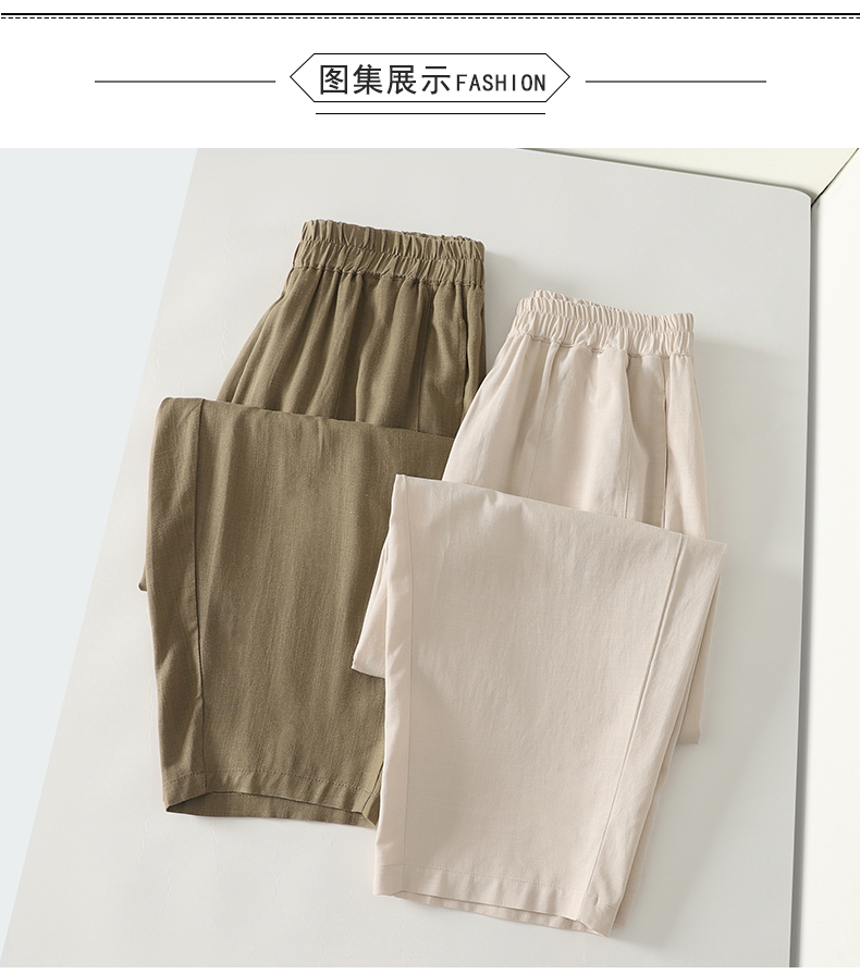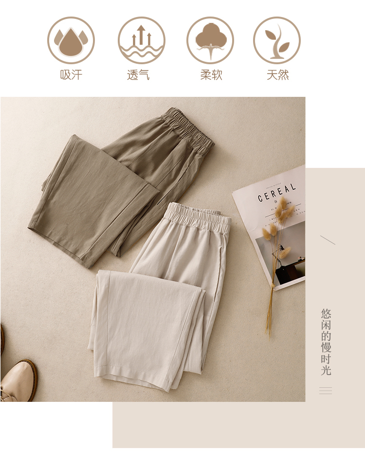 2026 여름 새로운 레트로 아마 바지 허리밴드 다용도 슬림해 보이는 루즈핏 캐주얼 7 점 문예 스트레이트 팬츠 여성