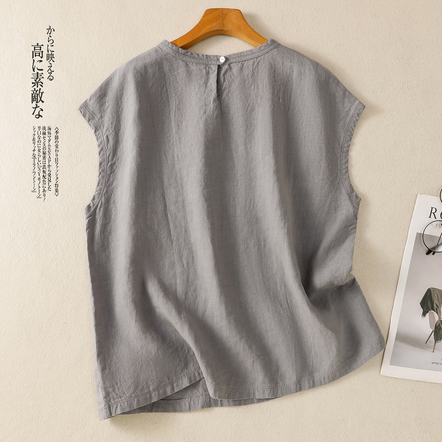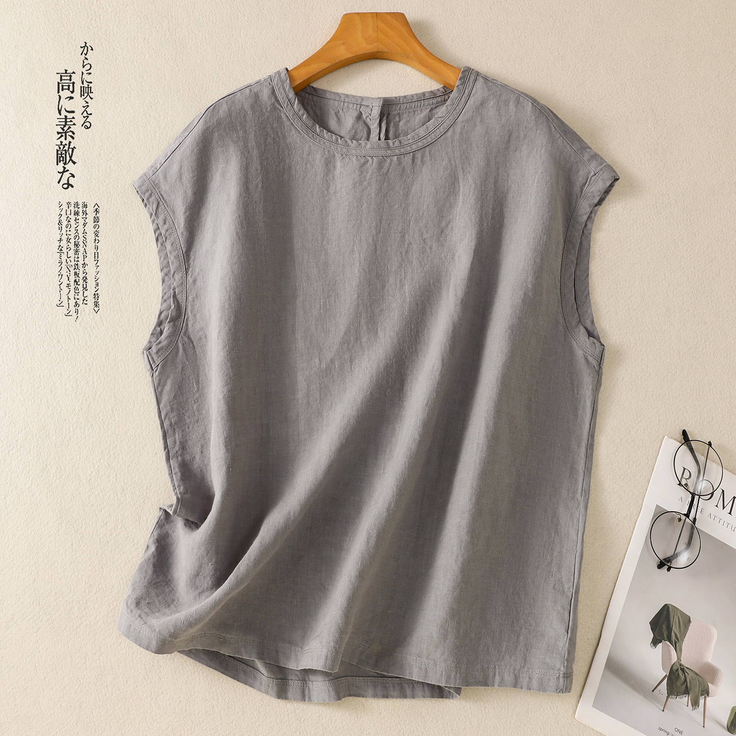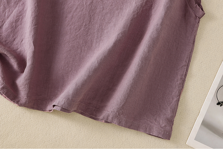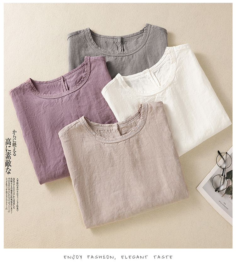 실사 2026 여름 새로운 면 린넨 레트로 풀오버 반팔 마 셔츠 루즈핏 캐주얼 단색 다용도 문예 티셔츠 여성