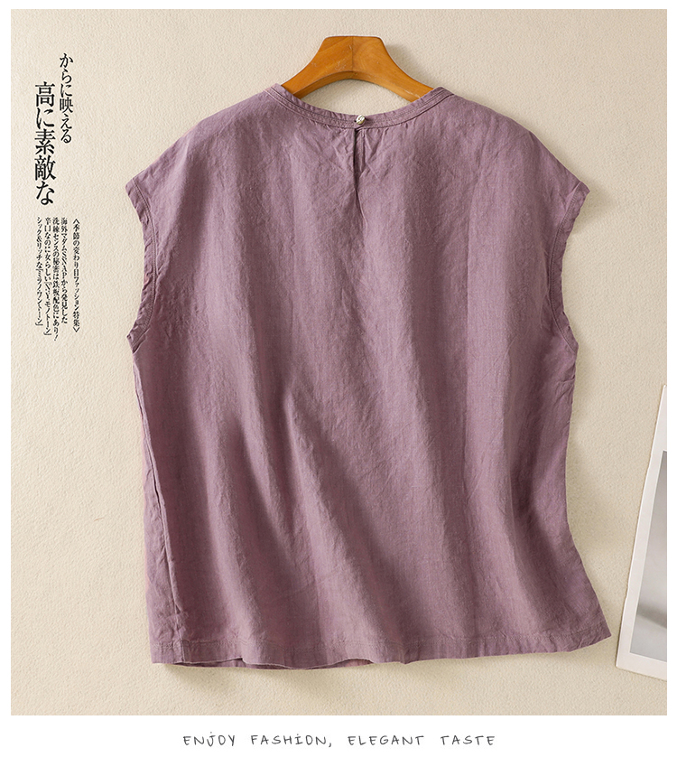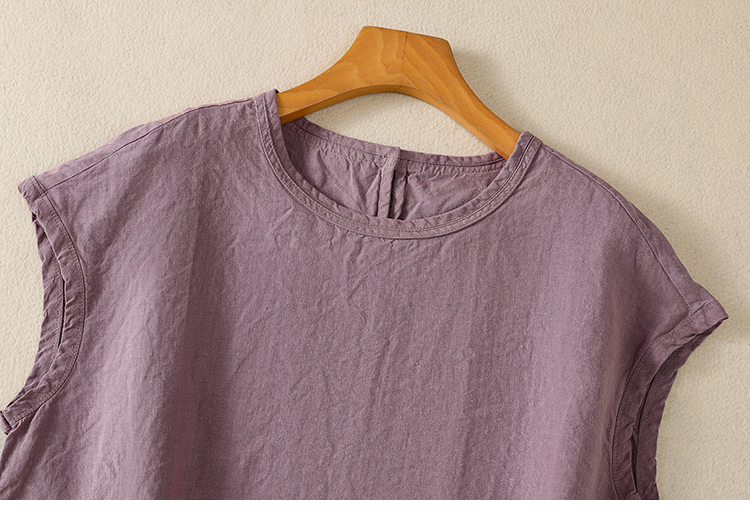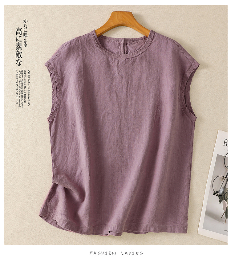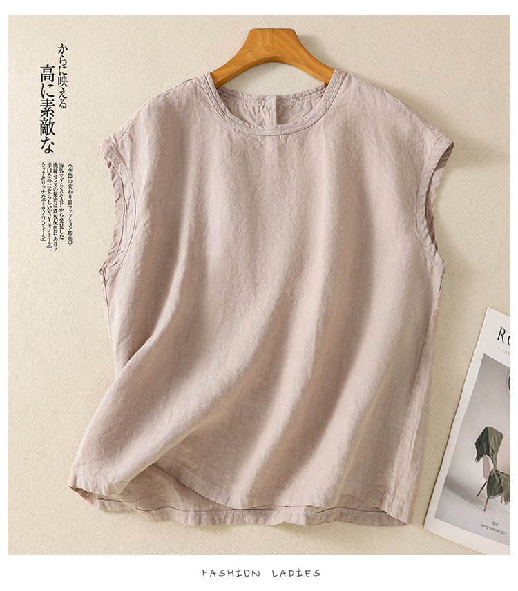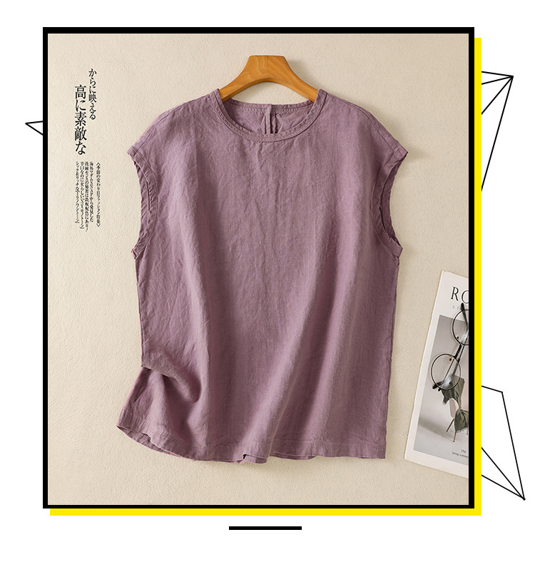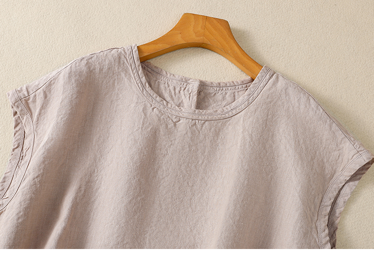 실사 2026 여름 새로운 면 린넨 레트로 풀오버 반팔 마 셔츠 루즈핏 캐주얼 단색 다용도 문예 티셔츠 여성