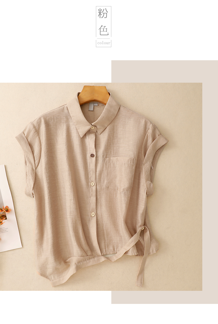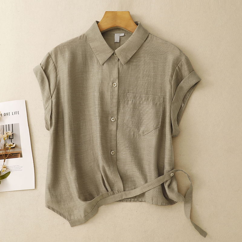 프랑스식 화이트 면 린넨 여성 셔츠 여름 얇은 스타일 아마 거품 소매 셔츠 품격 중간 소매 5 점 소매 맨위