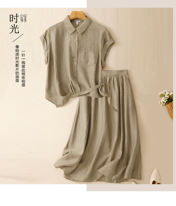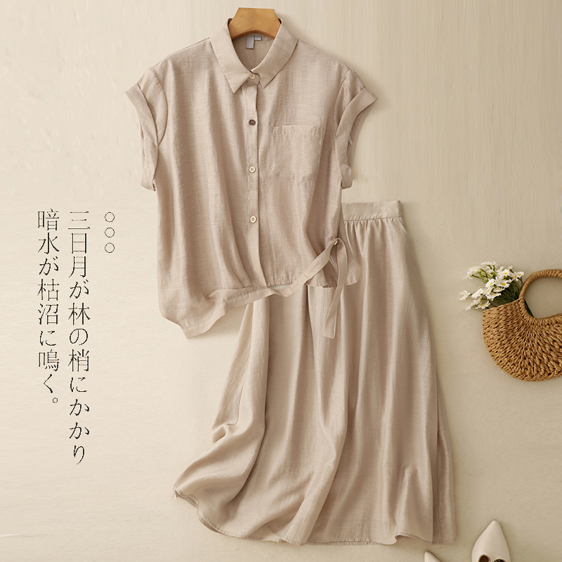 실사 2026 여름 새로운 라이 경기 서울 아마 가벼움 셔츠 세트 드레스 여성 품격 캐주얼 반신 스커트 투피스 세트