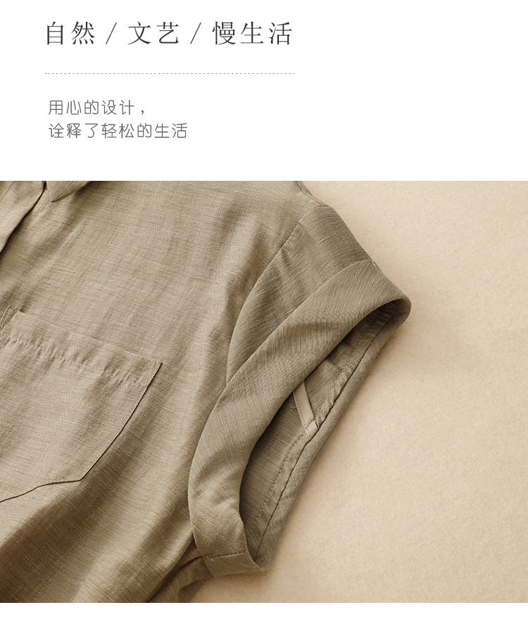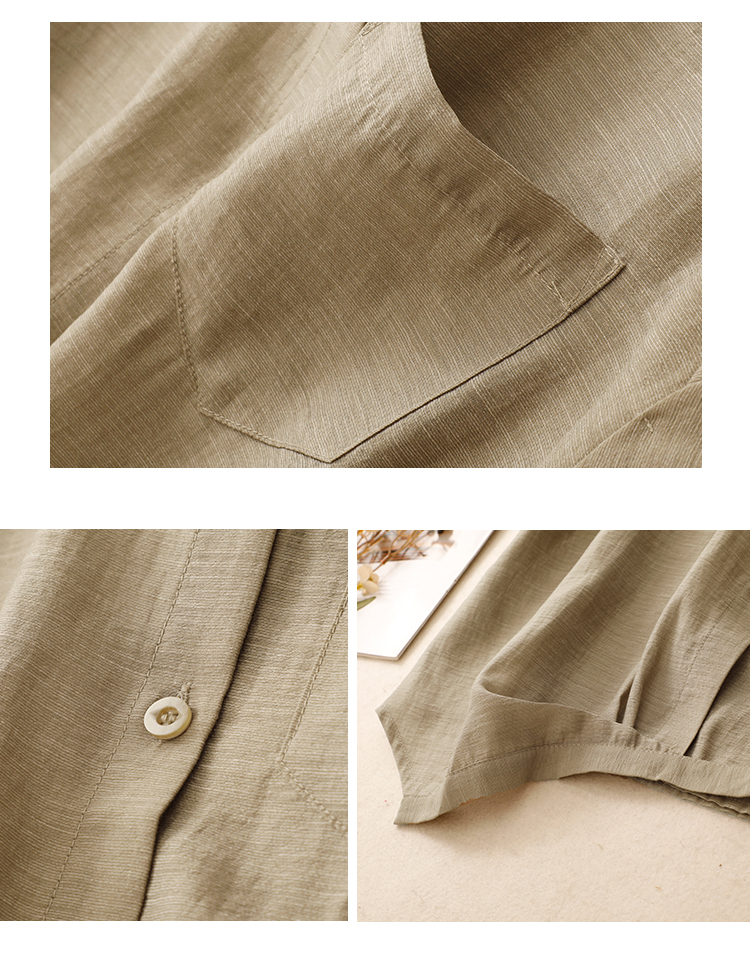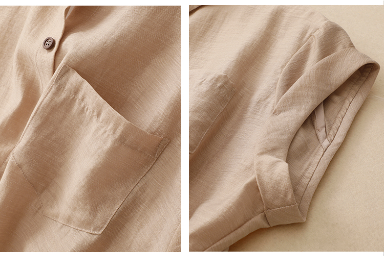 실사 2026 여름 새로운 아마 빅 사이즈 스탠드 칼라 7부 소매 루즈핏 태양 보호 셔츠 패션 연령 감소 여성 셔츠