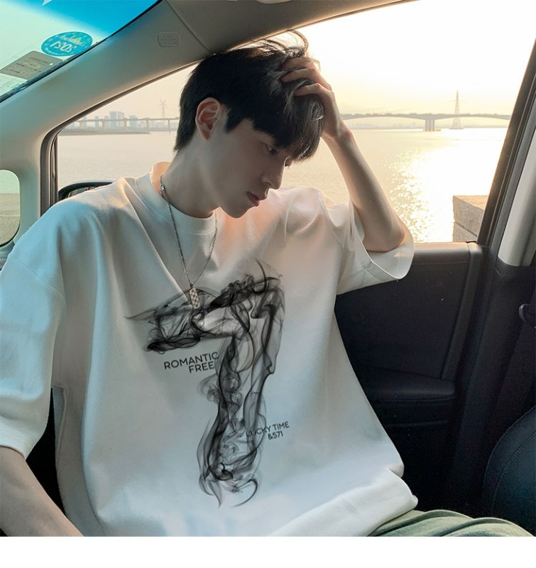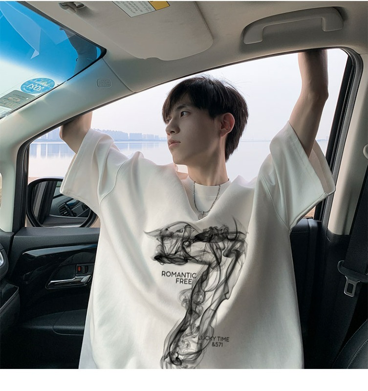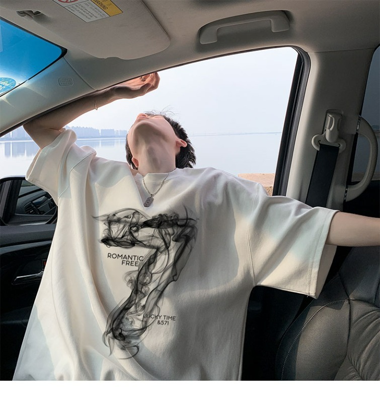 순면 짧은 티셔츠 남자 여름 옷 아메리칸 높음 거리 루즈핏 ins 조수 브랜드 남성 의류 동정 반소매 맨위