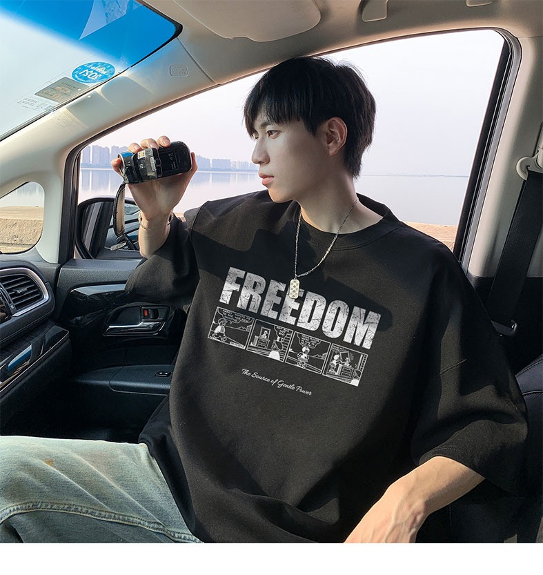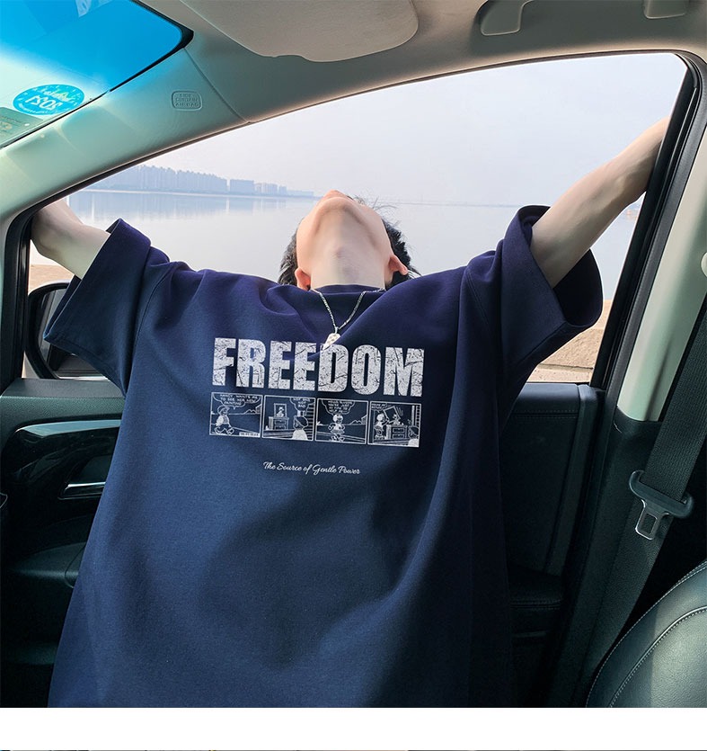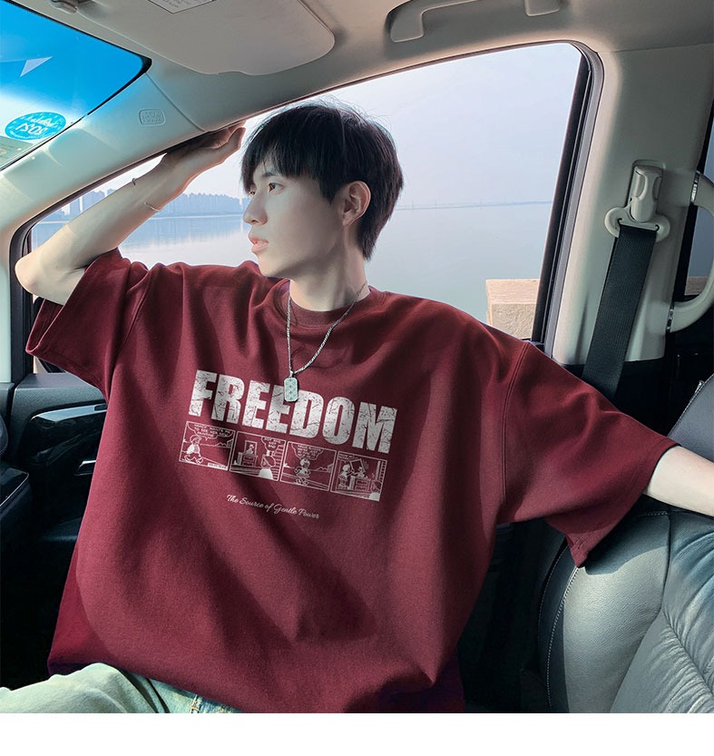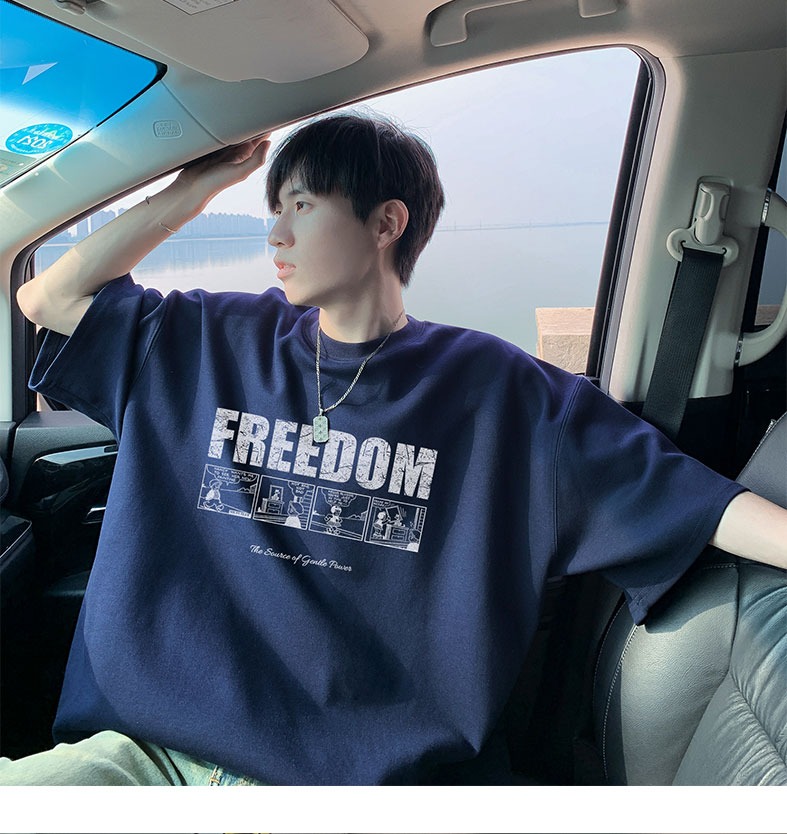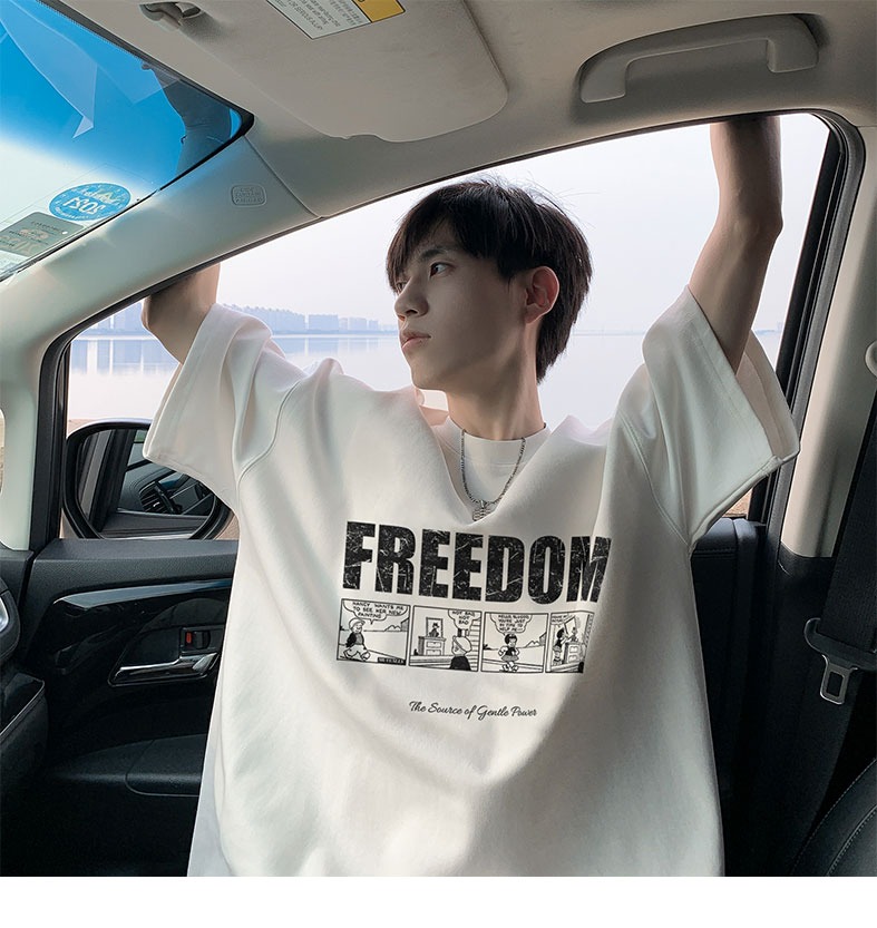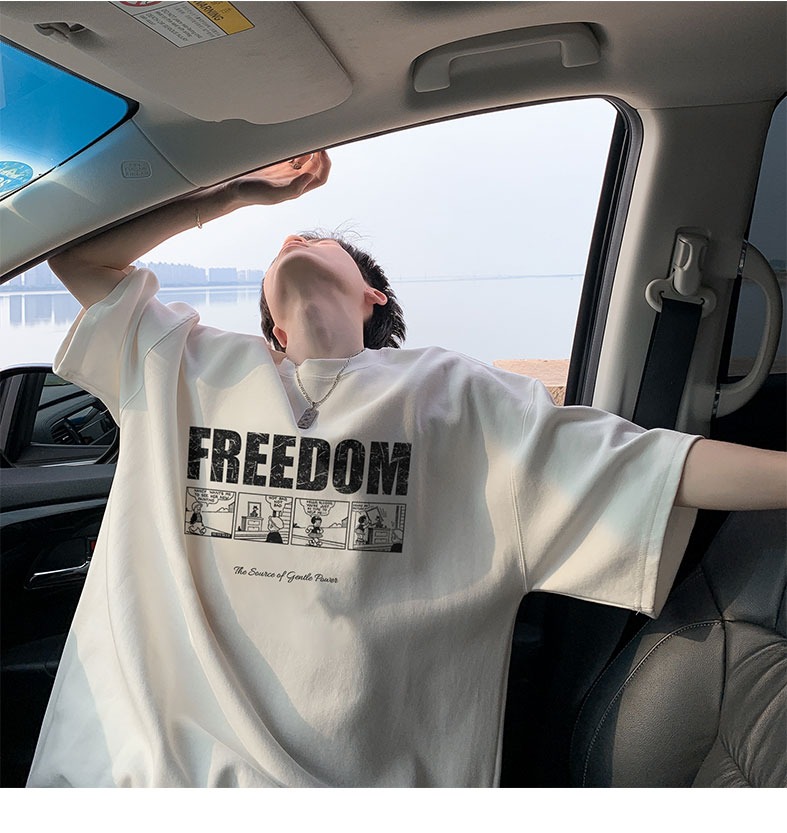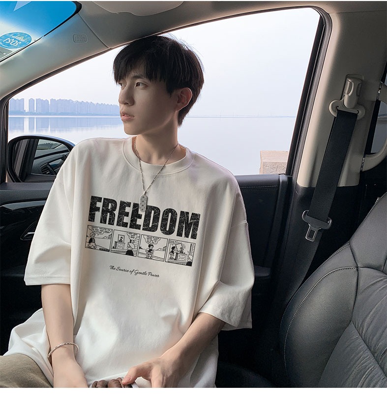 순면 100 반팔 티셔츠 남자 여름 루즈핏 빅 사이즈 맨위 아메리칸 조수 브랜드 반소매 동정