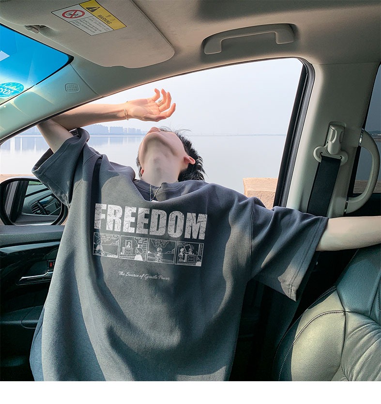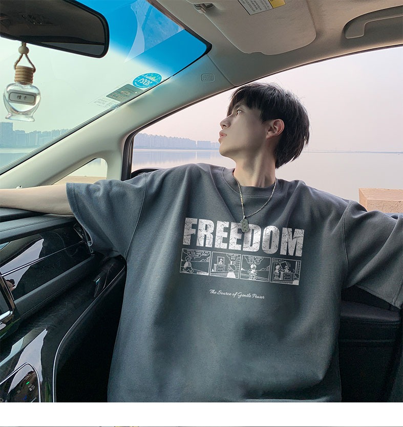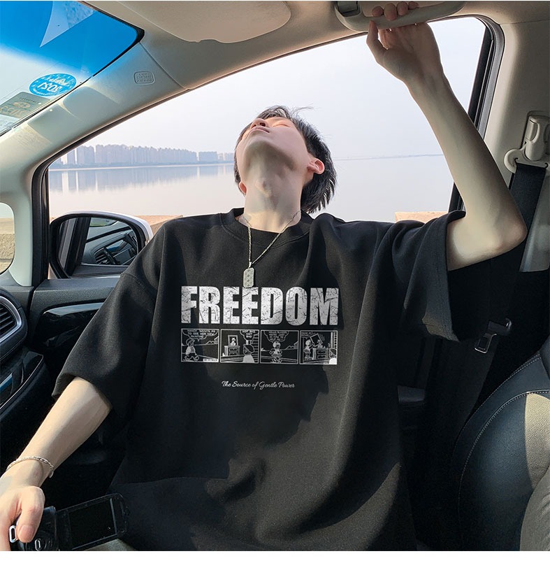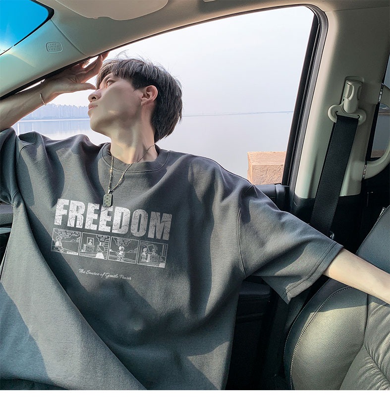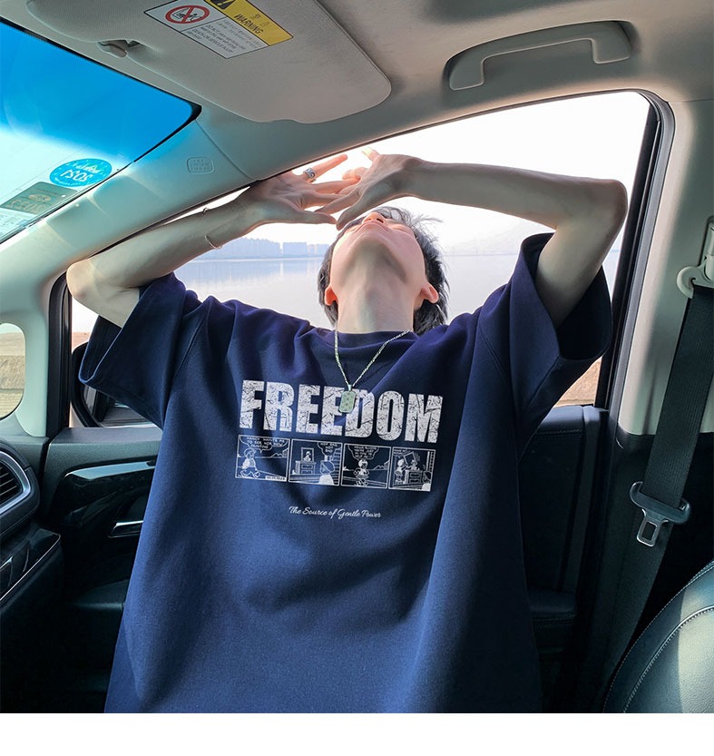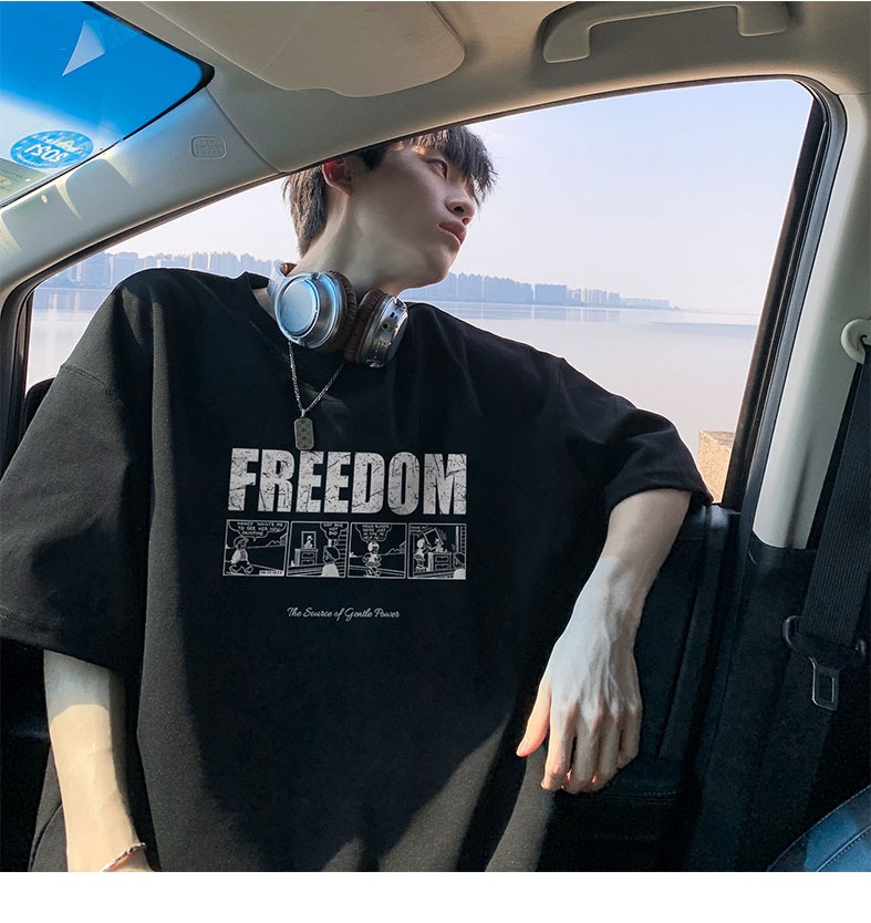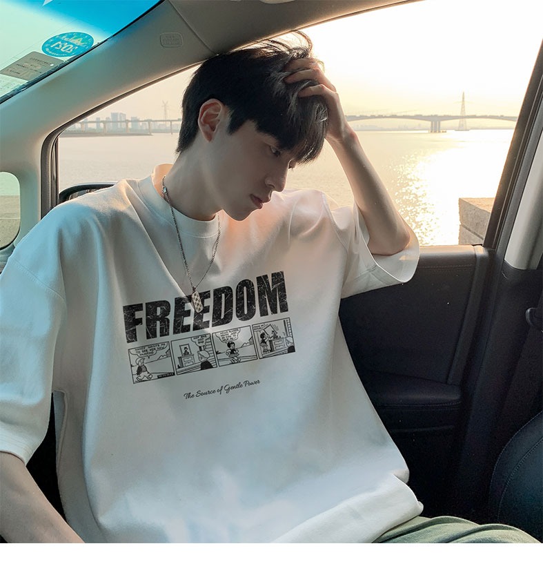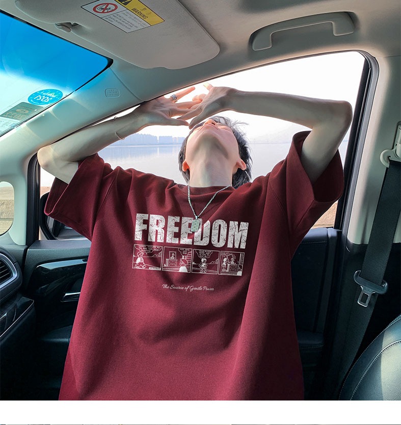 순면 100 반팔 티셔츠 남자 여름 루즈핏 빅 사이즈 맨위 아메리칸 조수 브랜드 반소매 동정