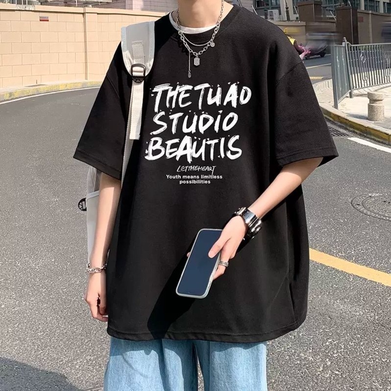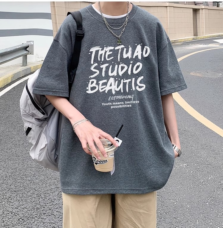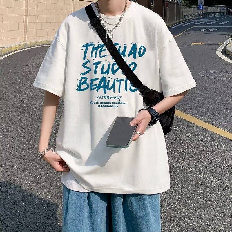 반팔 소년 여름 티셔츠 새로운 아메리칸 여름 조수 브랜드 반소매 루즈핏 무거운 순면 맨위 동정