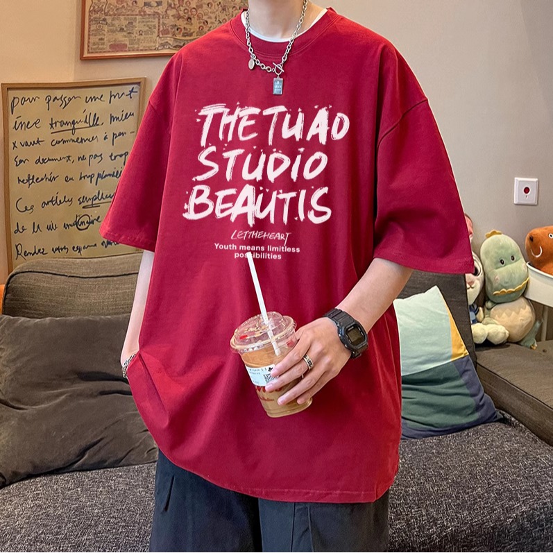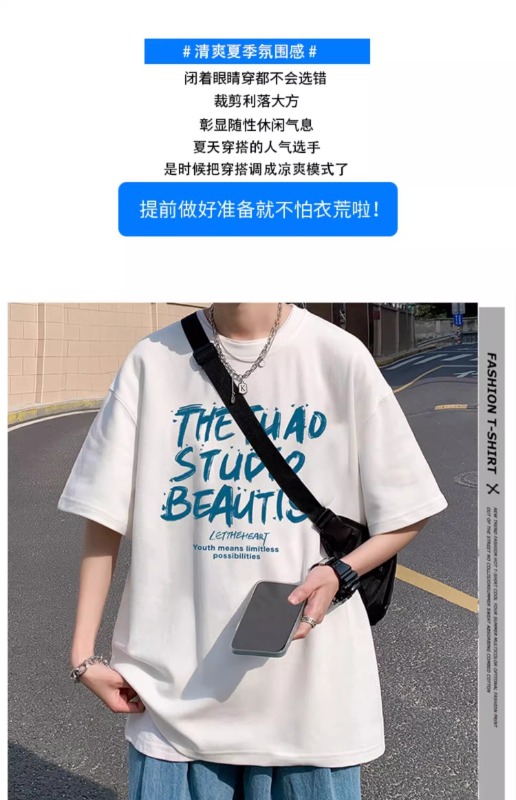 순면 100 반팔 티셔츠 남자 여름 루즈핏 빅 사이즈 맨위 아메리칸 조수 브랜드 반소매 동정