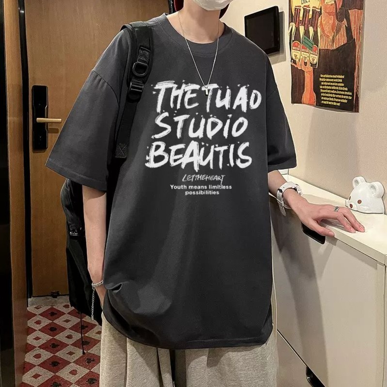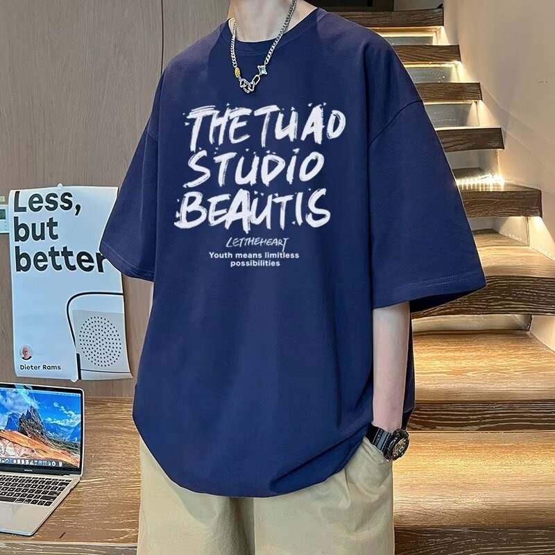 100 순면 여름 아메리칸 레트로 루즈핏 라운드 넥 반팔 티셔츠 2025 새로운 조수 브랜드 트렌드 커플 반소매
