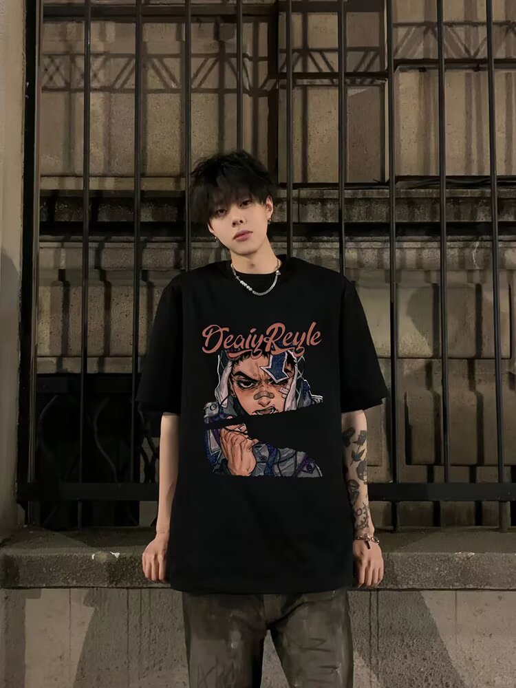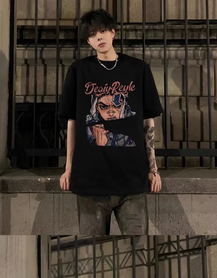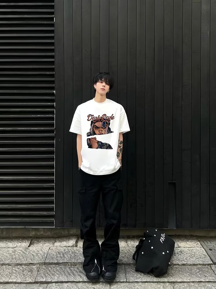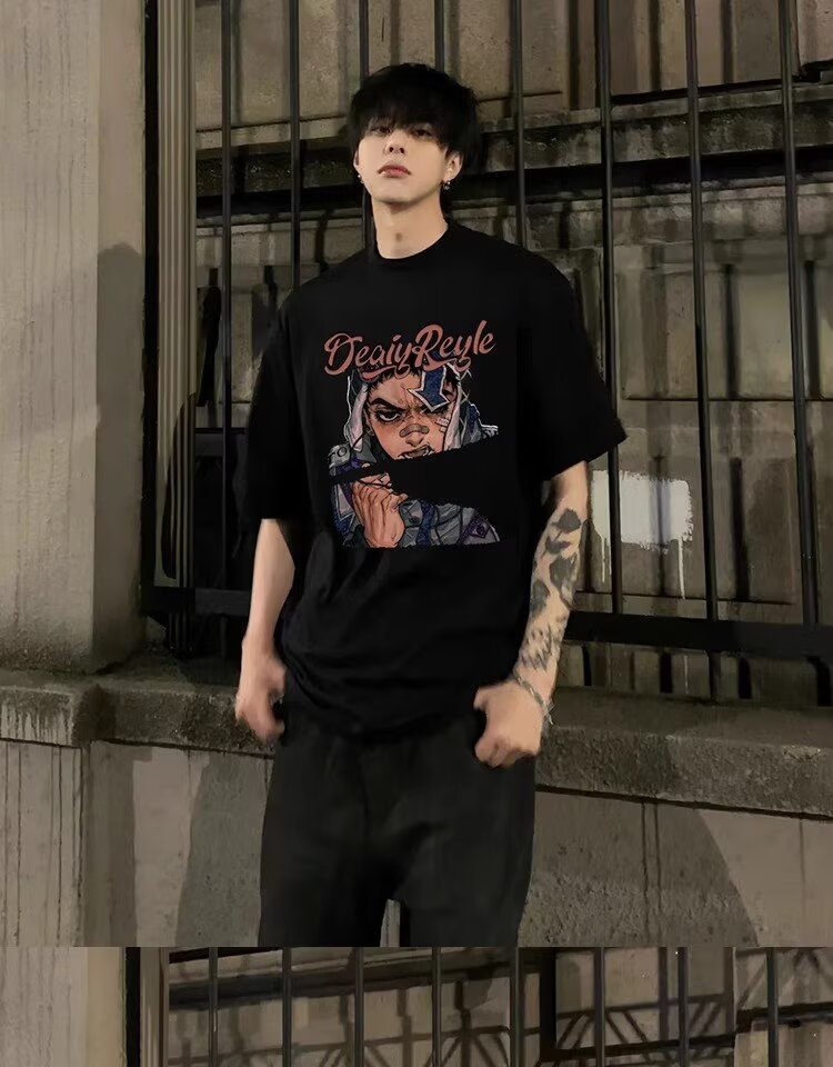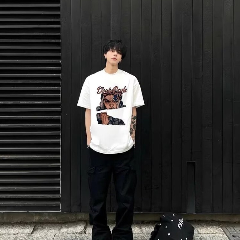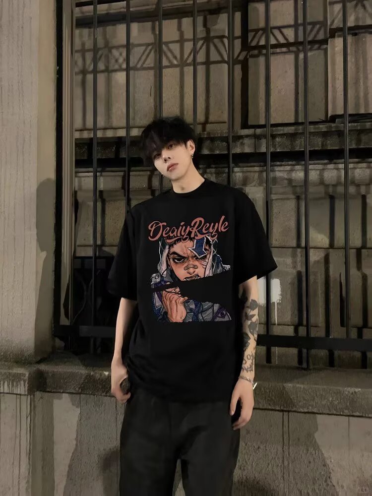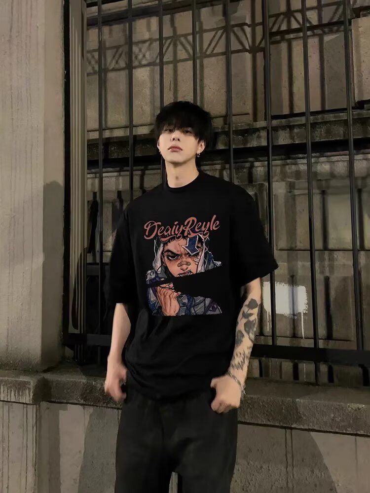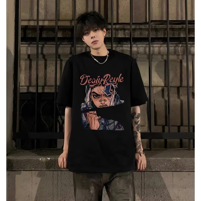 순면 짧은 티셔츠 남자 여름 옷 아메리칸 높음 거리 루즈핏 ins 조수 브랜드 남성 의류 동정 반소매 맨위
