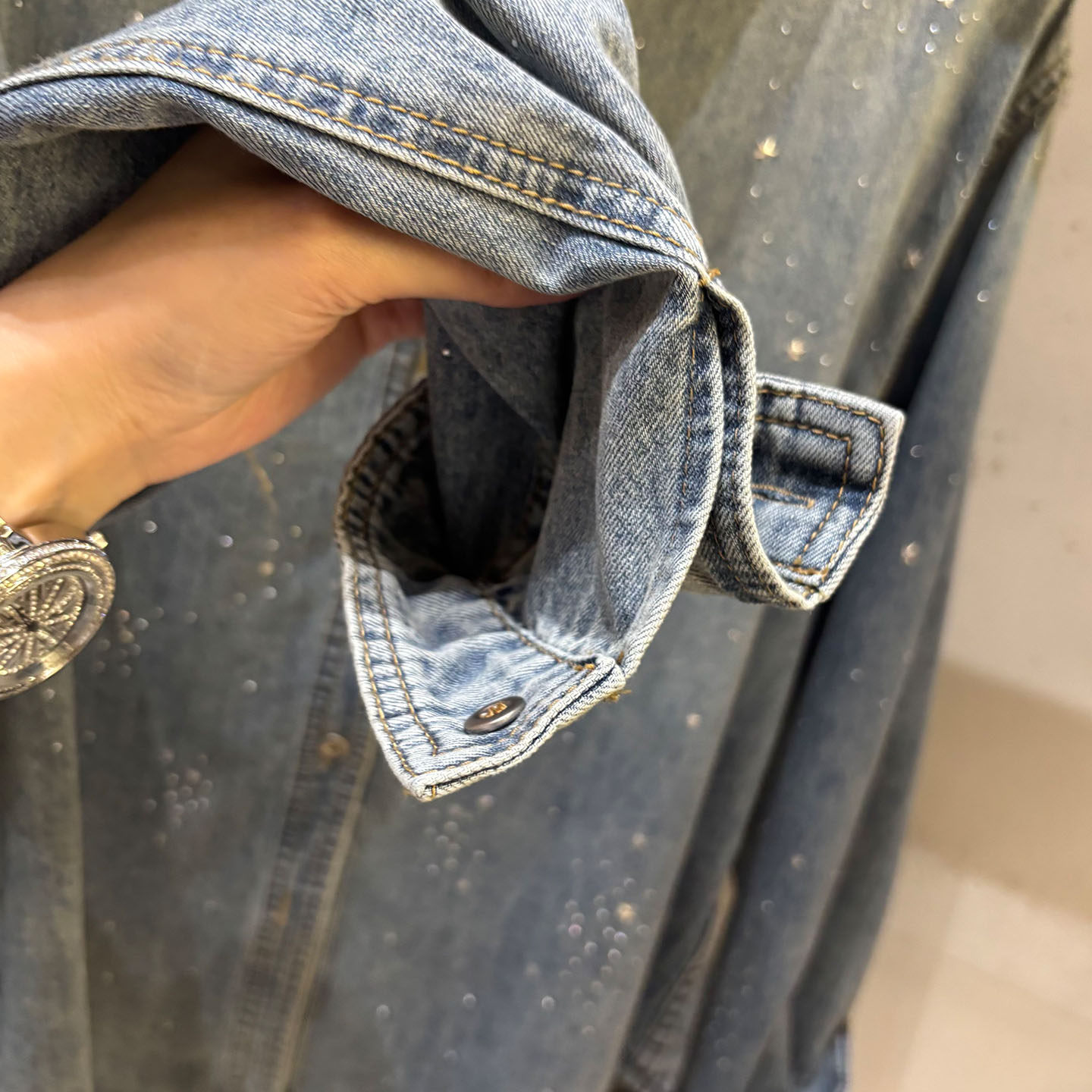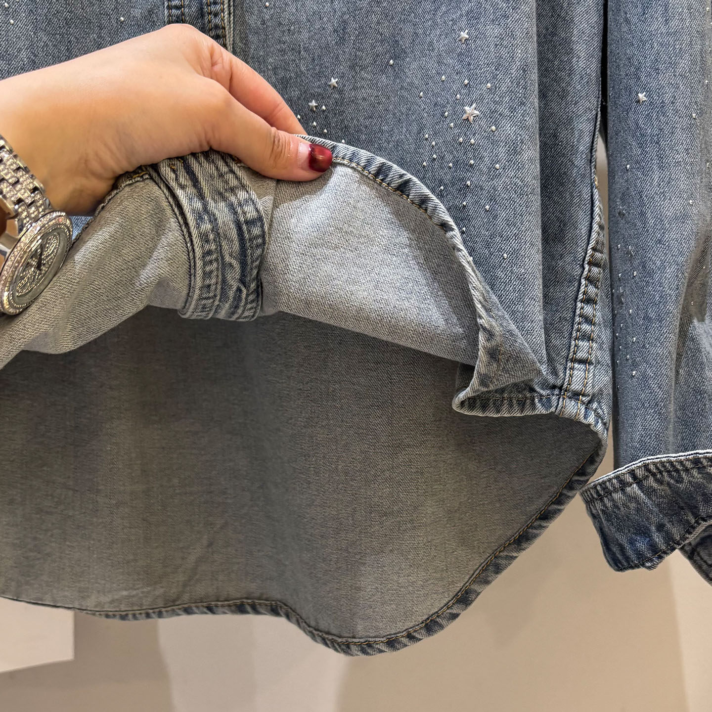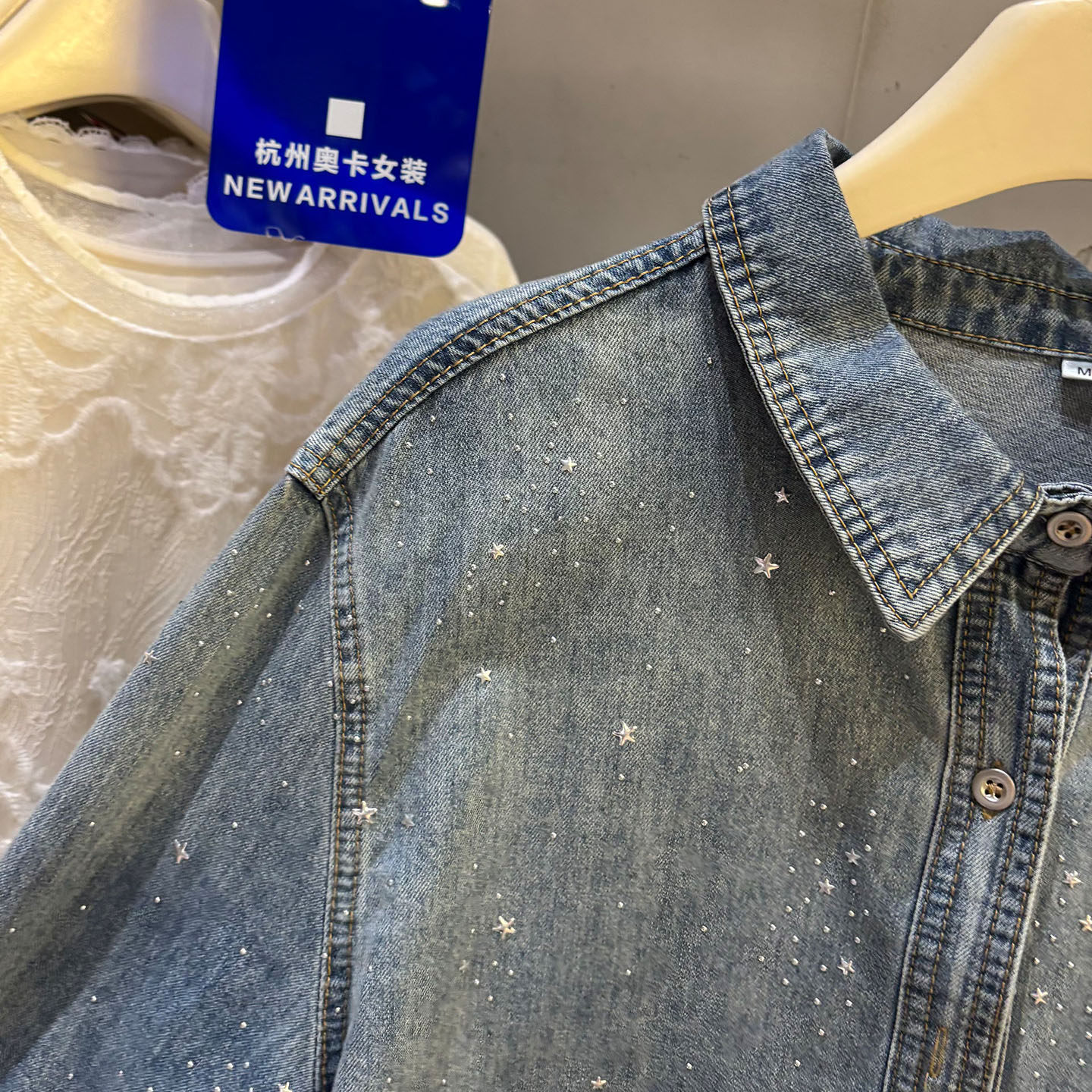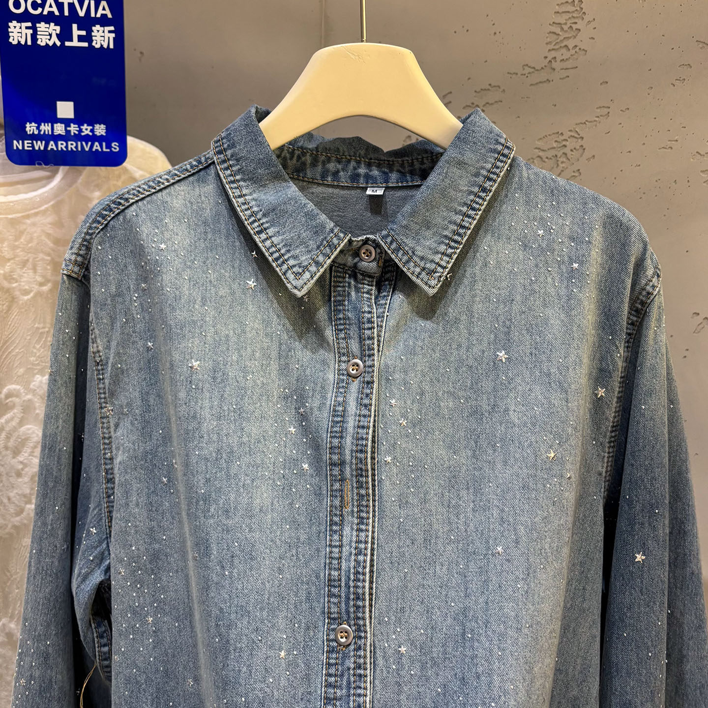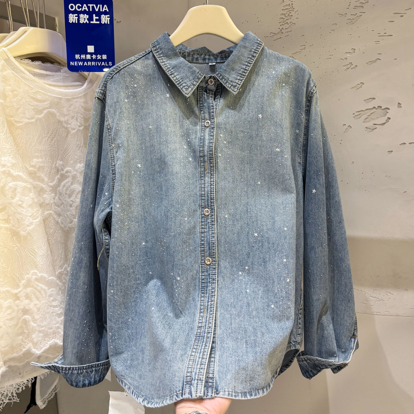 높음 세트 유럽 상품 빛나는 별 핫픽스 데님 셔츠 여성 긴 소매 2026 봄 새로운 캐주얼 다용도 맨위