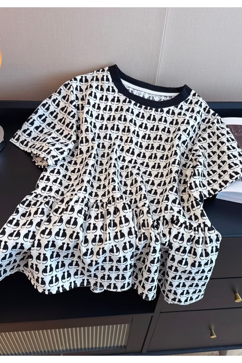 실사 지방 mm 프랑스식 특별 빅 사이즈 레이스 조각 루즈핏 여성용 짧은 소매 품격 인형 셔츠 맨위 빅 사이즈 여성 의류