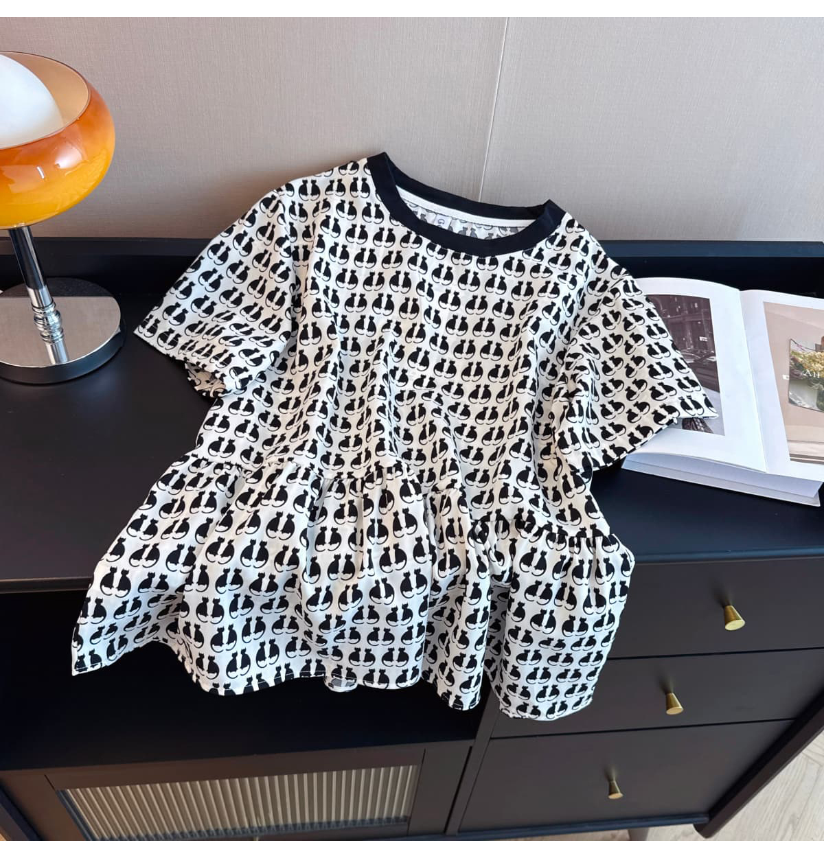 실사 2026 여름 새로운 라운드 넥 연령 감소 작은 치마 슬림해 보이는 반팔 다용도 맨위