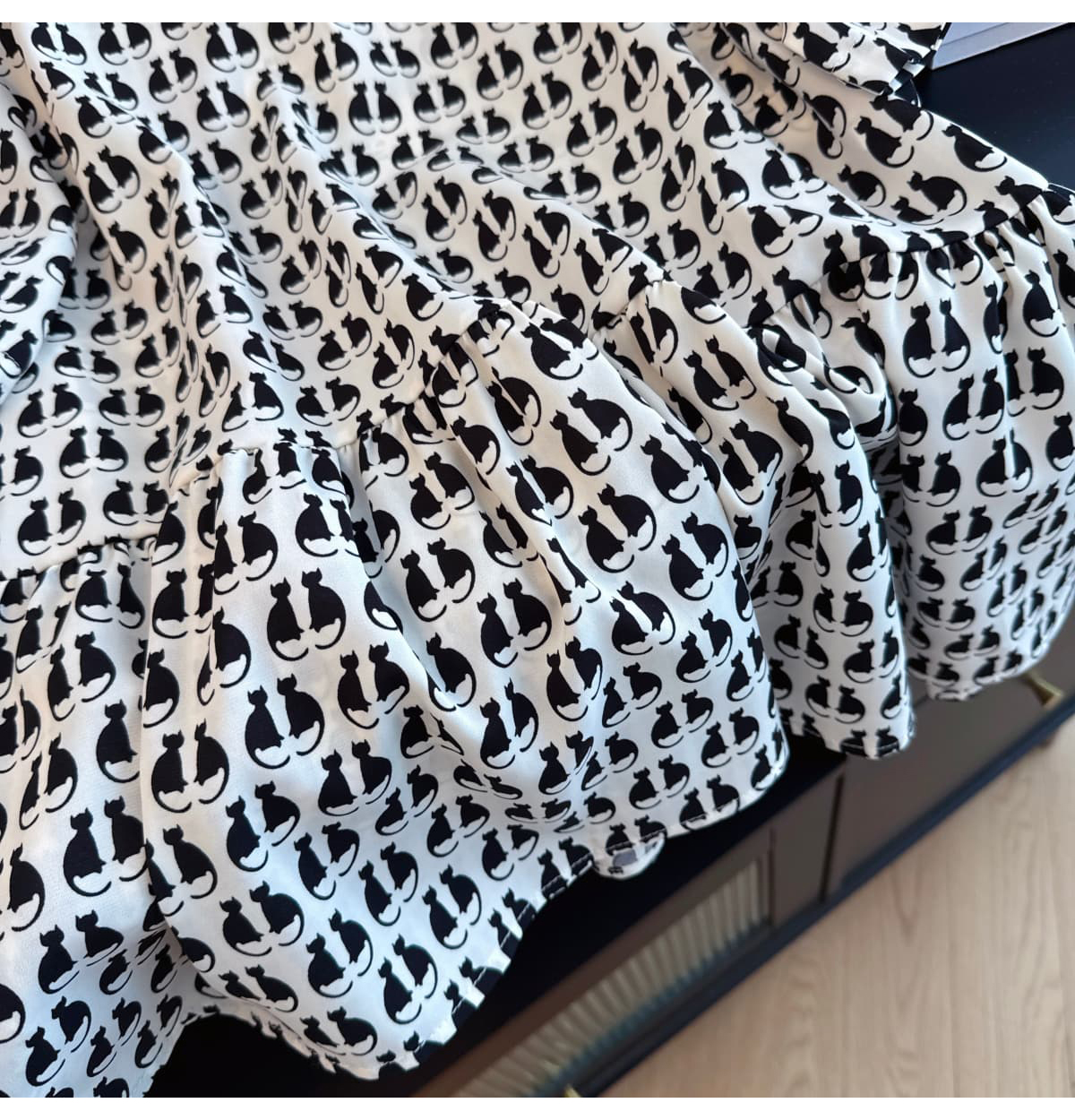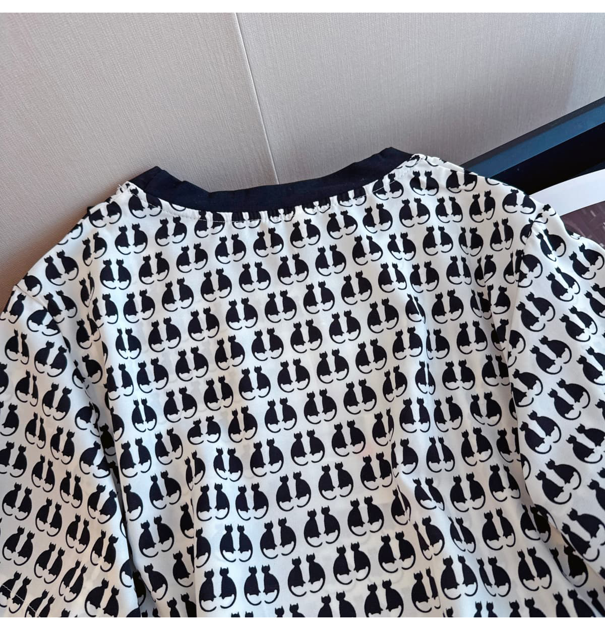 실사 슬림해 보이는 반팔 프린트 셔츠 품질 패션 Feifei 소매 쉬폰 블라우스 나비 넥타이 셔츠