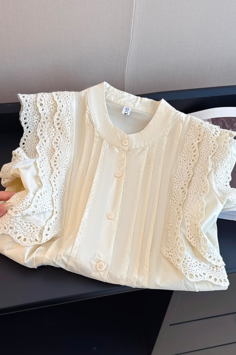 실사 프랑스식 레트로 품격 홀로우 아웃 레이스 조각 작은 날다 소매 민소매 조끼 여성 셔츠 여름