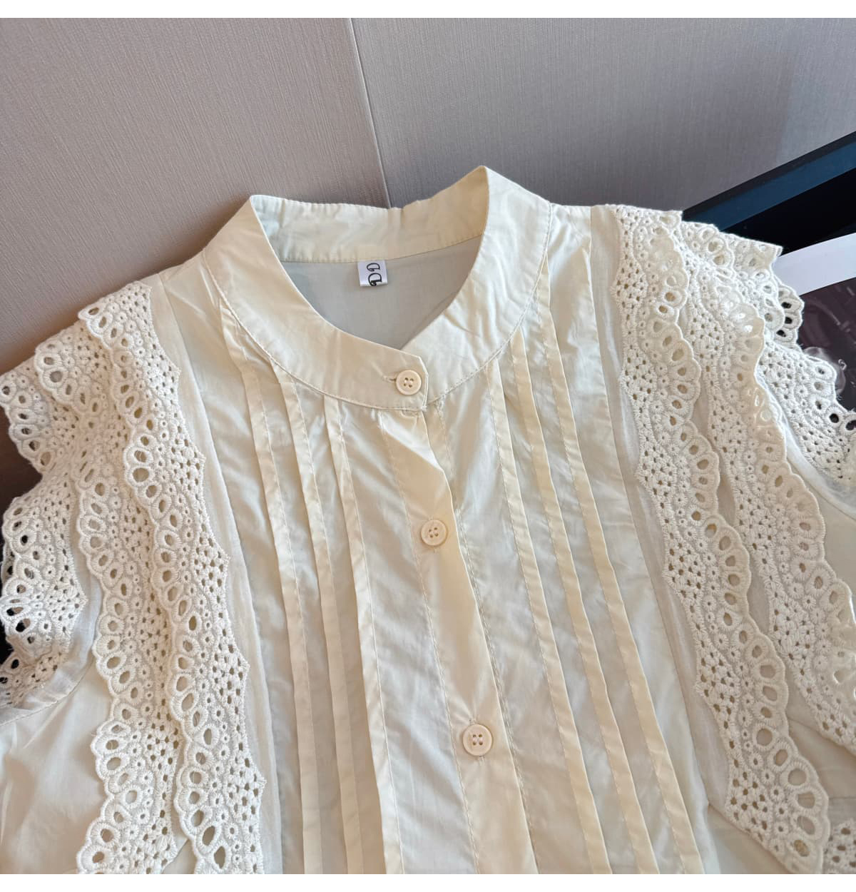 실사 한 부서 디자인 센스 꽃무늬 민소매 레이스 레이스 패치워크 여성 셔츠 루즈핏 다용도 맨위
