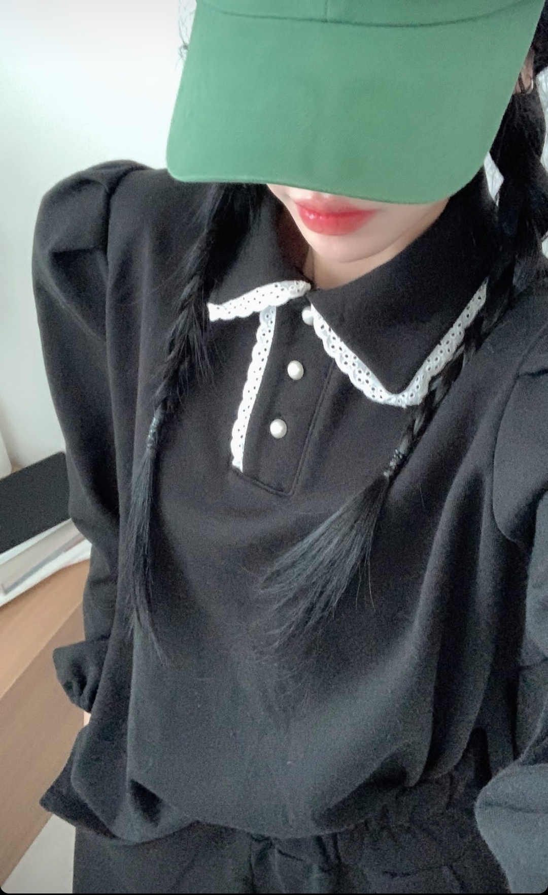 재고 있음 한국 동대문 봄 새로운 거품 소매 레이스 측면에 의류 웨이 바지 세트