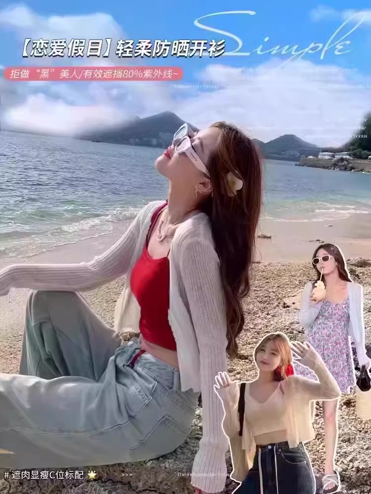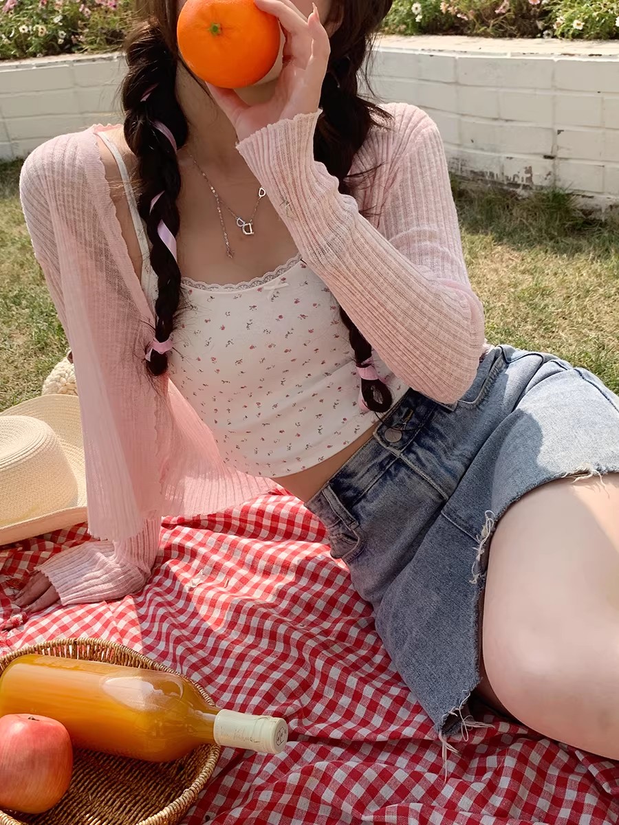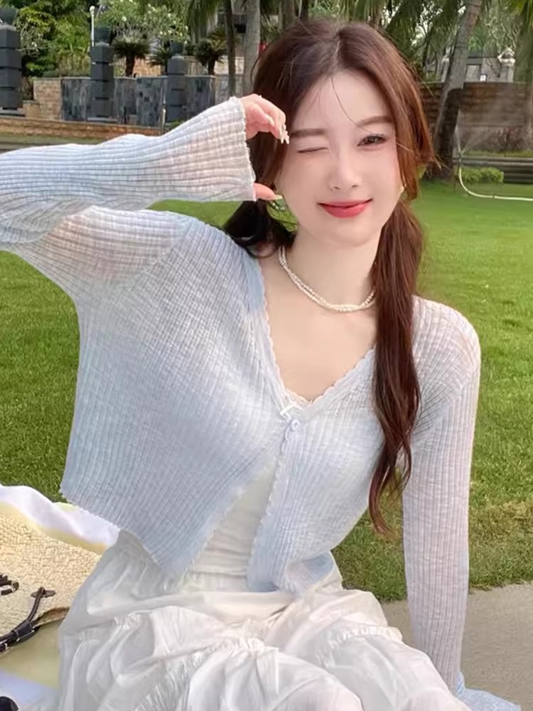 자수 홀로우 아웃 니트 오픈 가디건 여성 2026 여름 새로운 쇼트 스타일 레이스업 긴팔 자외선 차단 블라우스 다용도 맨위