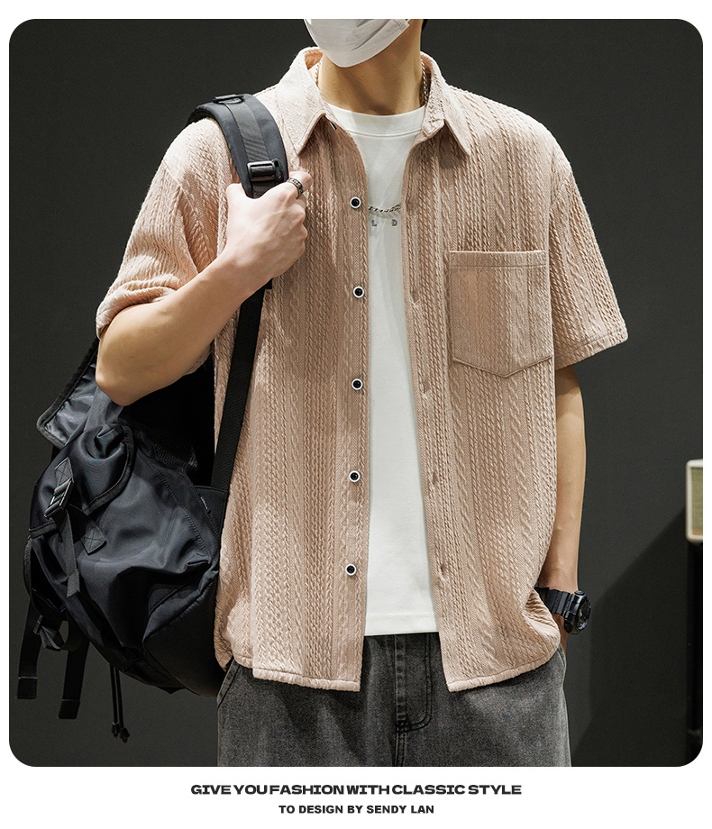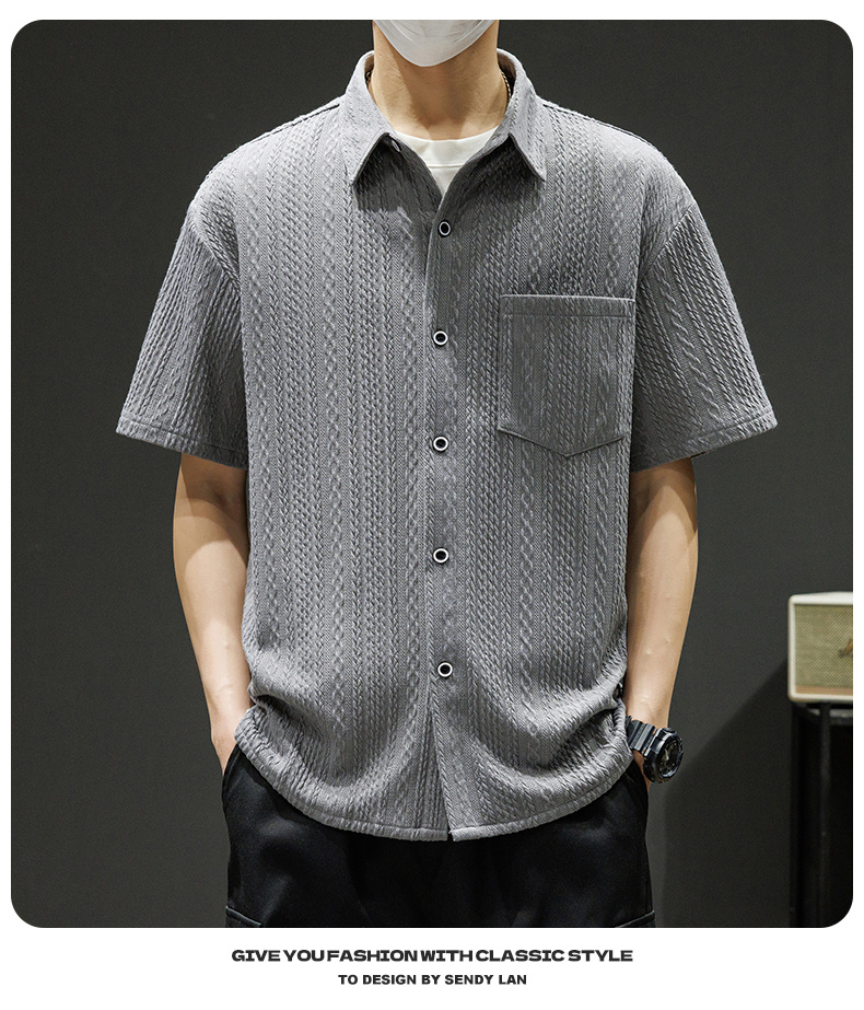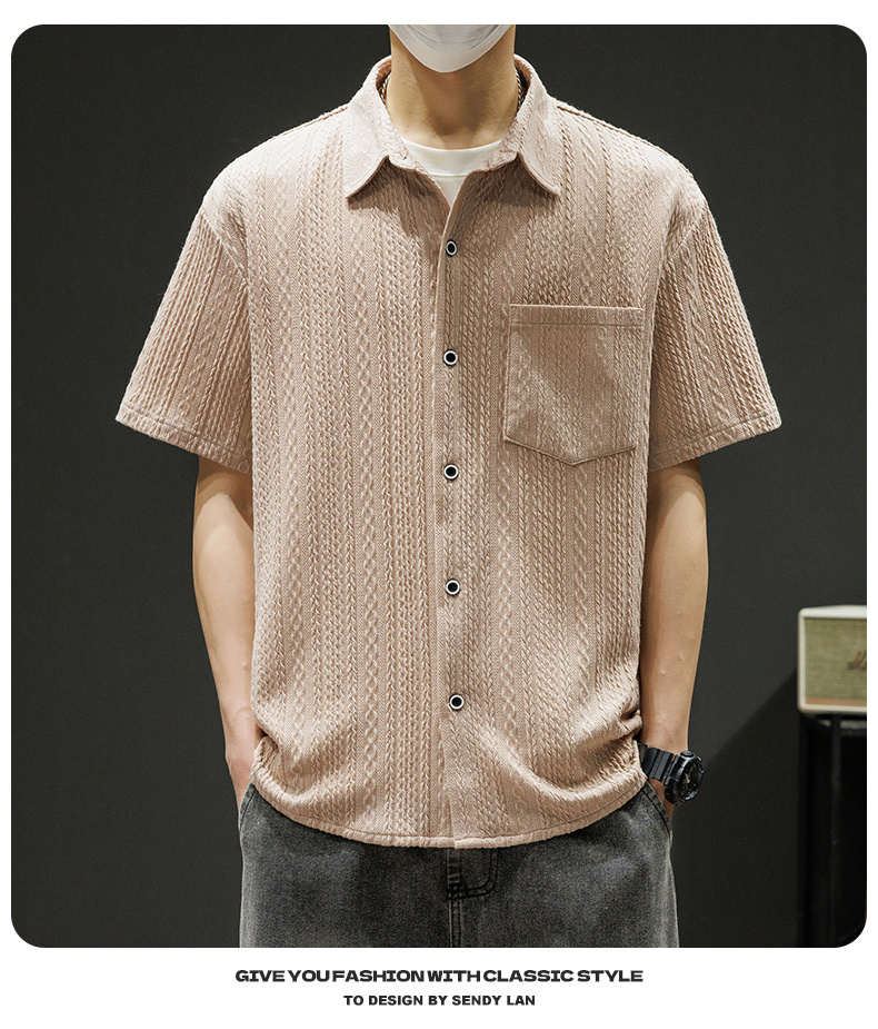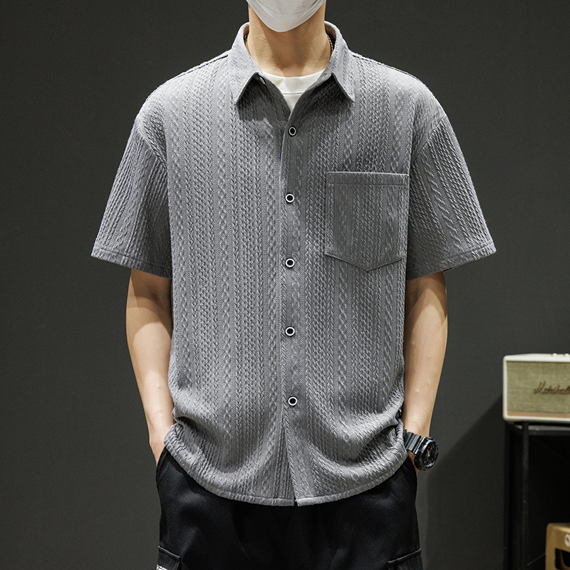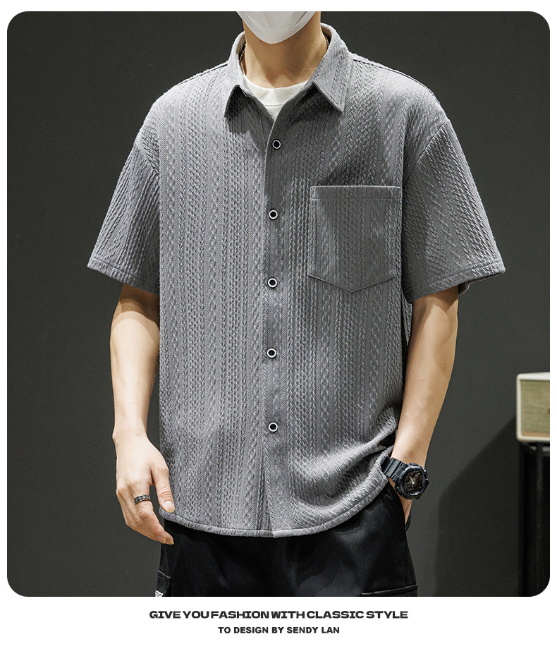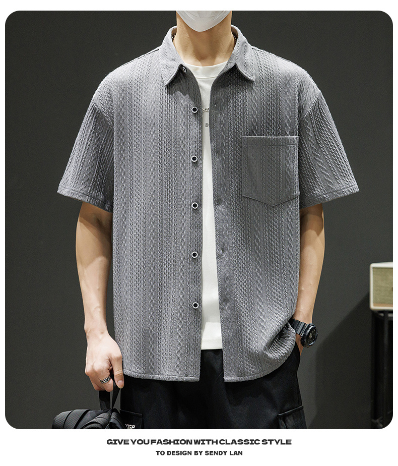 새로운 여름 남자 트렌드 루즈핏 조수 브랜드 반팔 티셔츠 맨위 5 점 소매 자카드 폴로 칼라 반팔 셔츠