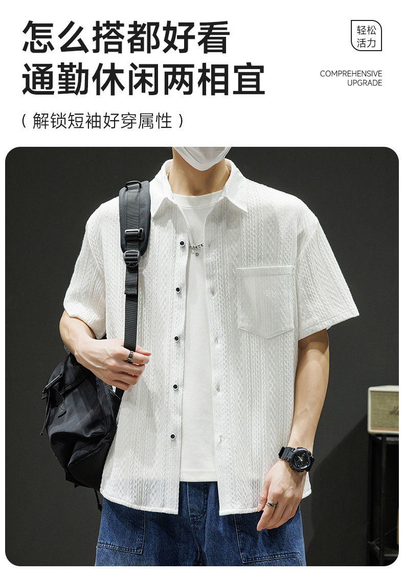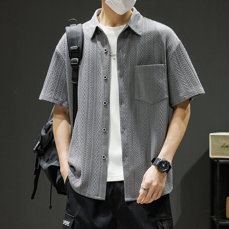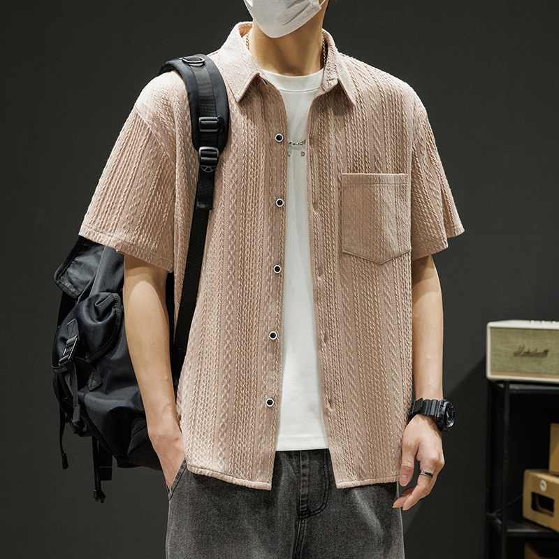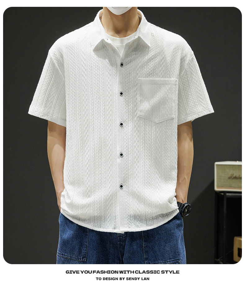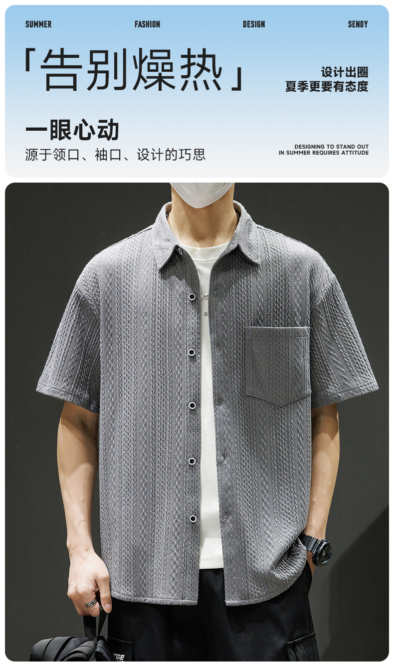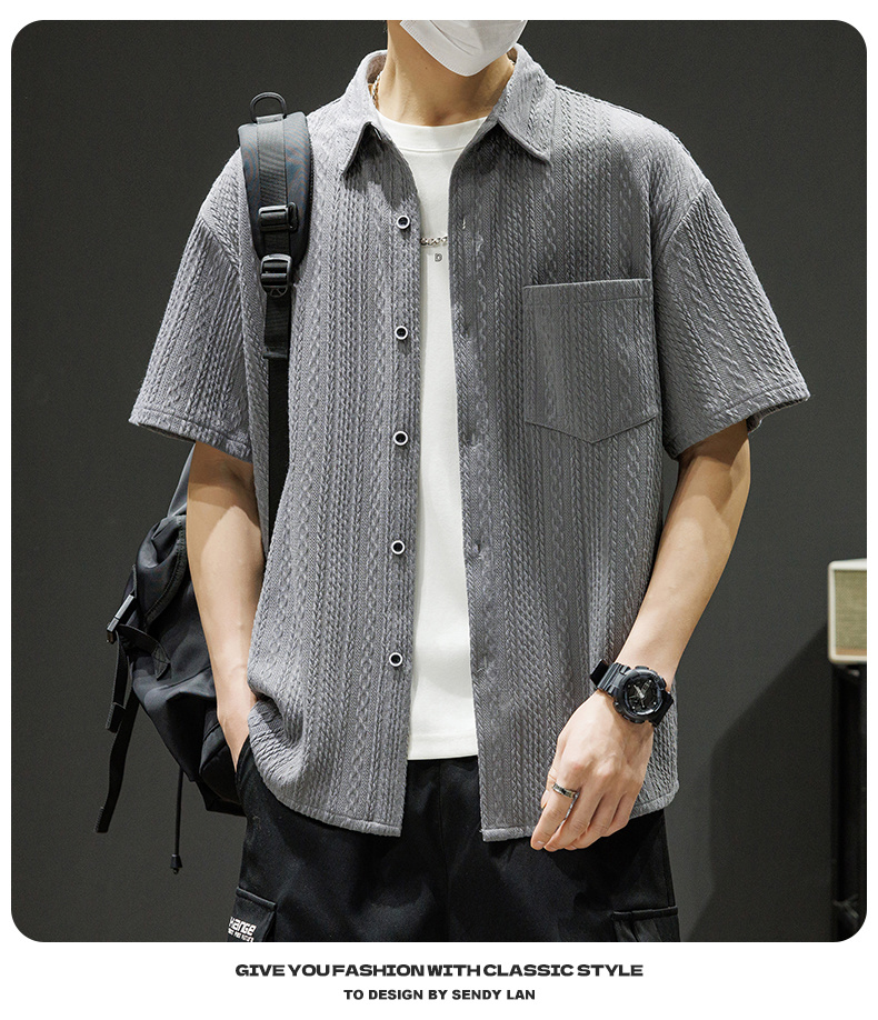 새로운 여름 남자 트렌드 루즈핏 조수 브랜드 반팔 티셔츠 맨위 5 점 소매 자카드 폴로 칼라 반팔 셔츠
