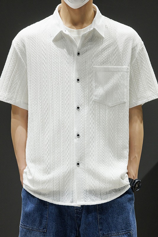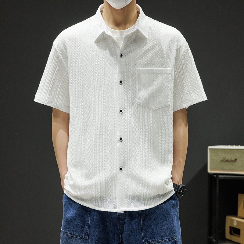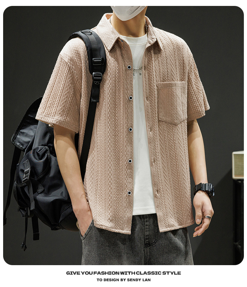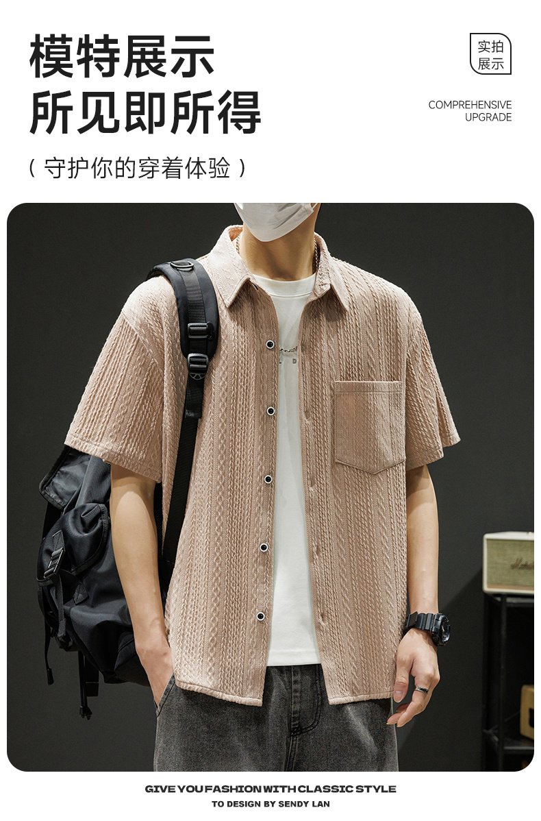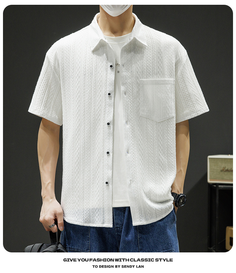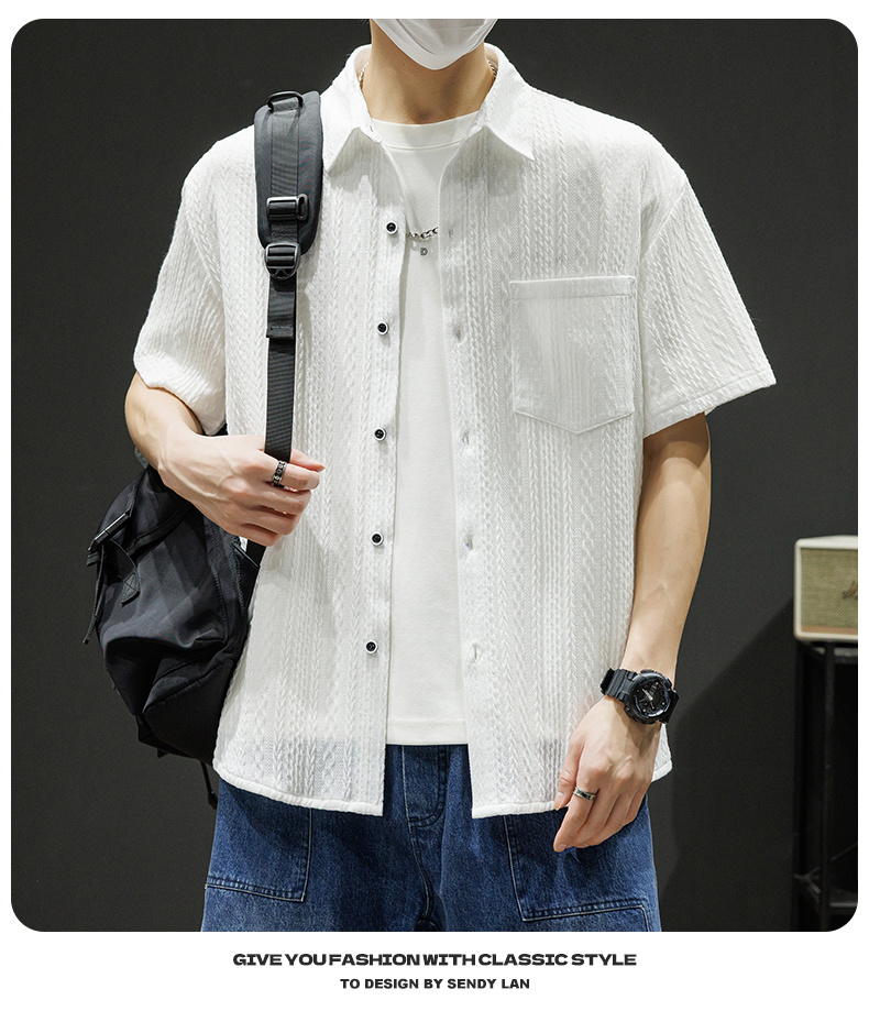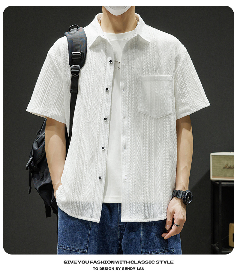 새로운 여름 남자 트렌드 루즈핏 조수 브랜드 반팔 티셔츠 맨위 5 점 소매 자카드 폴로 칼라 반팔 셔츠