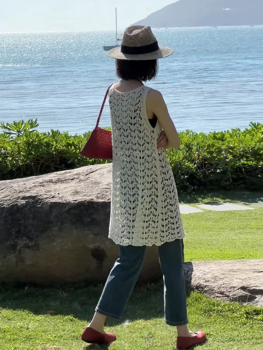 중간 길이 홀로우 아웃 니트 조끼 스커트 여성 2026 년 이른 봄 새로운 스택 착용 슬림해 보이는 다용도 방귀 커튼 민소매 맨위